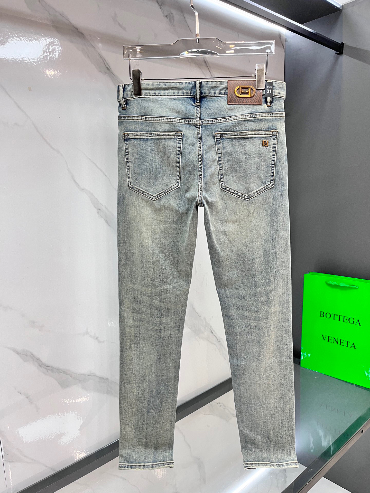 Home • Apparel • Jeans • Fendi 2025SS early spring lightweight distressed jeans. Stretchy, comfortable imported fabric. Metal trim. Sizes 29-38.