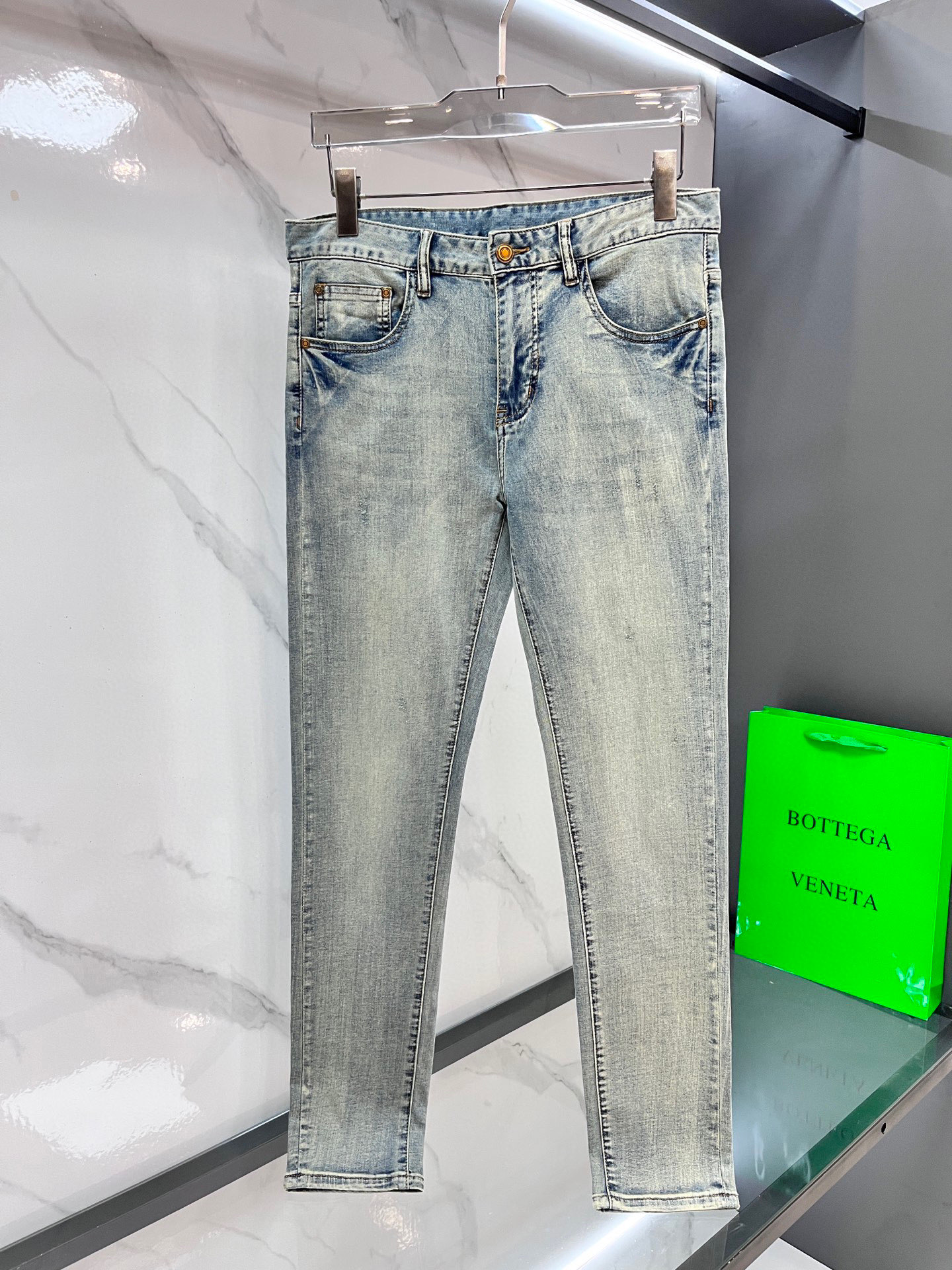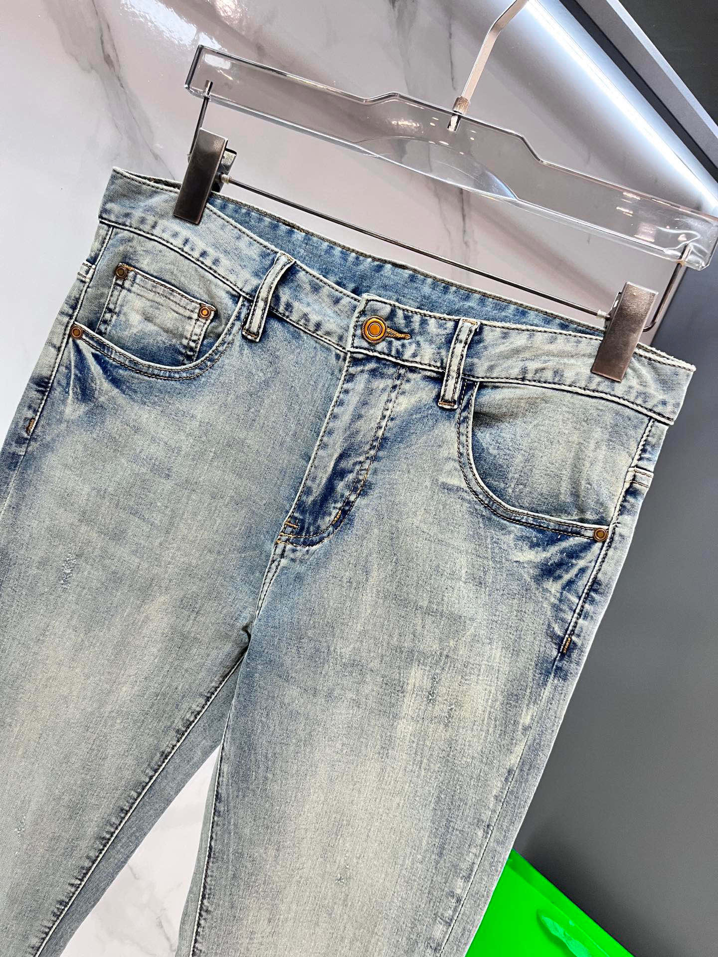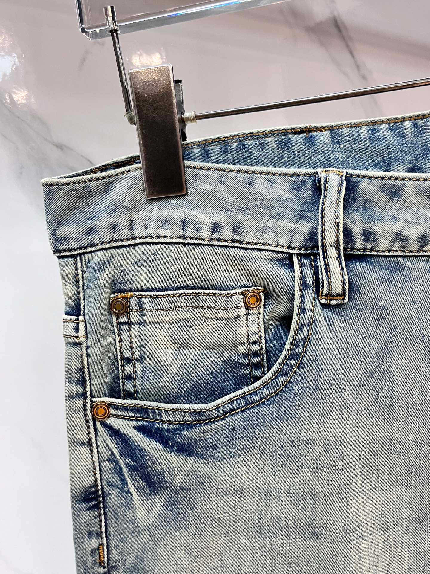 LV Thin Denim Jeans. 2025 latest style. 98% cotton, 2% spandex. Solid, slightly stretchy, comfortable. Simple design, hidden zipper, embossed pockets. Excellent fit.