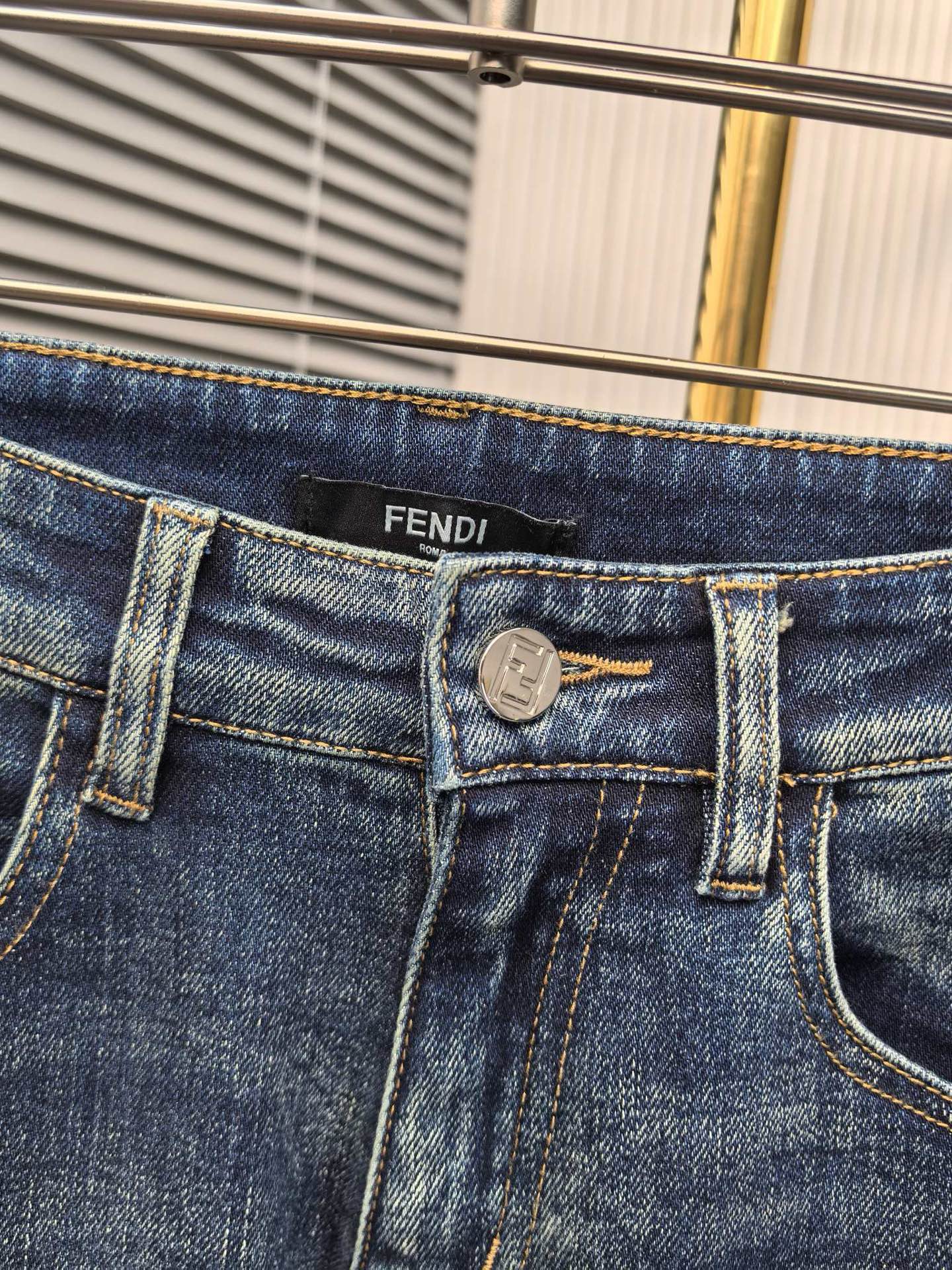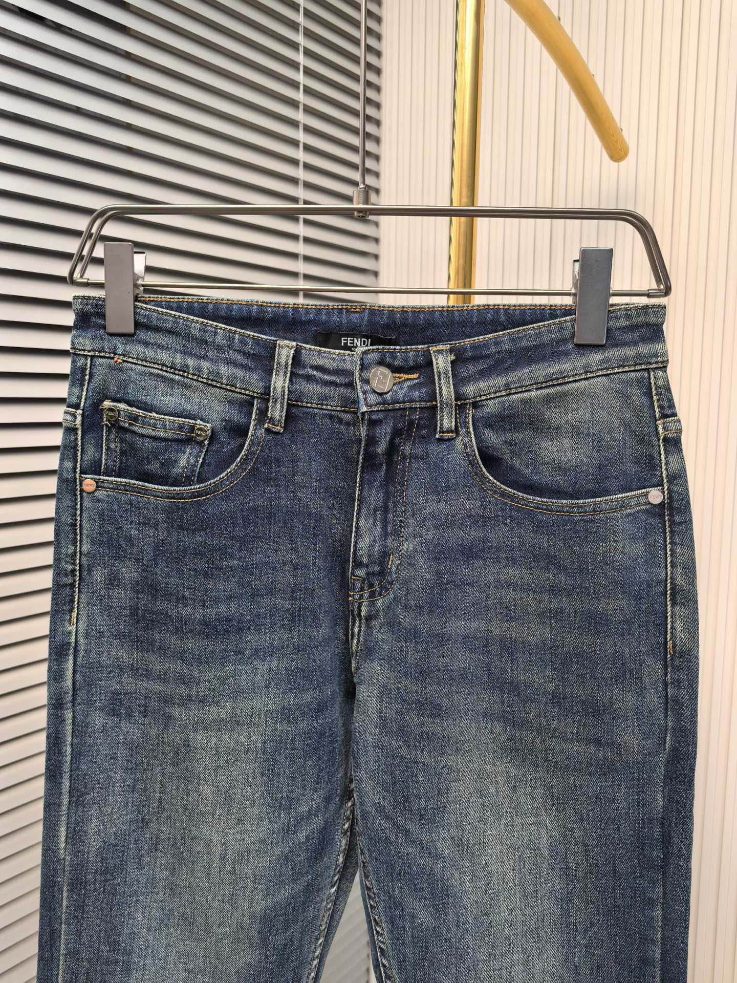 Fendi 2025 early autumn men's jeans. Heavy wash denim, custom fabric, soft & comfortable. Double washing process, top-notch feel & breathability. Custom hardware logo. Sizes 29-40.