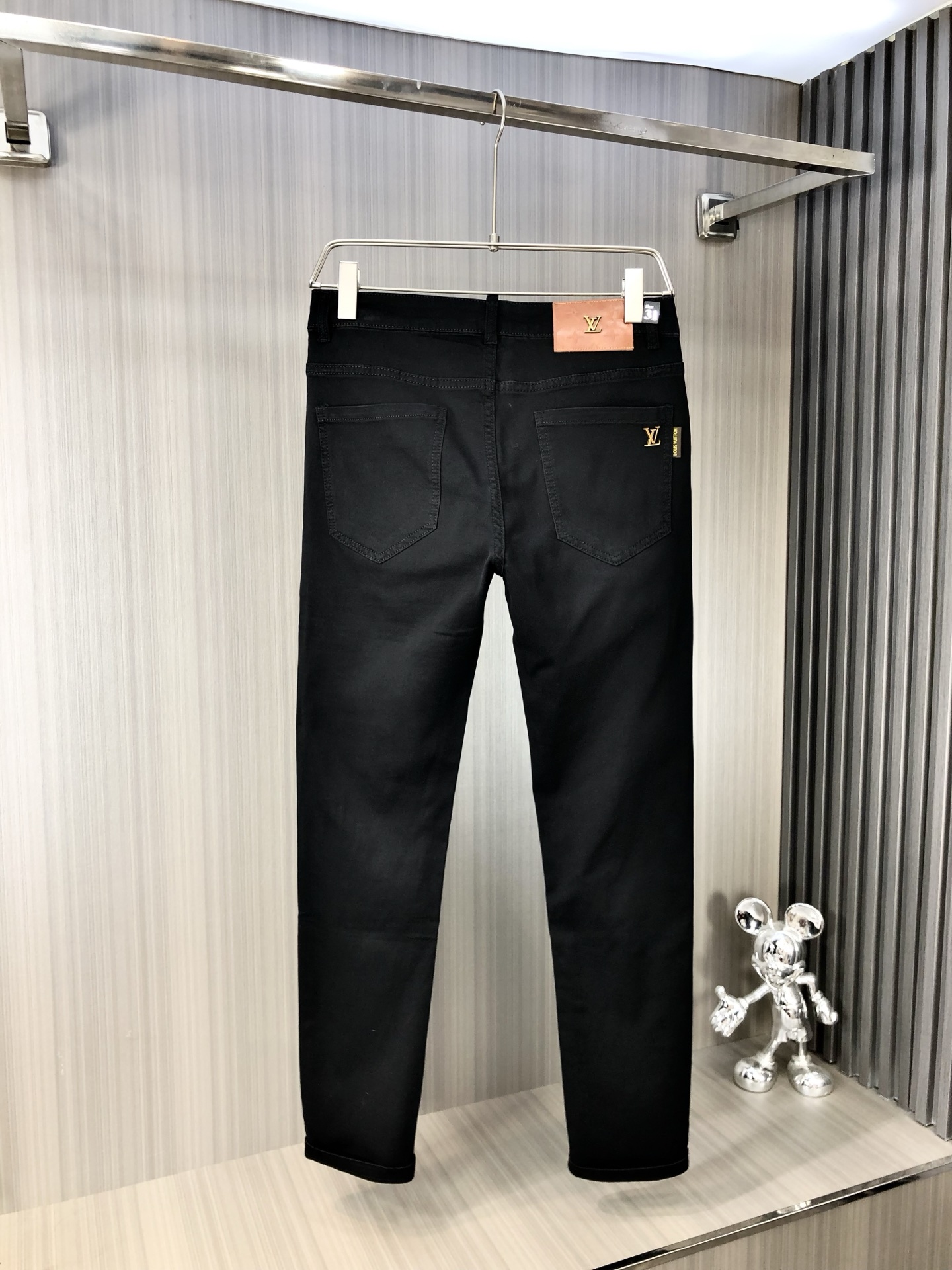LV's 2025 spring-summer men's jeans: heavy wash, custom soft denim, dual washing process, comfortable, breathable, custom logo hardware. Sizes 29-38.