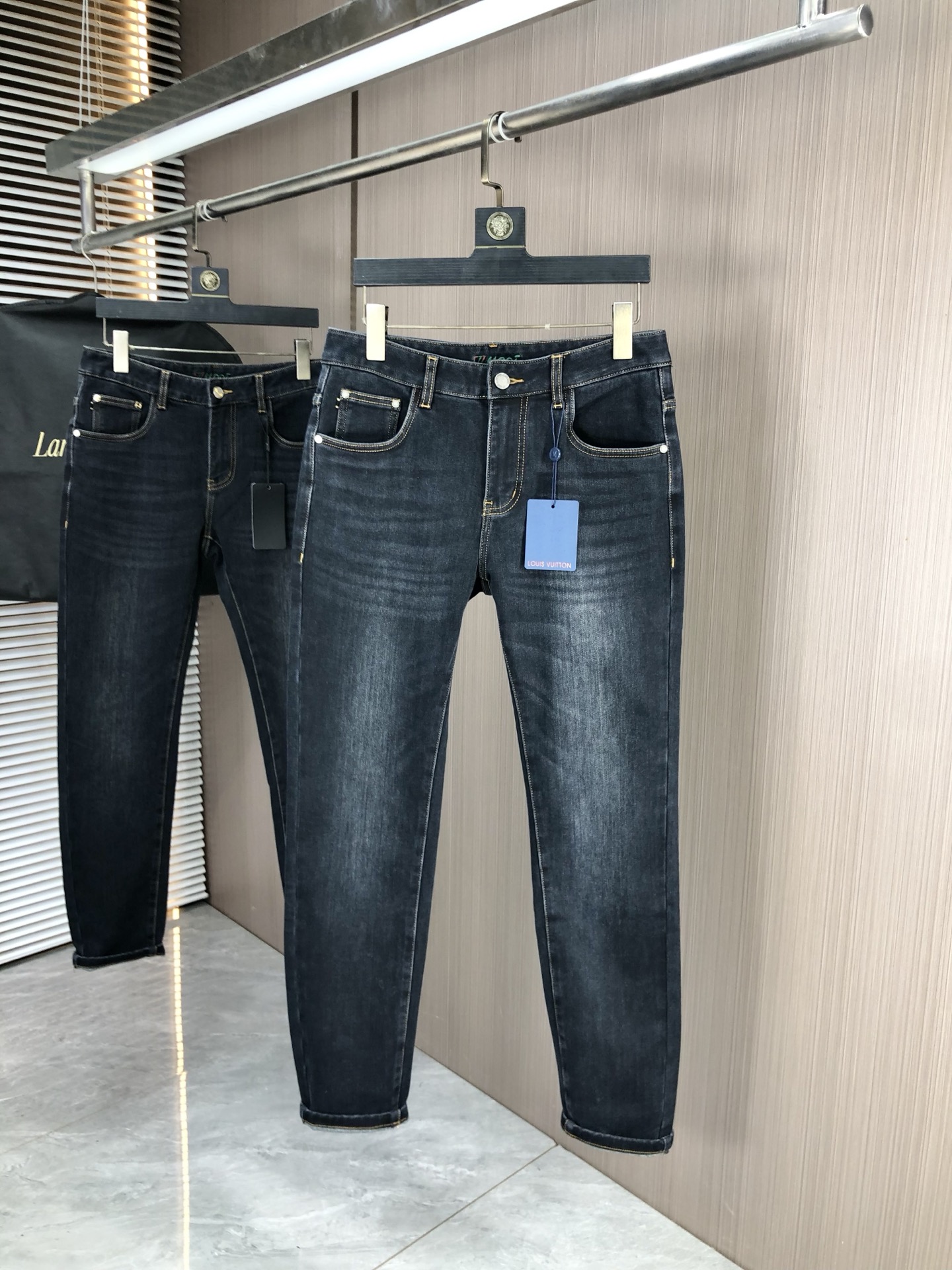 Louis Vuitton 2025 new men's jeans. Stretchy denim, exclusive release, elegant design with fine craftsmanship. Sizes 28-38, ships next day.