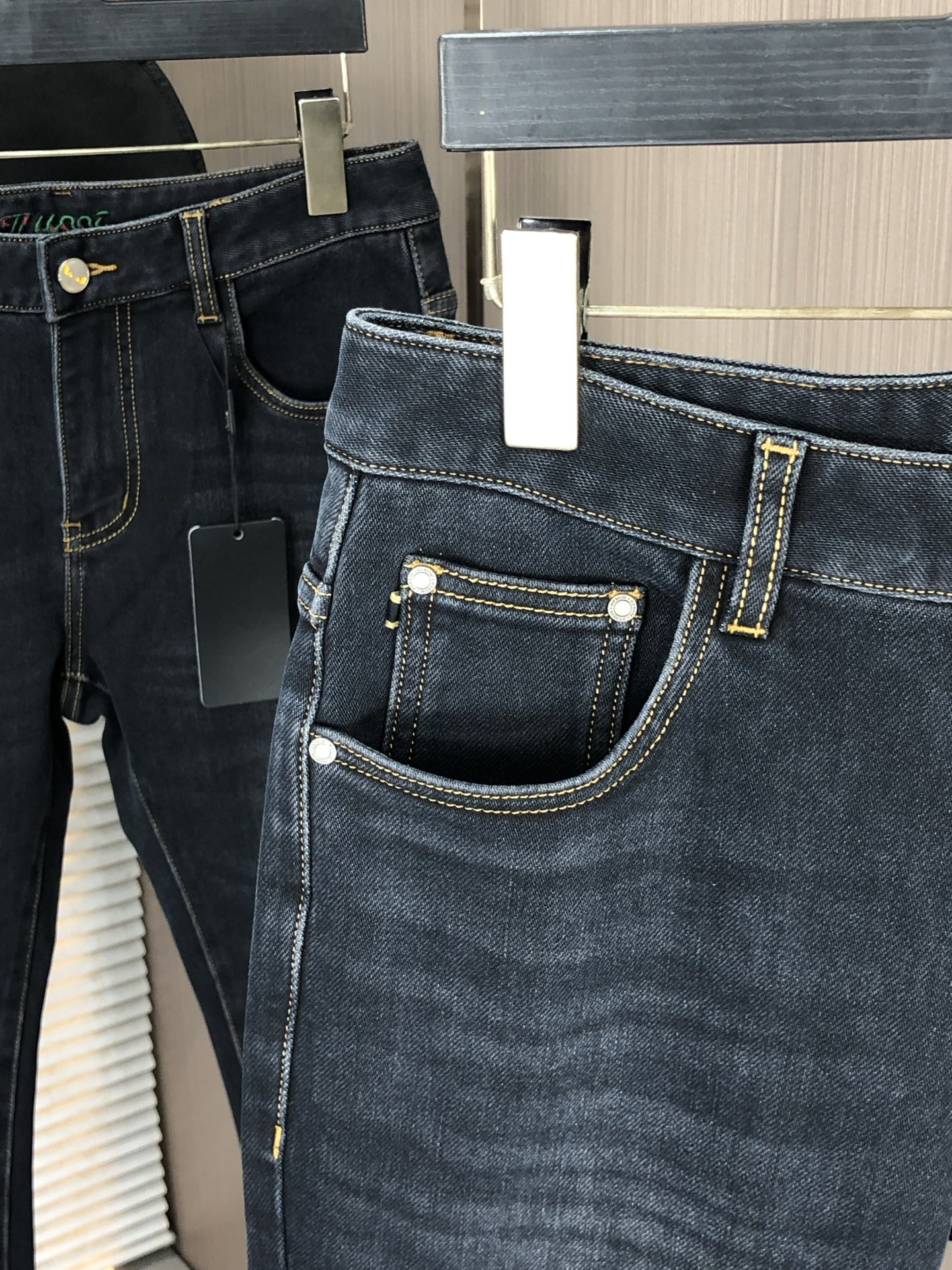 LV Thin Denim Jeans. 2025 latest style. 98% cotton, 2% spandex. Solid, slightly stretchy, comfortable. Simple design, hidden zipper, embossed pockets. Excellent fit.