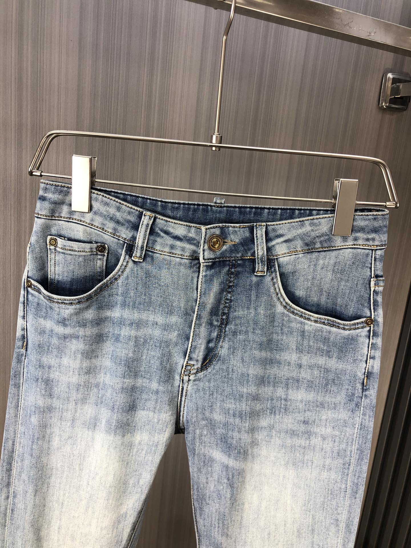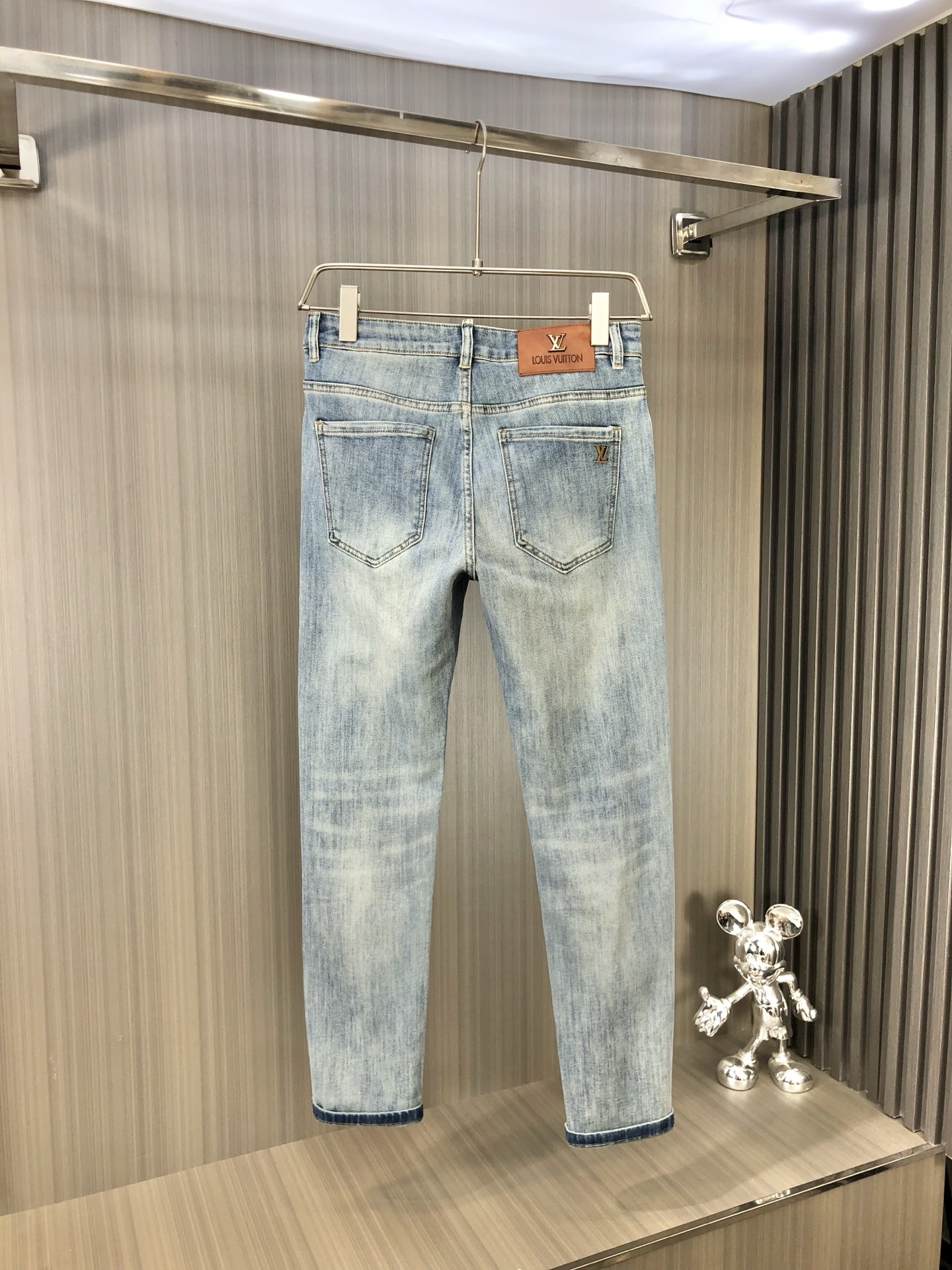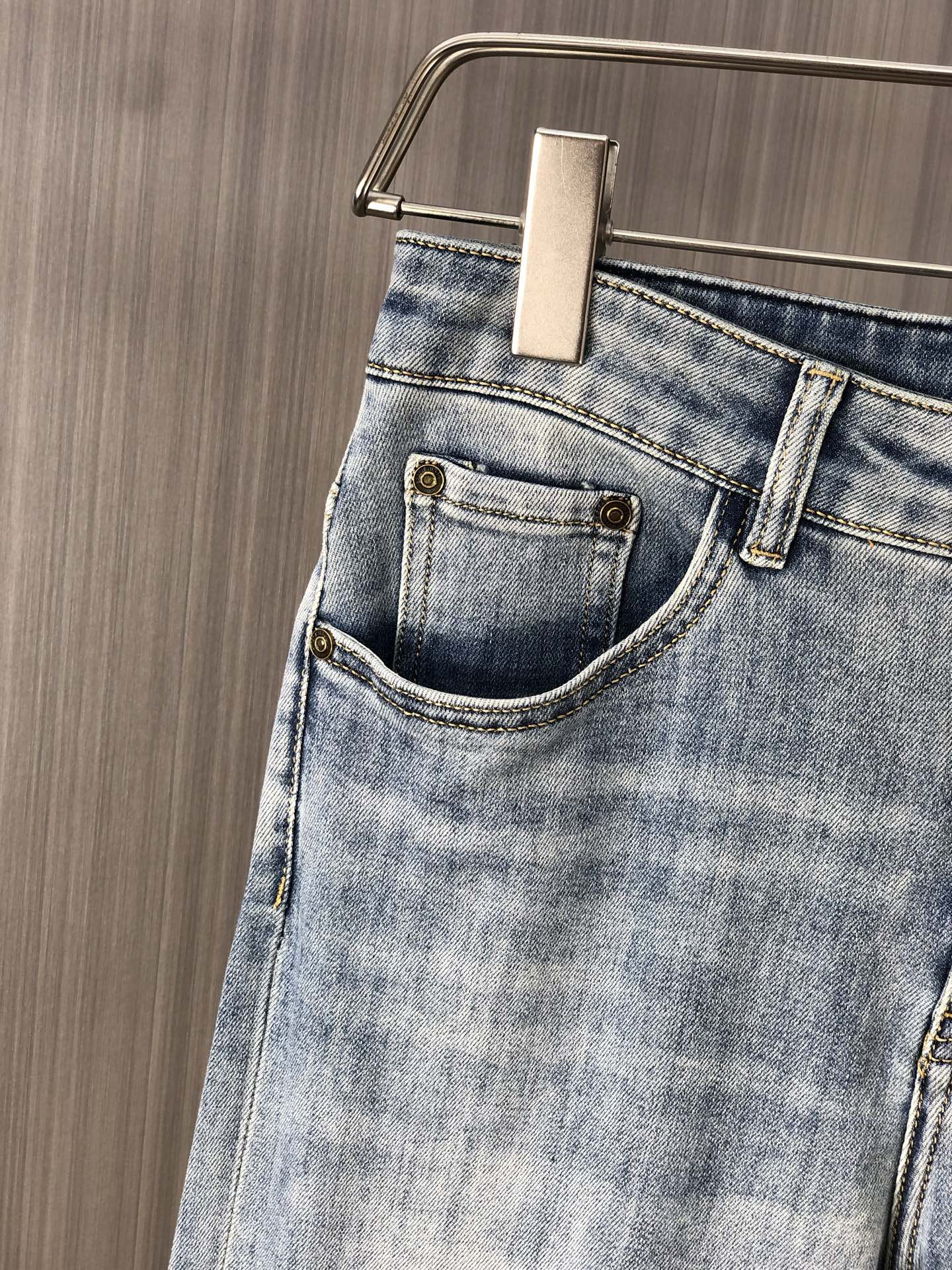 LV 2025 Spring/Summer men's jeans. Heavy wash denim, custom soft fabric, top comfort & breathability. Custom hardware logos. Sizes 29-38.