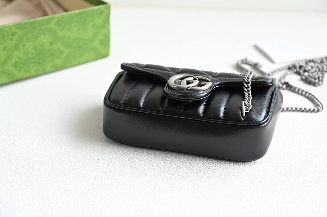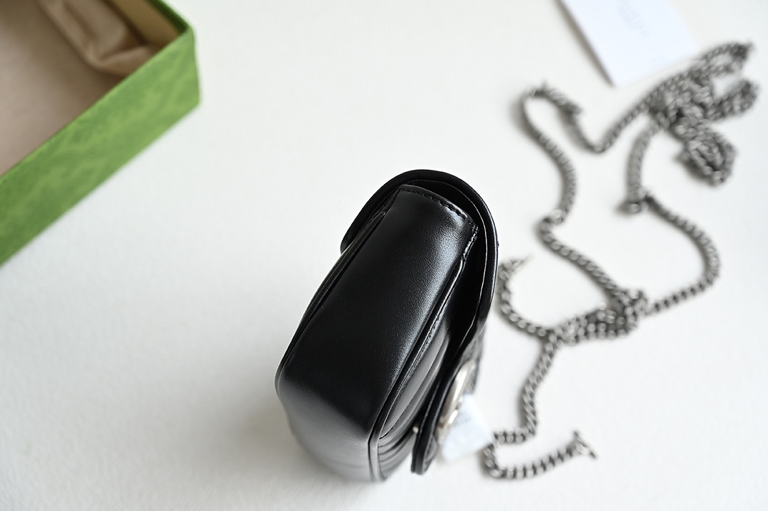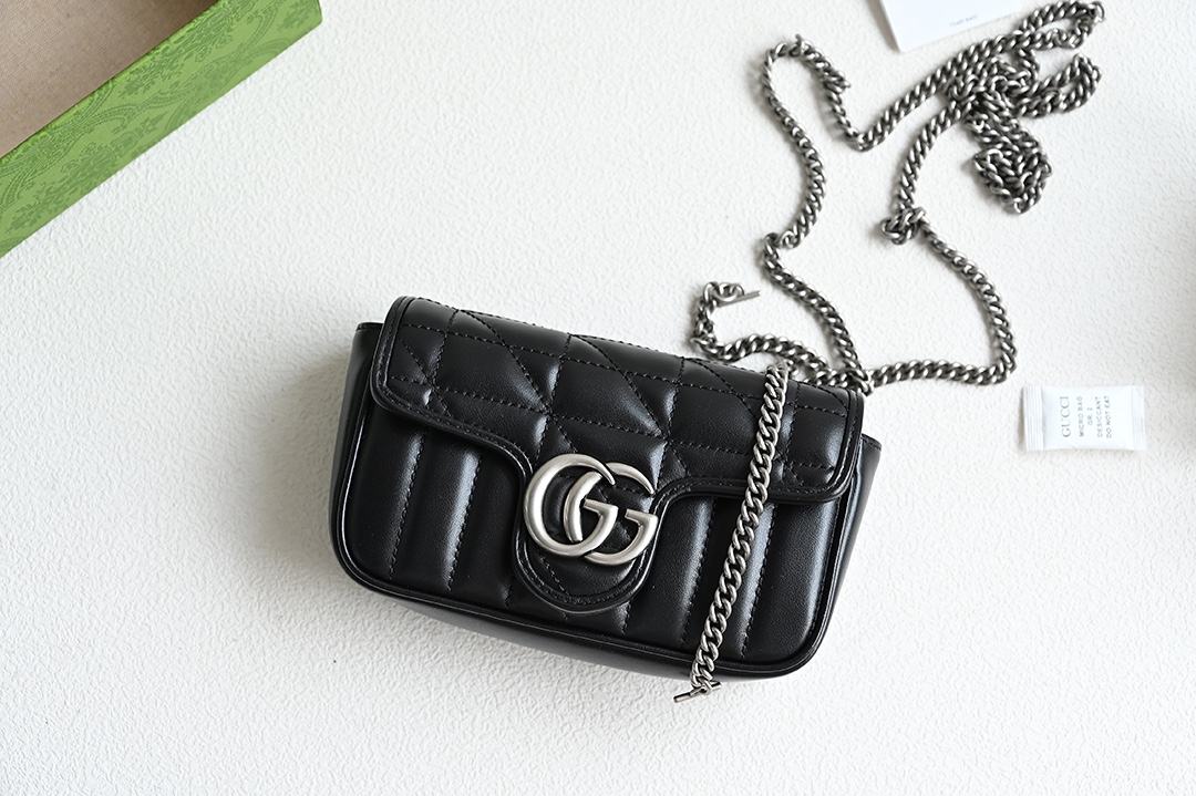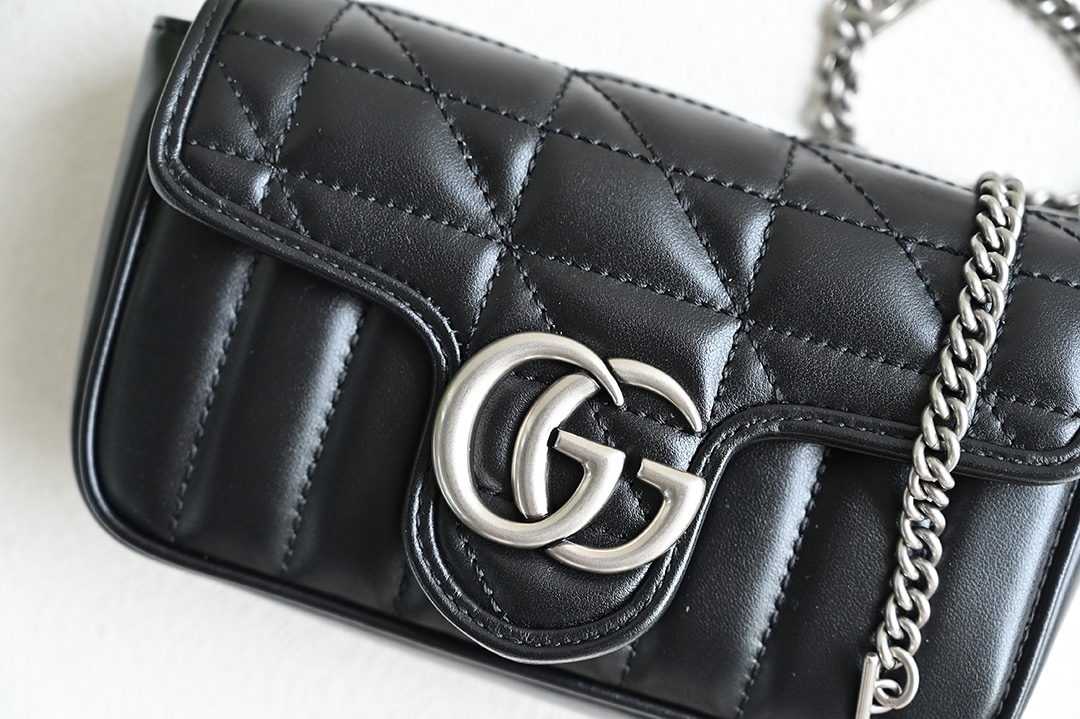 The GG Marmont geometric series has introduced new variations. This time, it's not just about adding new colors, but also incorporating fashionable geometric elements. The full quilting design further highlights the texture of the leather. The effect achieved with the original factory leather makes the entire bag look like it's glowing. Paired with retro-style silver hardware, the technological feel is even stronger. The mini size has been a popular golden size in recent years—small, cute, and spacious enough!