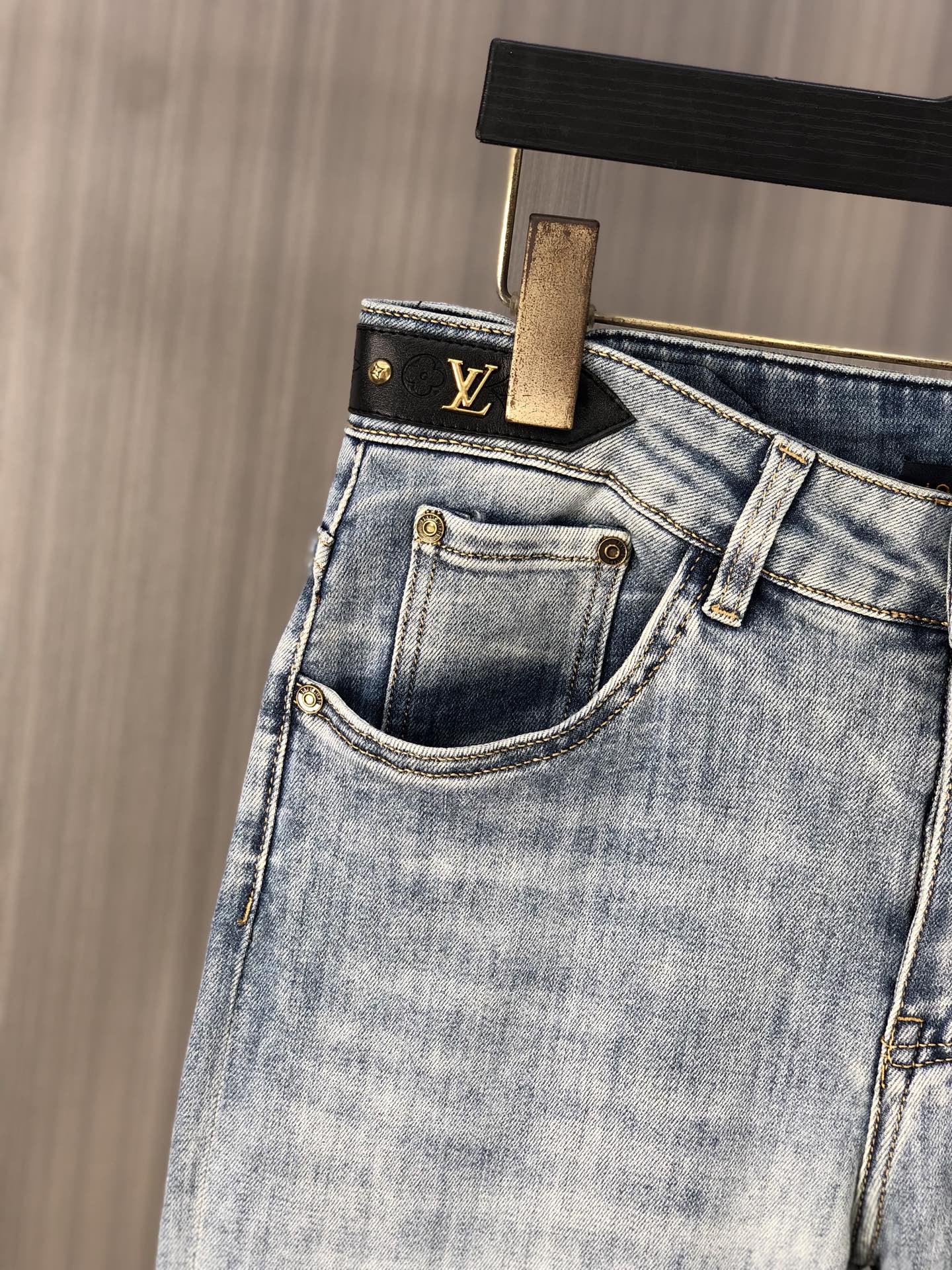 Louis Vuitton 2025 new men's jeans. Stretchy denim, exclusive release, elegant design with fine craftsmanship. Sizes 28-38, ships next day.