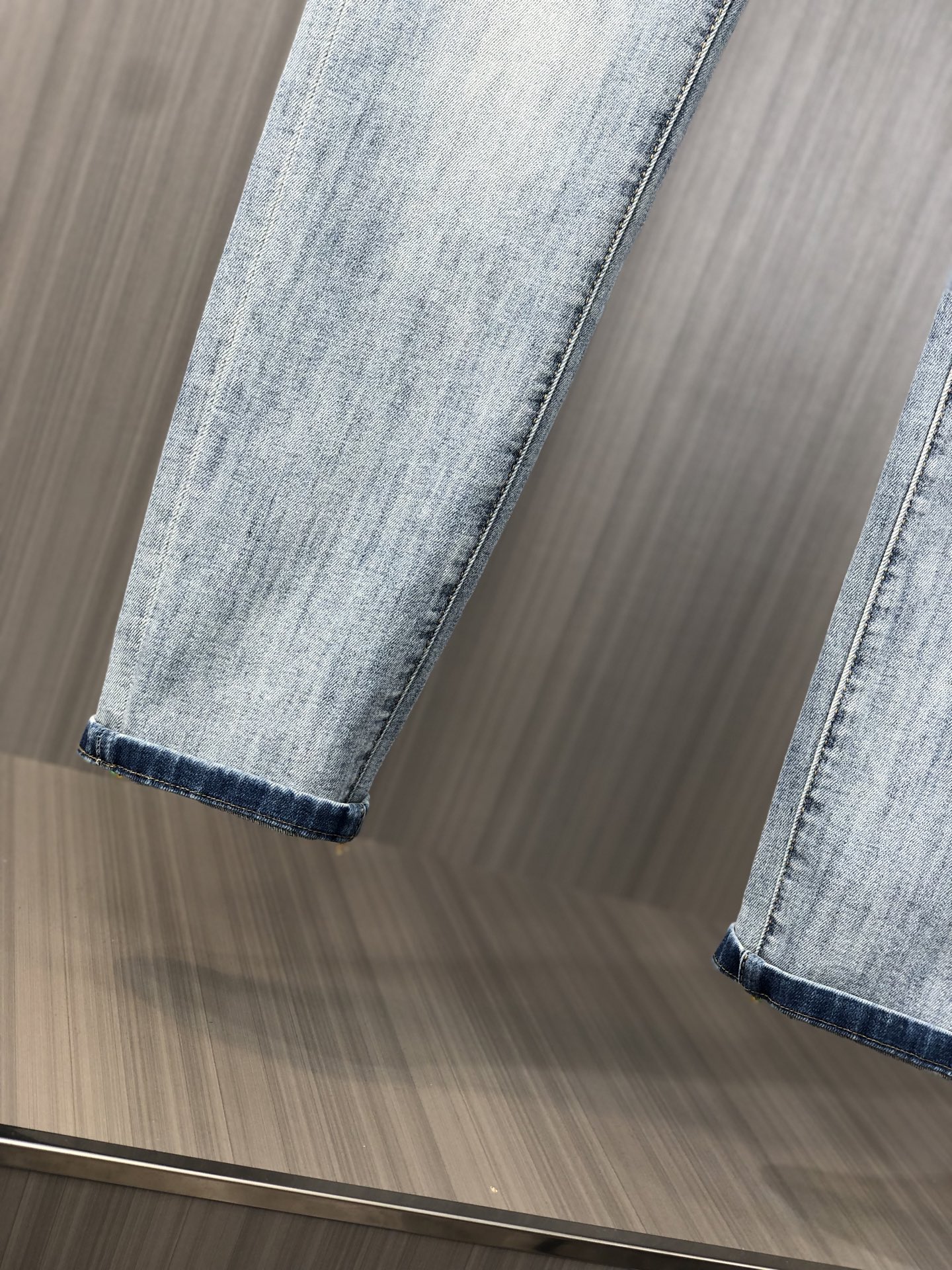 LV Thin Denim Jeans. 2025 latest style. 98% cotton, 2% spandex. Solid, slightly stretchy, comfortable. Simple design, hidden zipper, embossed pockets. Excellent fit.