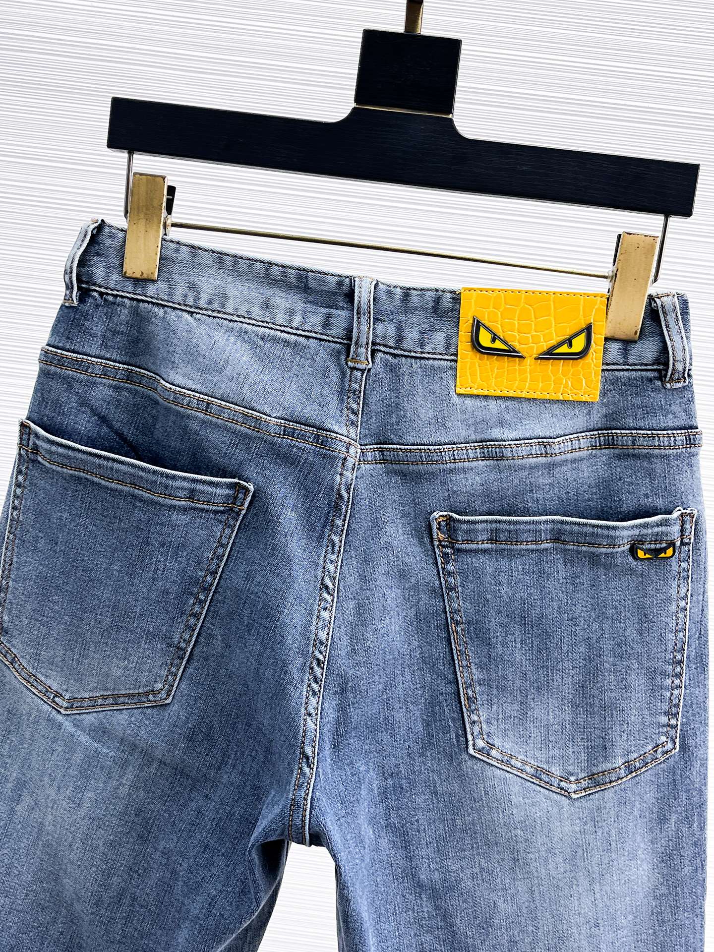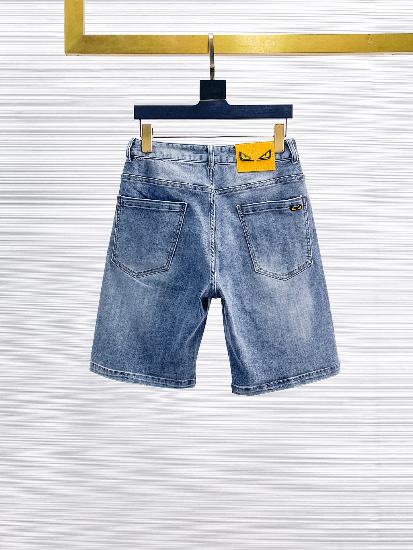 Fendi 2025 Summer Men's Denim Shorts: Premium custom fabric, breathable, stretchy, high comfort. Impeccable details, top accessories, original logo design. Great fit. Sizes 29-36.