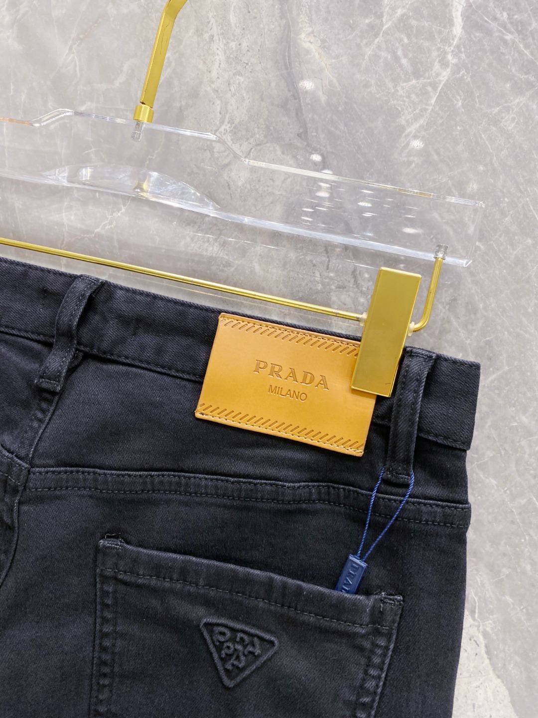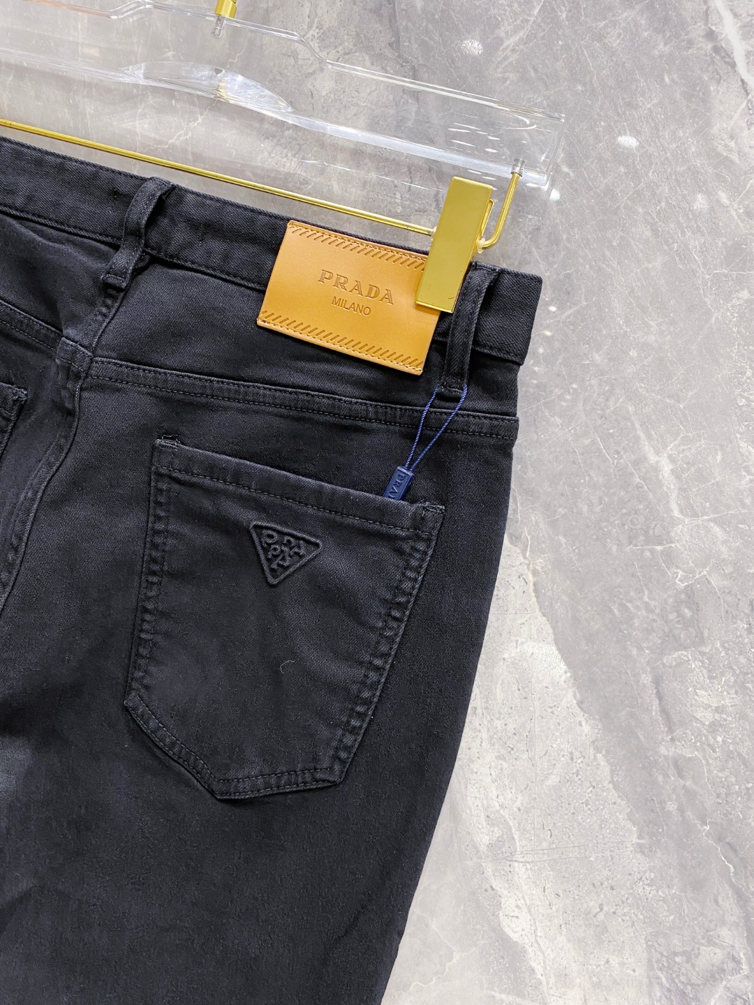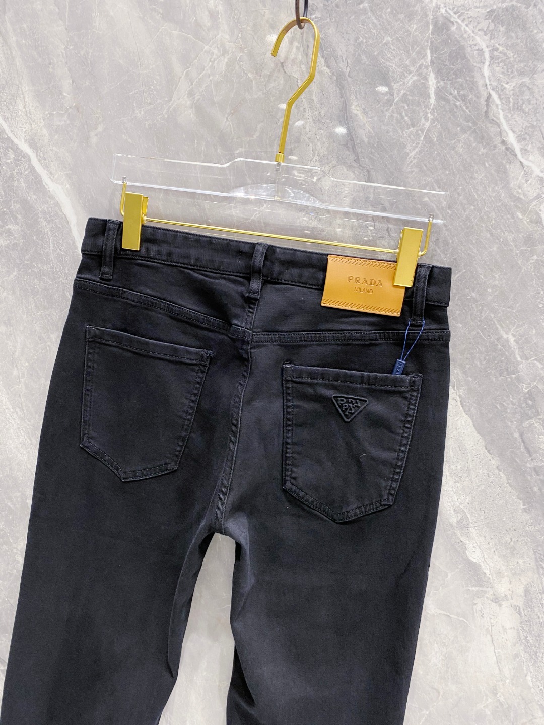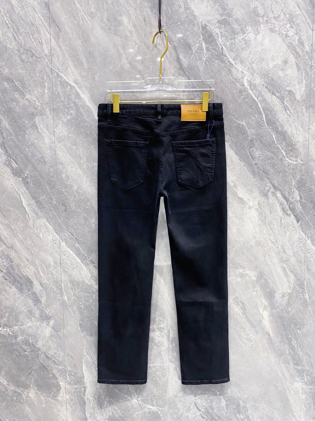 Prada 2025 Fall/Winter men's jeans. Heavy wash denim, custom fabric, soft & comfortable. Double washing process, top-notch feel & breathability. Custom logo hardware. Stretchy, comfortable, low-key design. Sizes 29-38.