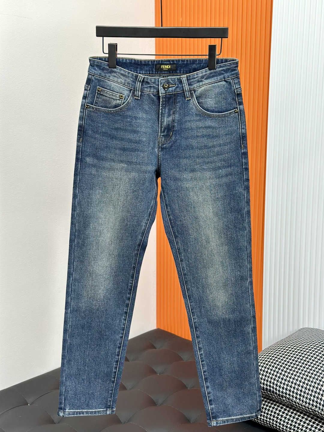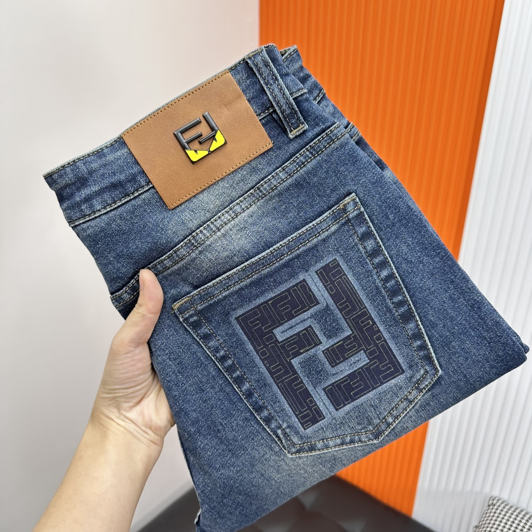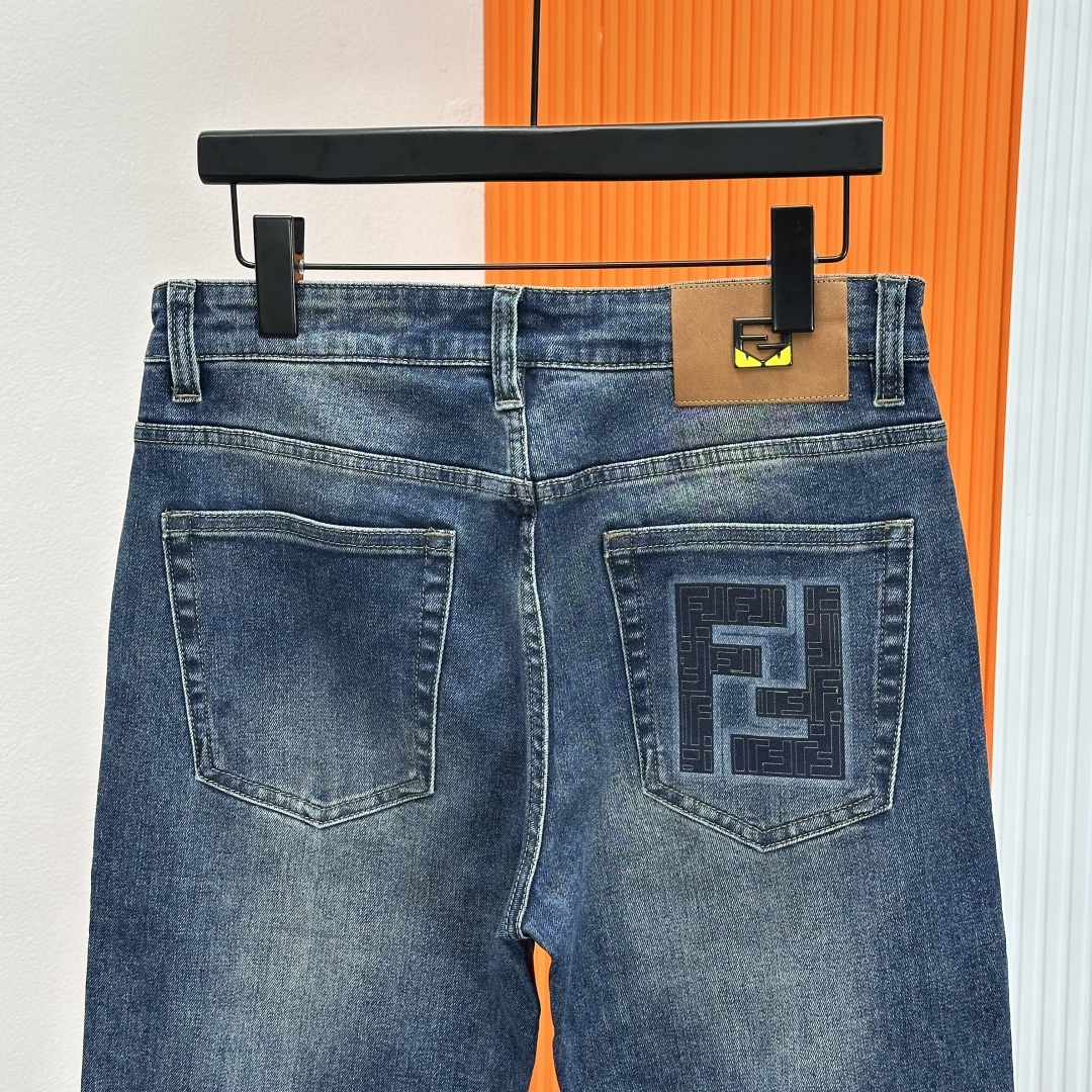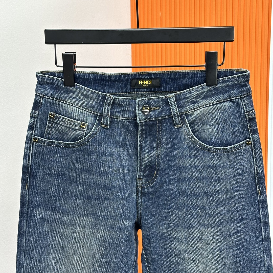 Fendi 2025SS slim-fit jeans. Custom wash, top hardware, stretch fabric. Sizes 29-40 (no 37).