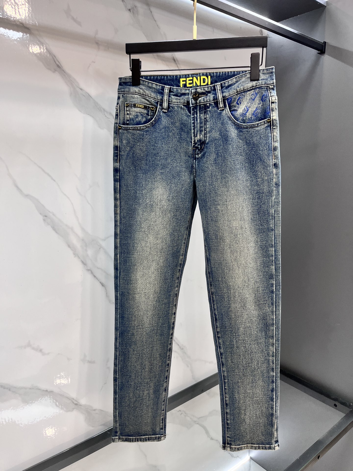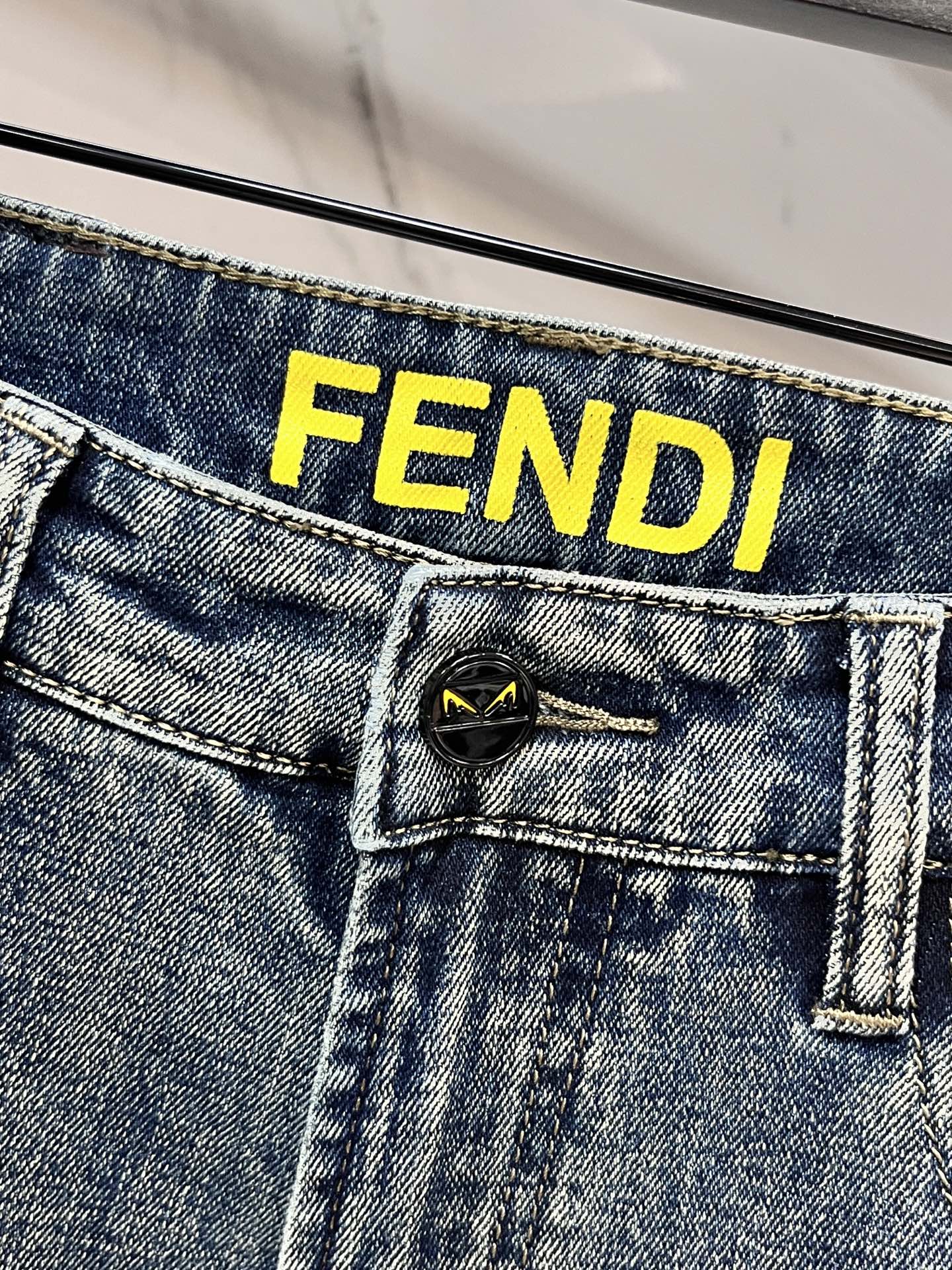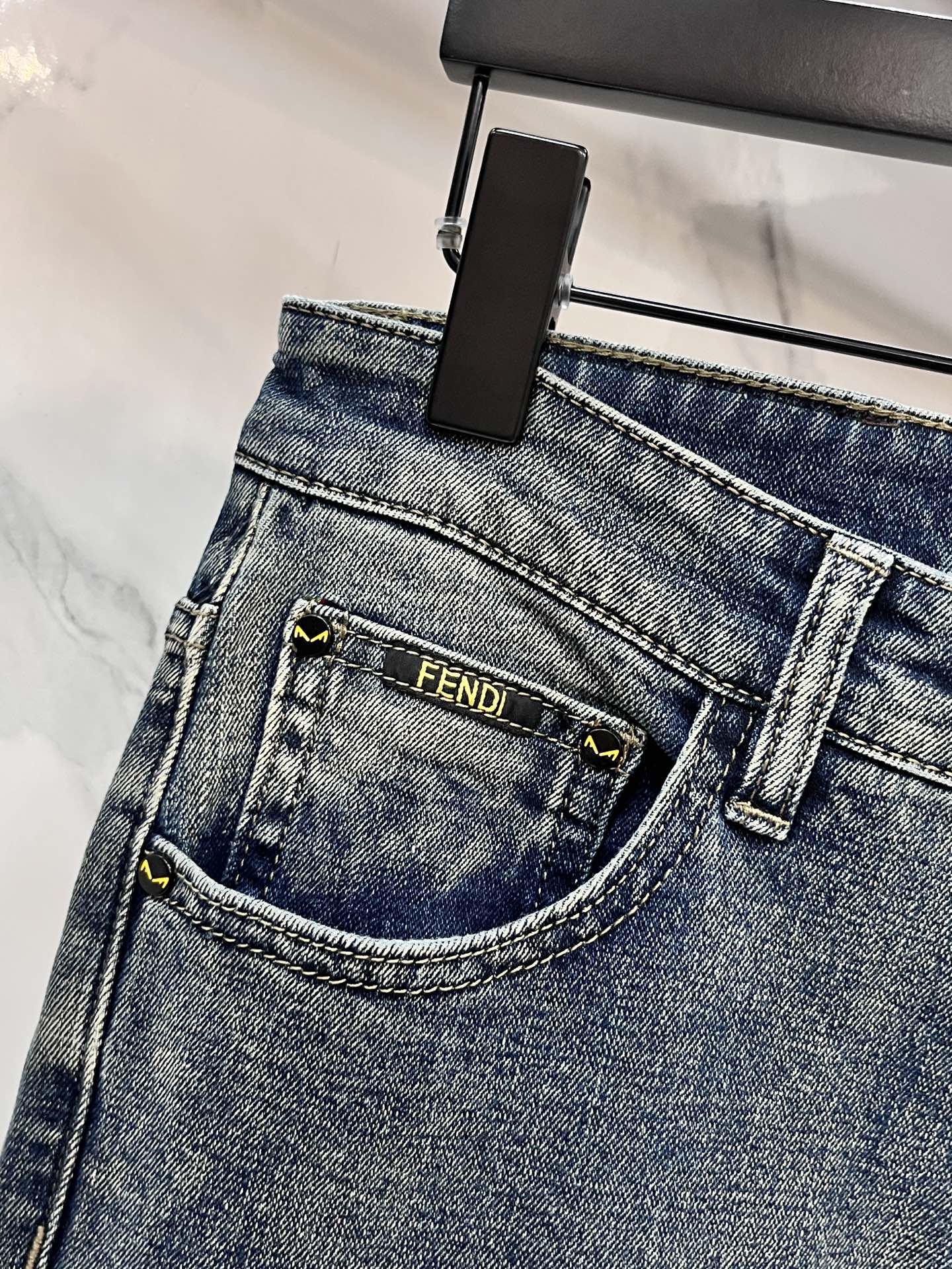 Fendi 2025SS lightweight distressed jeans. Imported stretch denim, comfortable and breathable. Metal hardware, flattering fit. Sizes 29-40.