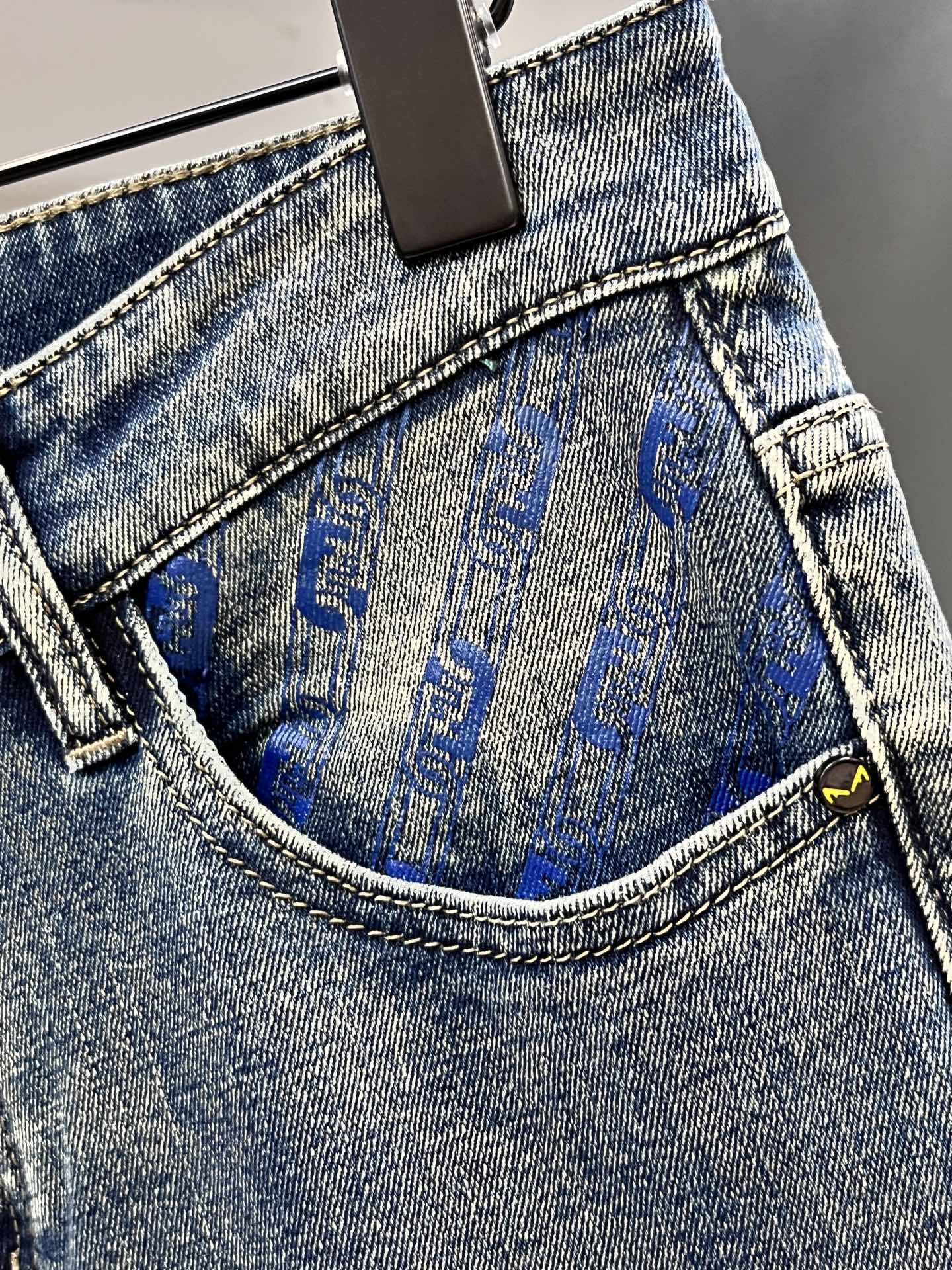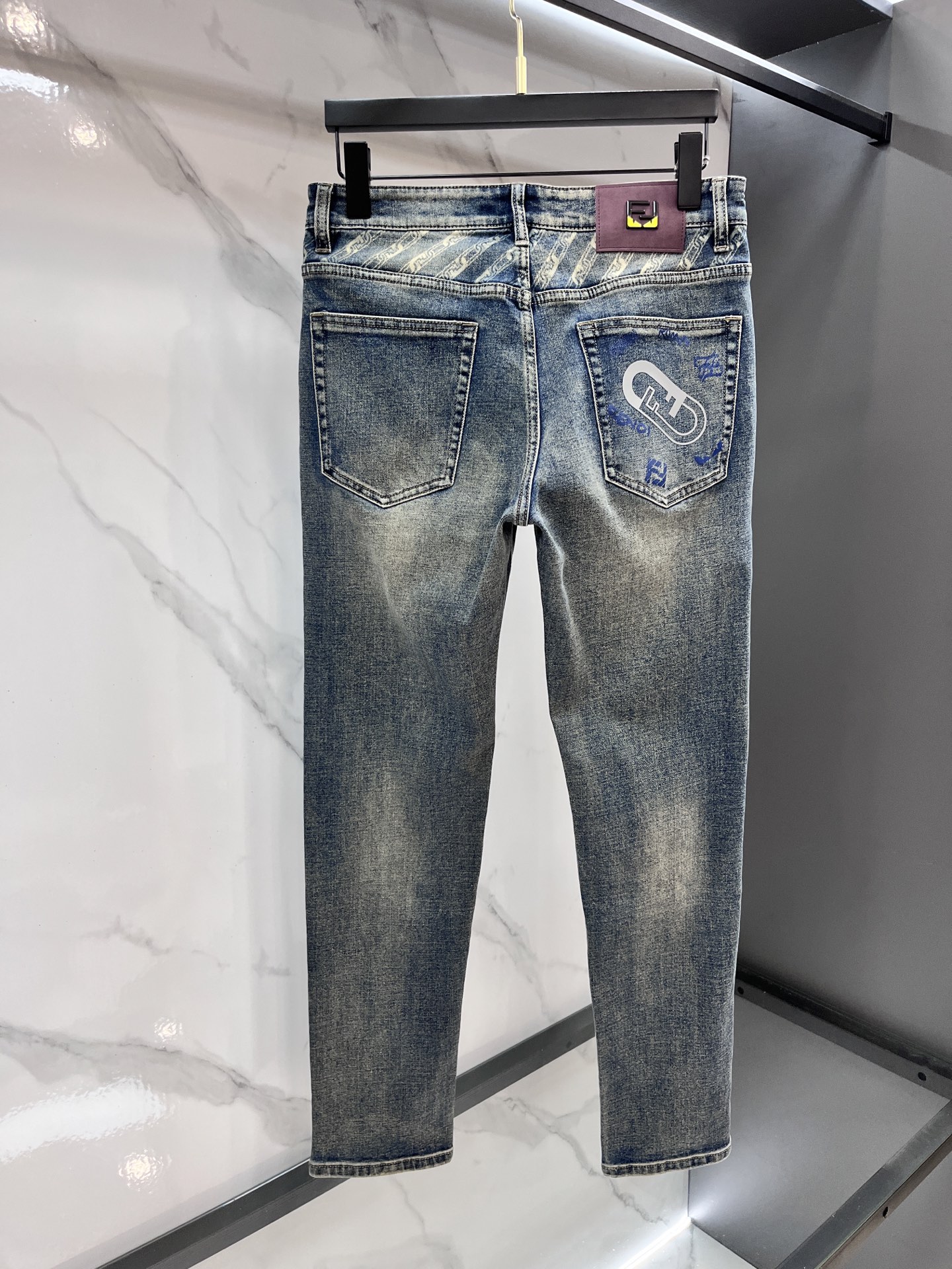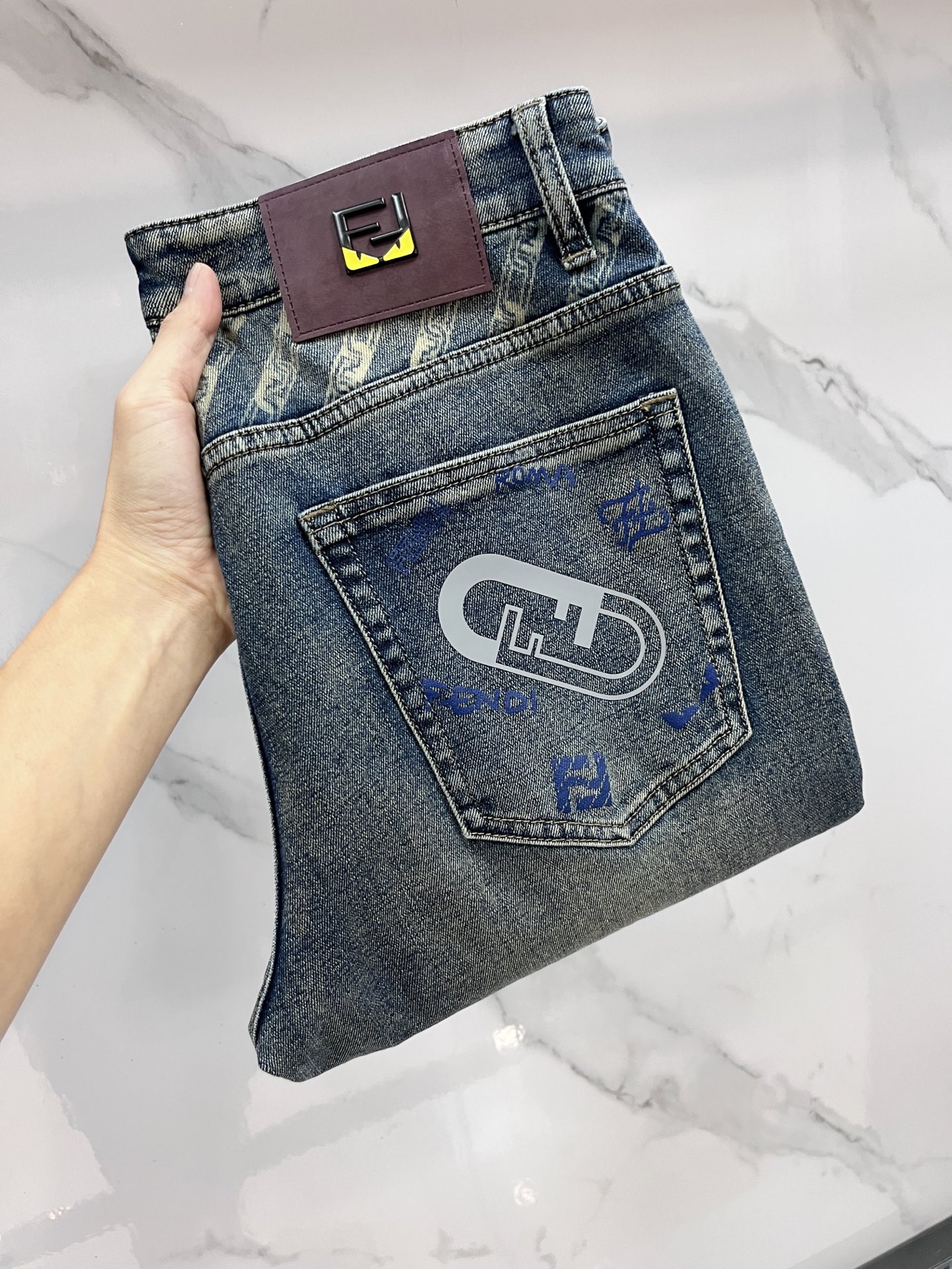 Fendi 2025SS lightweight distressed jeans. Imported stretch denim, comfortable and breathable. Metal hardware, flattering fit. Sizes 29-40.