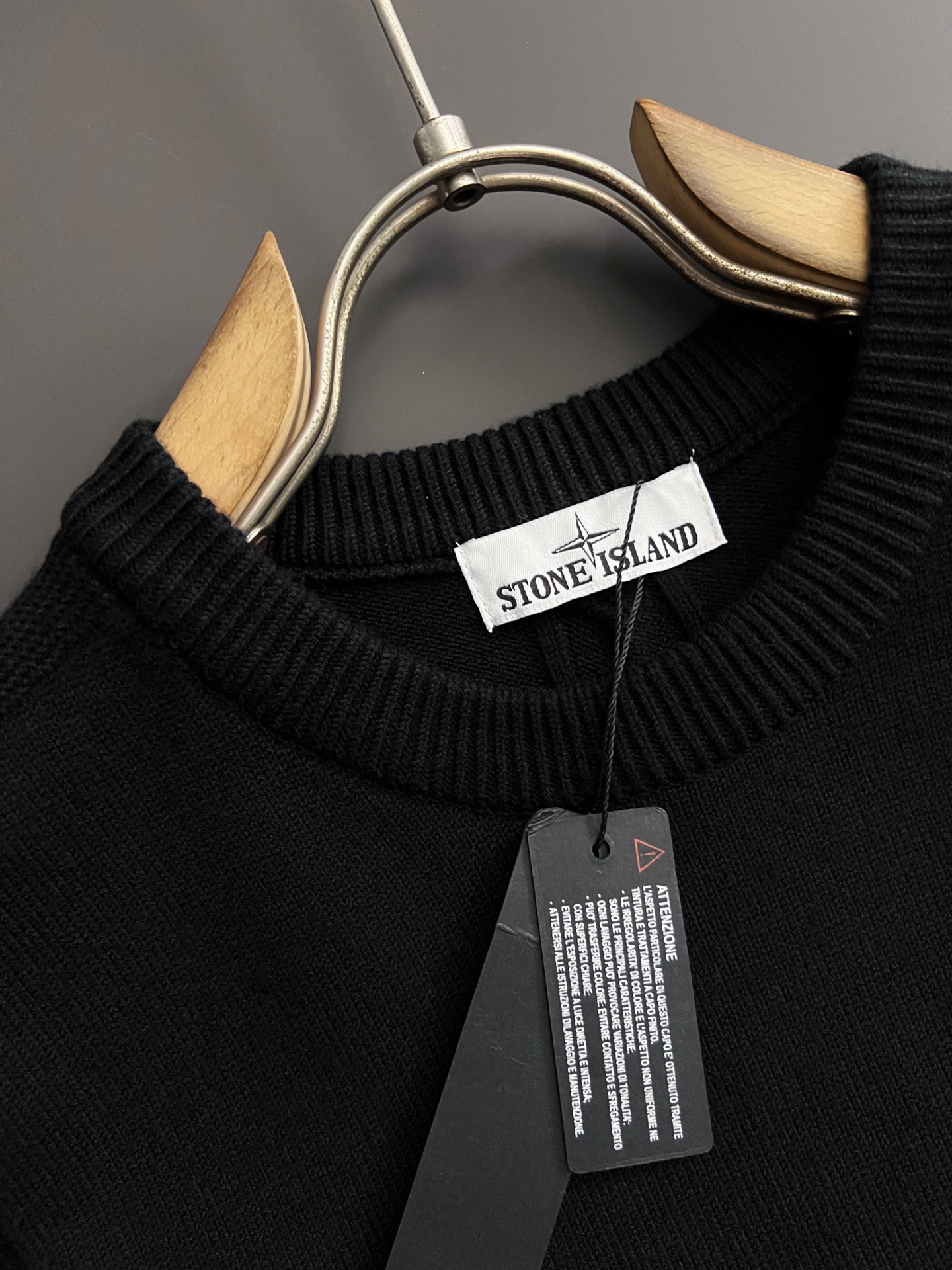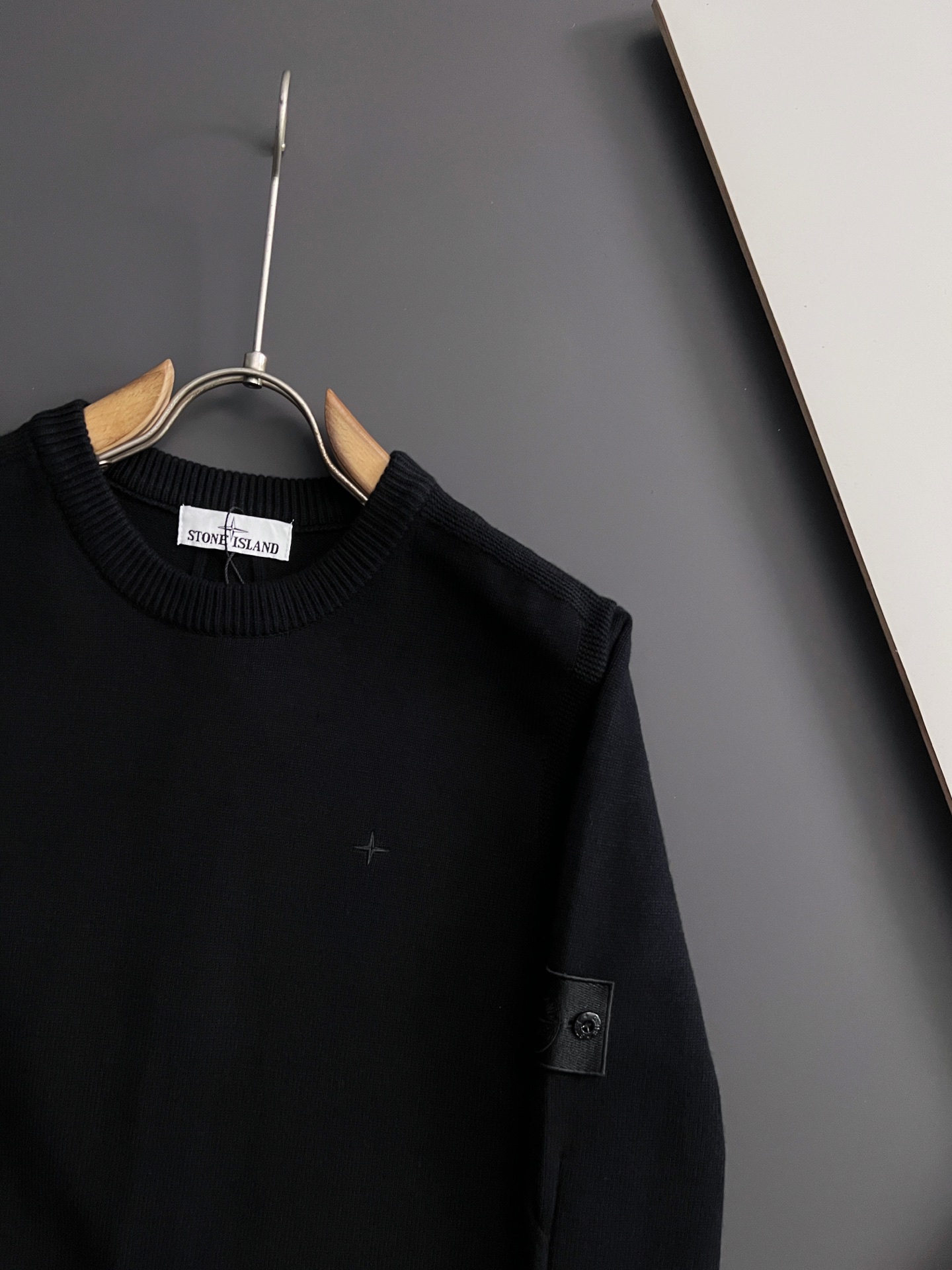 Stone Island 25SS black waffle knit sweater, round neck, top quality, comfortable fit. Sizes M-XXXL.
