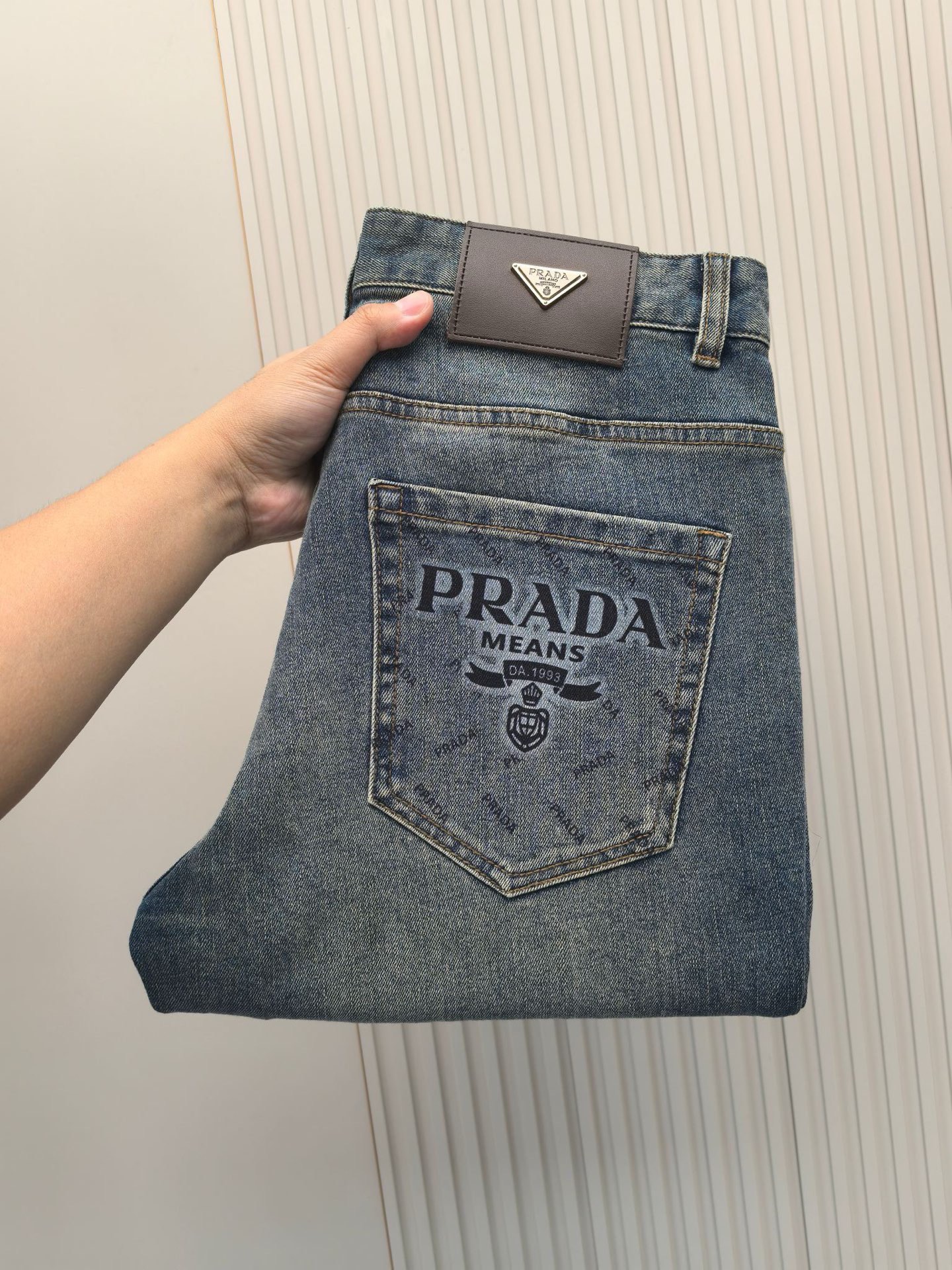 Prada 2025 early fall men's jeans. Heavy wash denim, custom soft fabric, premium comfort. Top-tier craftsmanship, custom hardware logos, excellent elasticity. Simple design. Sizes 29-40.