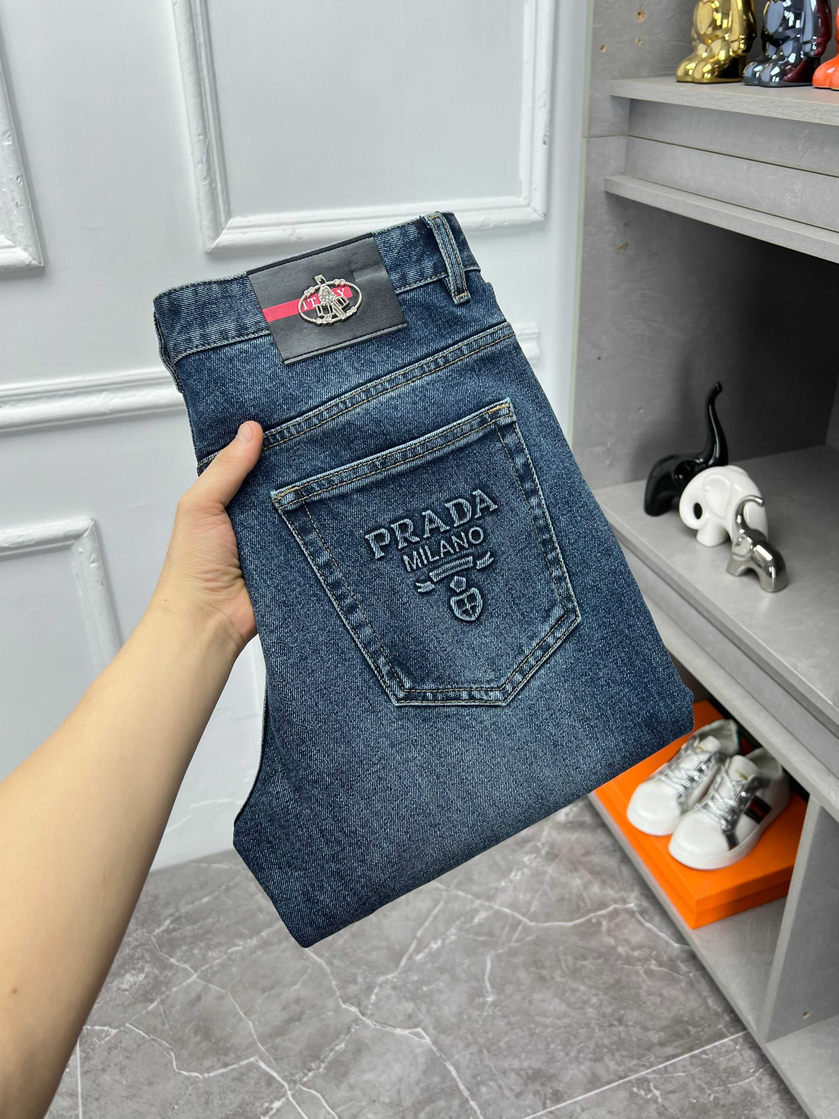 Prada wide-leg pants new 2065 autumn winter style. Premium jeans, European imported fabric, comfortable and stylish. Sizes 29-38.