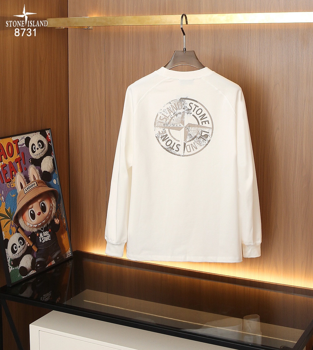Stone Island new reflective print long tee. 300g cotton. White. Sizes: M L XL XXL 3XL.