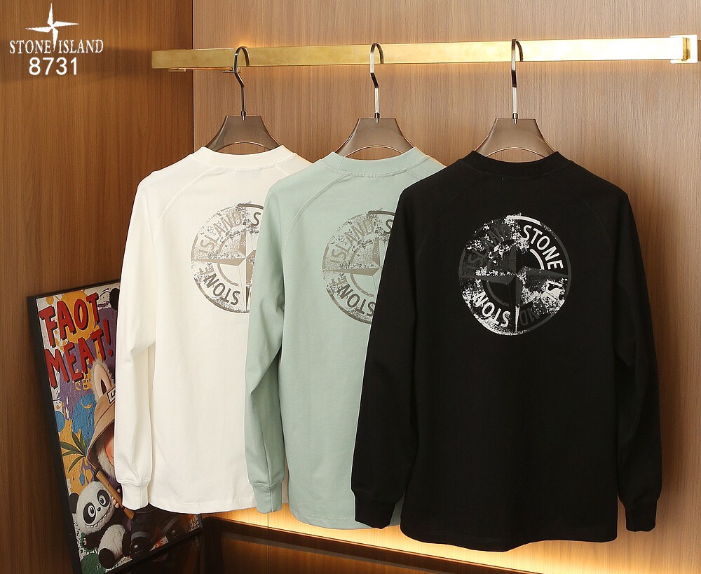 Stone Island new reflective print long tee. 300g cotton. White. Sizes: M L XL XXL 3XL.