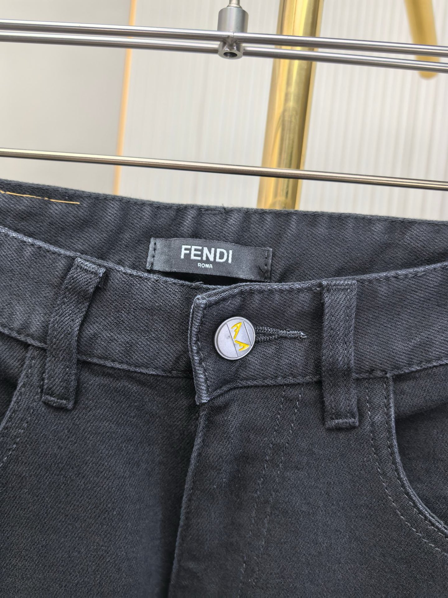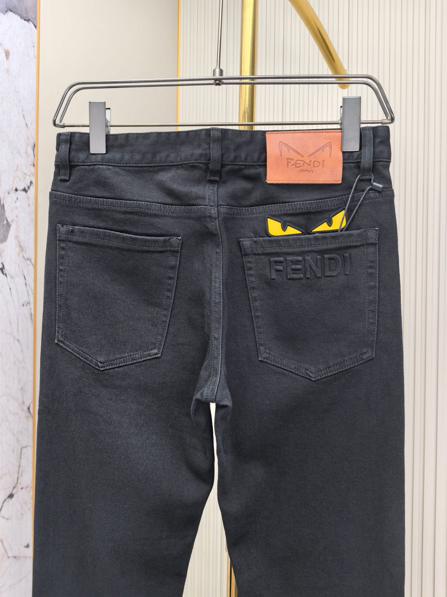 Fendi 2025 early fall men's jeans. Heavy wash denim, custom fabric, soft & comfortable. Double washing process, top-notch feel & breathability. Custom metal logos, premium materials. Stretchy, comfortable, low-key design. Sizes 29-40.