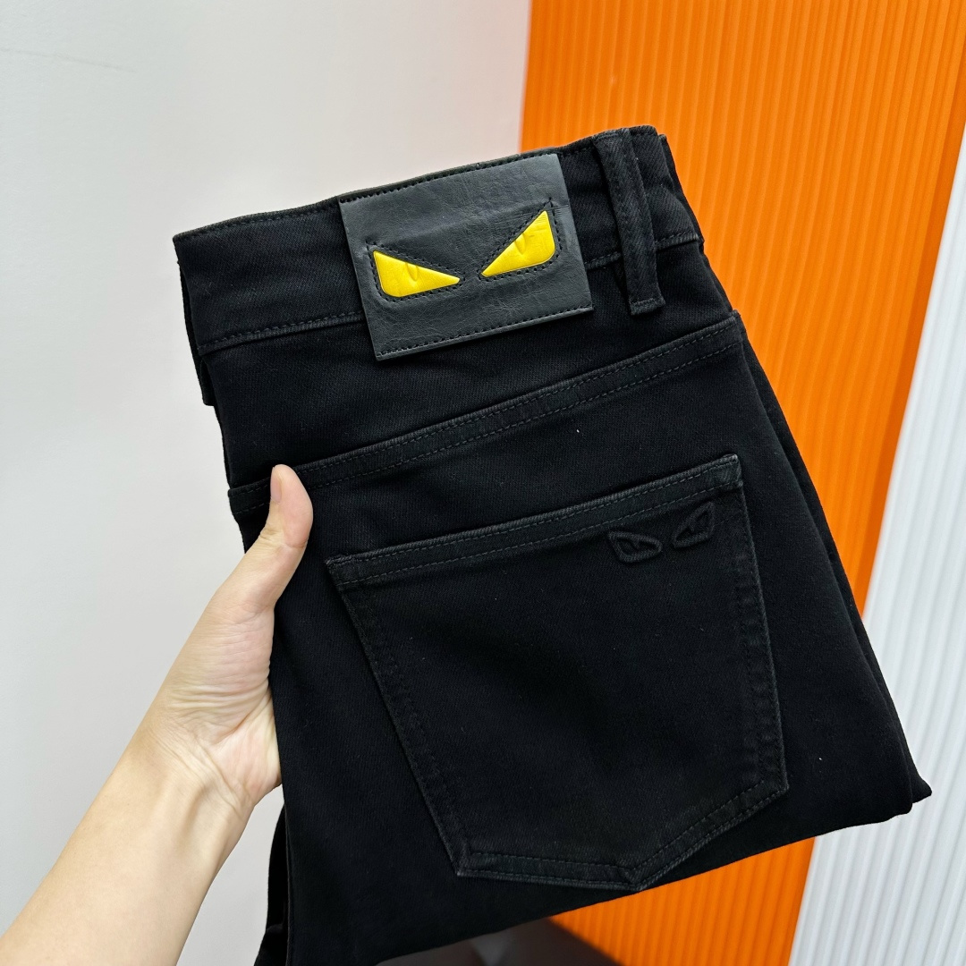 Fendi high-end custom 2025 autumn-winter jeans. Imported color-fast fabric, original quality, intricate craftsmanship. Sizes 30-38 (35 available, 37 not available).