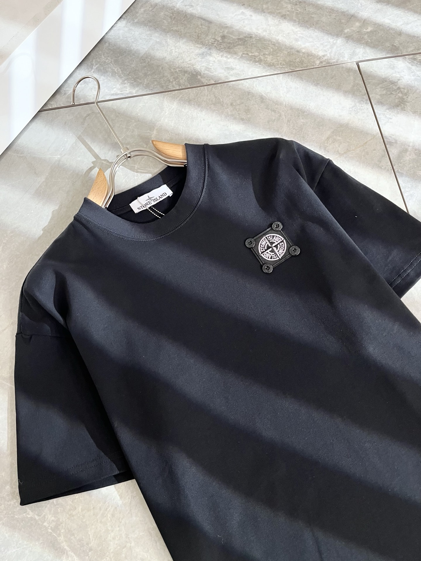 Stone Island 2025 SS unisex short-sleeve T-shirt. Exclusive design with logo badge, 260g cotton. High-quality, comfortable fit. Sizes: M-3XL.