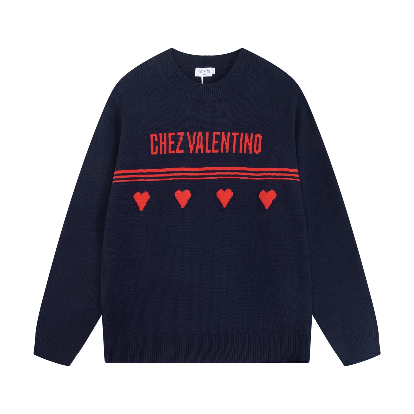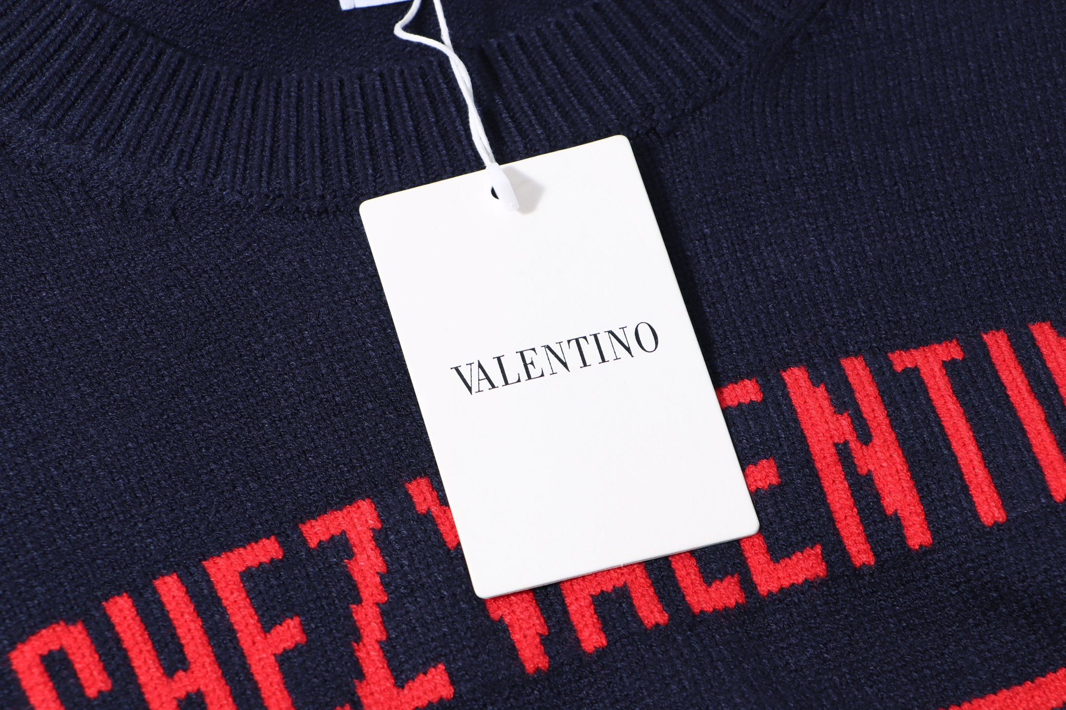 VALENTINO Valentino VT logo letter jacquard round neck sweater Color: Royal Blue Sizes: S M L XL XXL