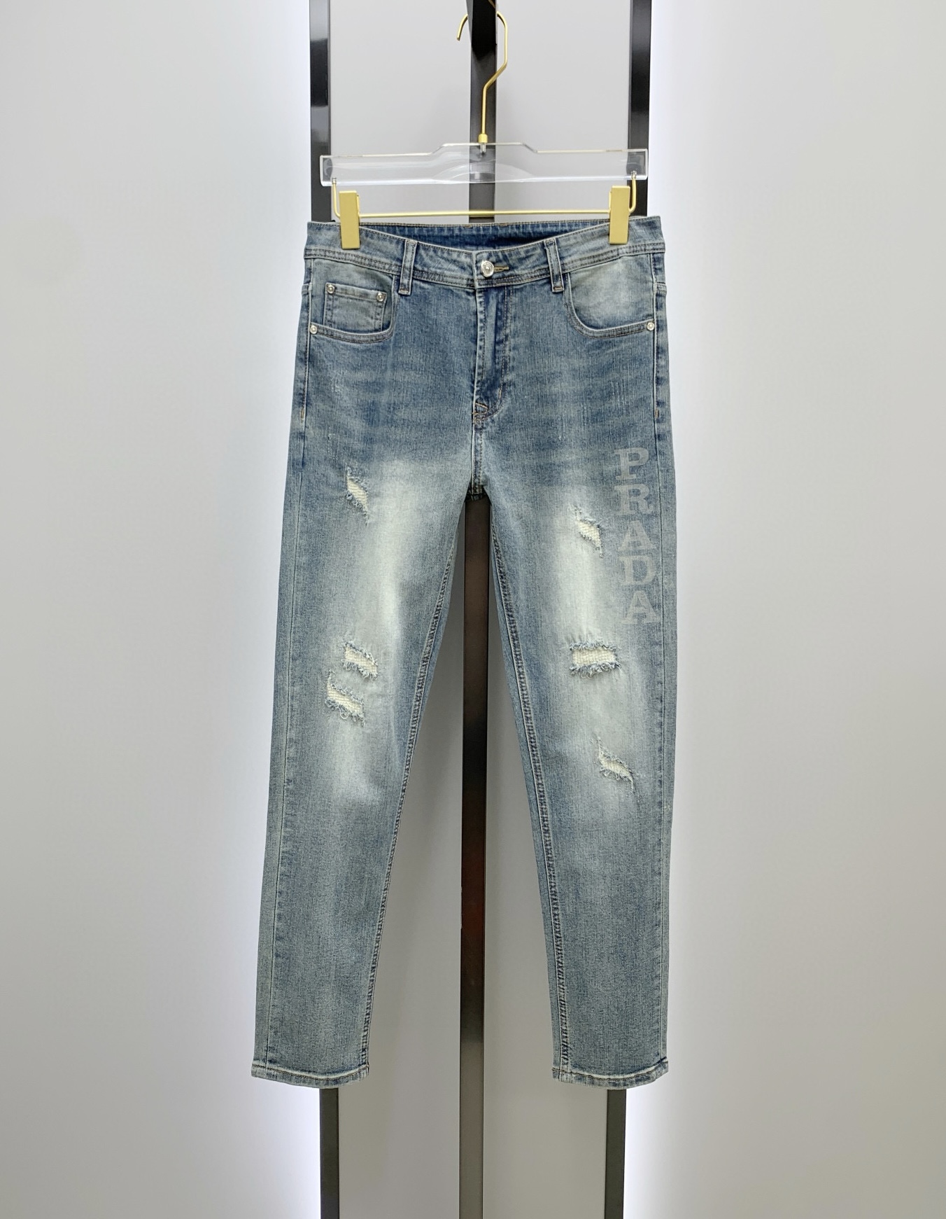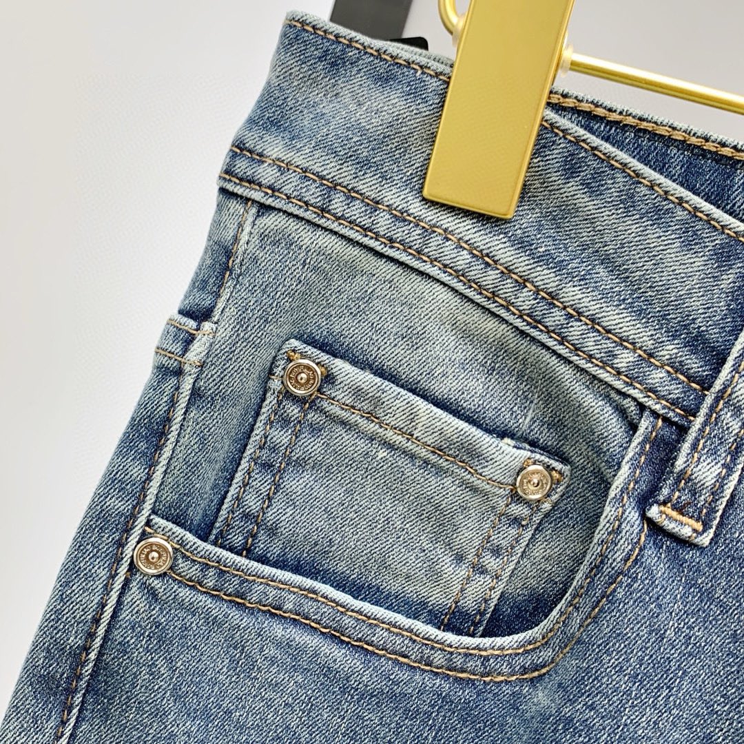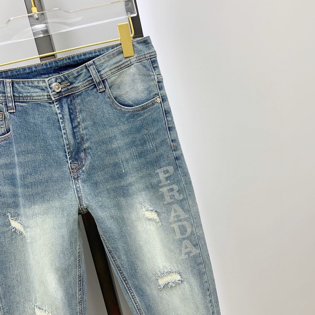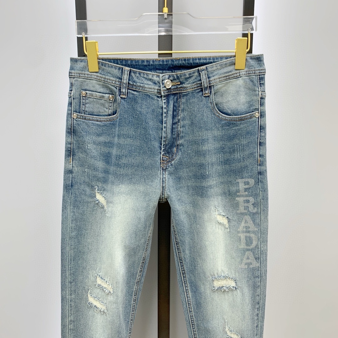 PRADA men's denim jeans. Premium Japanese 13oz fabric, eco-enzyme wash for soft texture & vintage hue. Perfect fit, versatile style. Sizes: 29-38 (excl. 35, 37).
