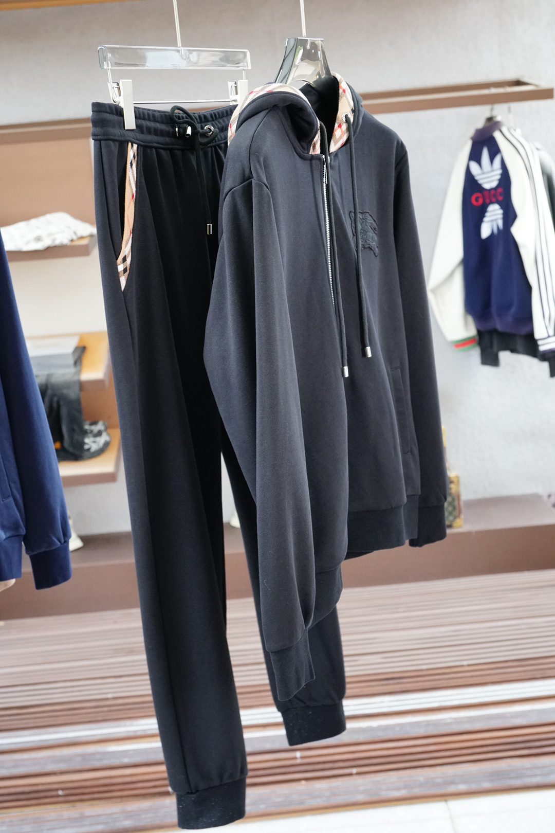 BBR Burberry 2025 autumn-winter casual set. Hooded, embroidered logo, tailored urban style. Colors: black, blue. Sizes: 48M-56XXXL.