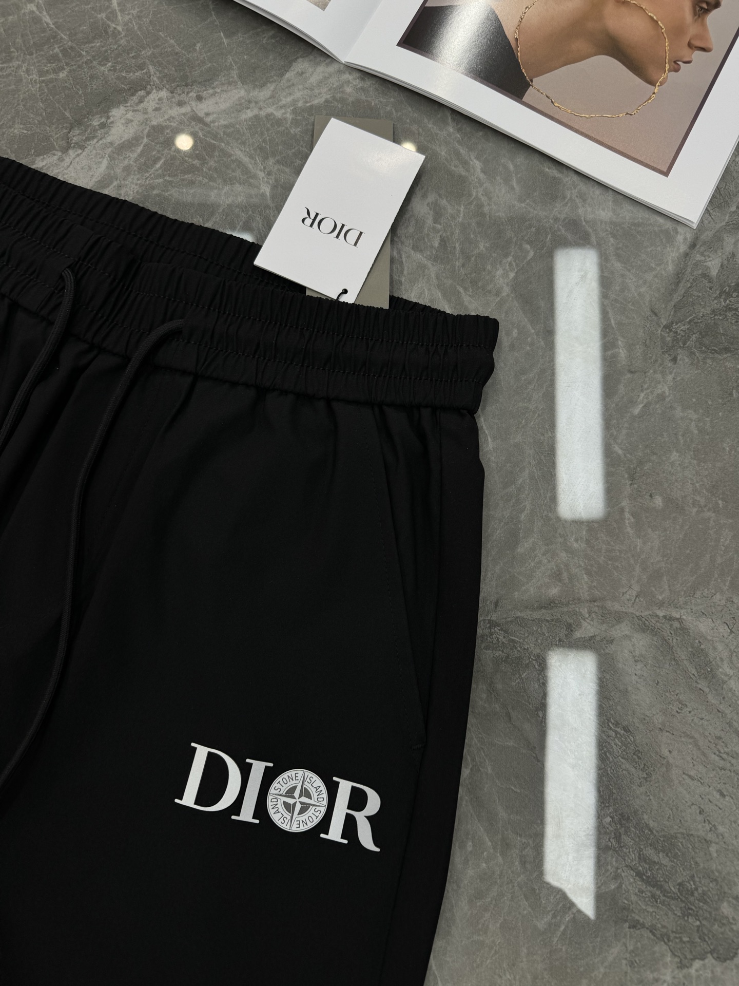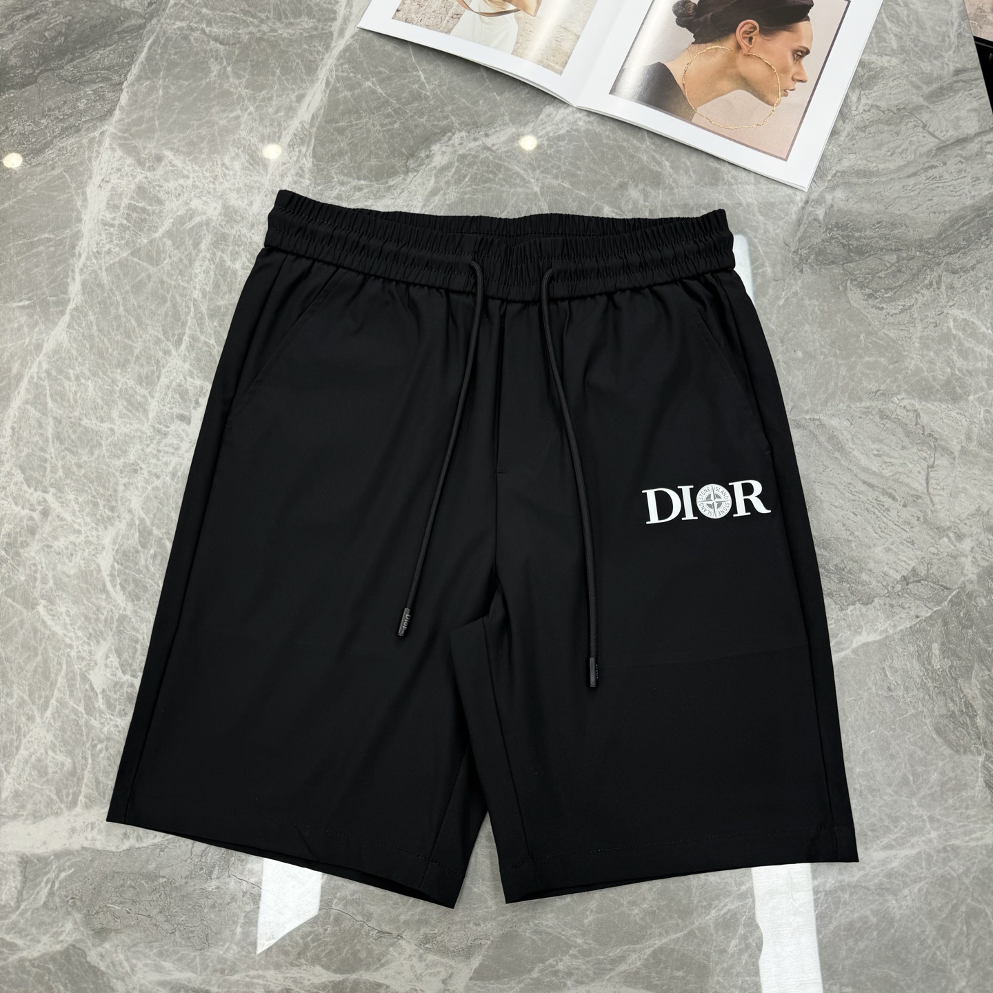 DIOR 25s new 5-inch shorts! Stone Island collab. Classic logo, heat transfer print. Lightweight stretch fabric, comfortable & breathable. Unisex. Colors: Black, White, Navy. Sizes: M-3XL.