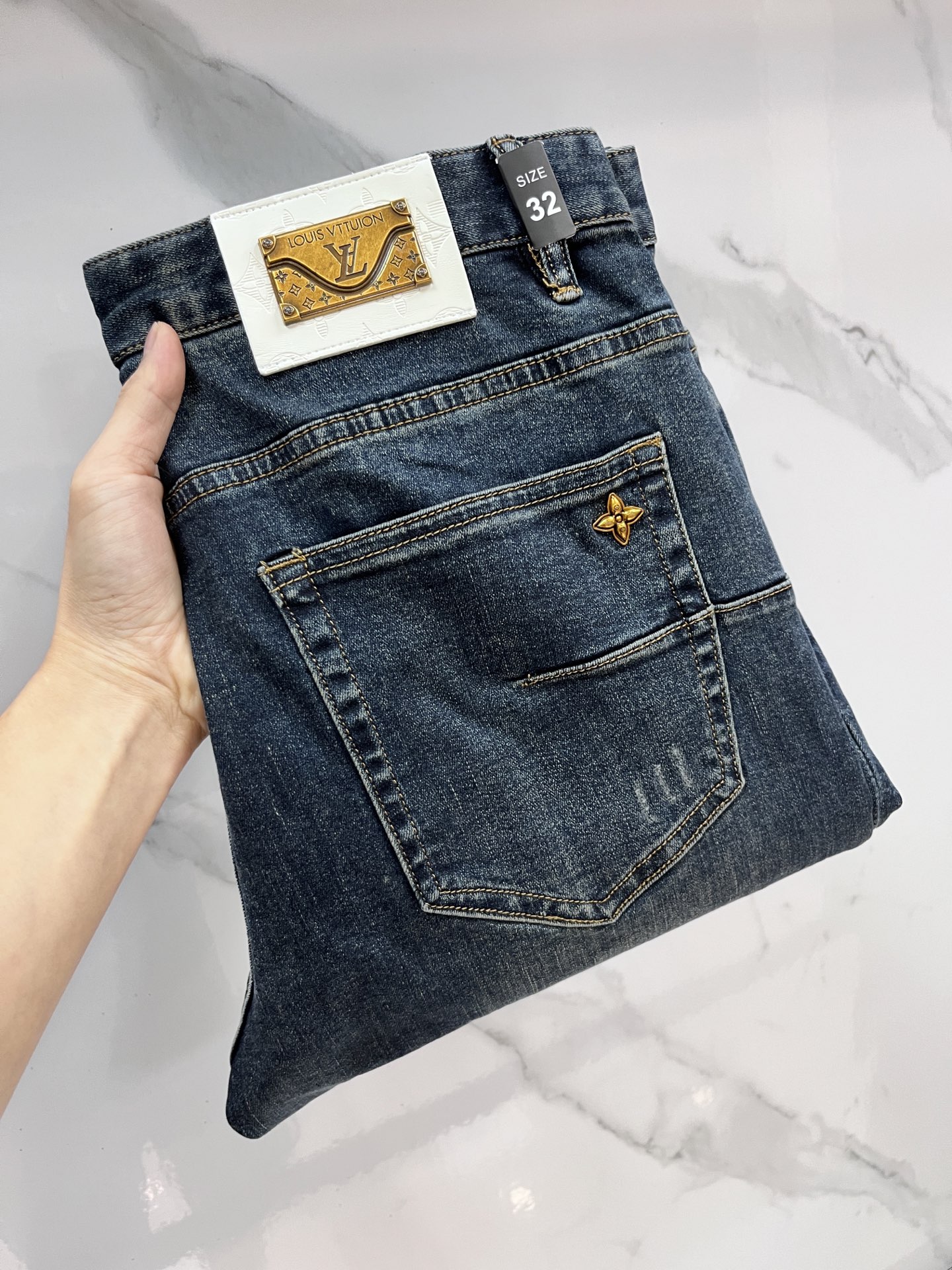 LV 2025SS early spring lightweight distressed jeans. Imported stretch denim, comfortable & breathable. Custom hardware trim, excellent fit. Sizes 29-38.