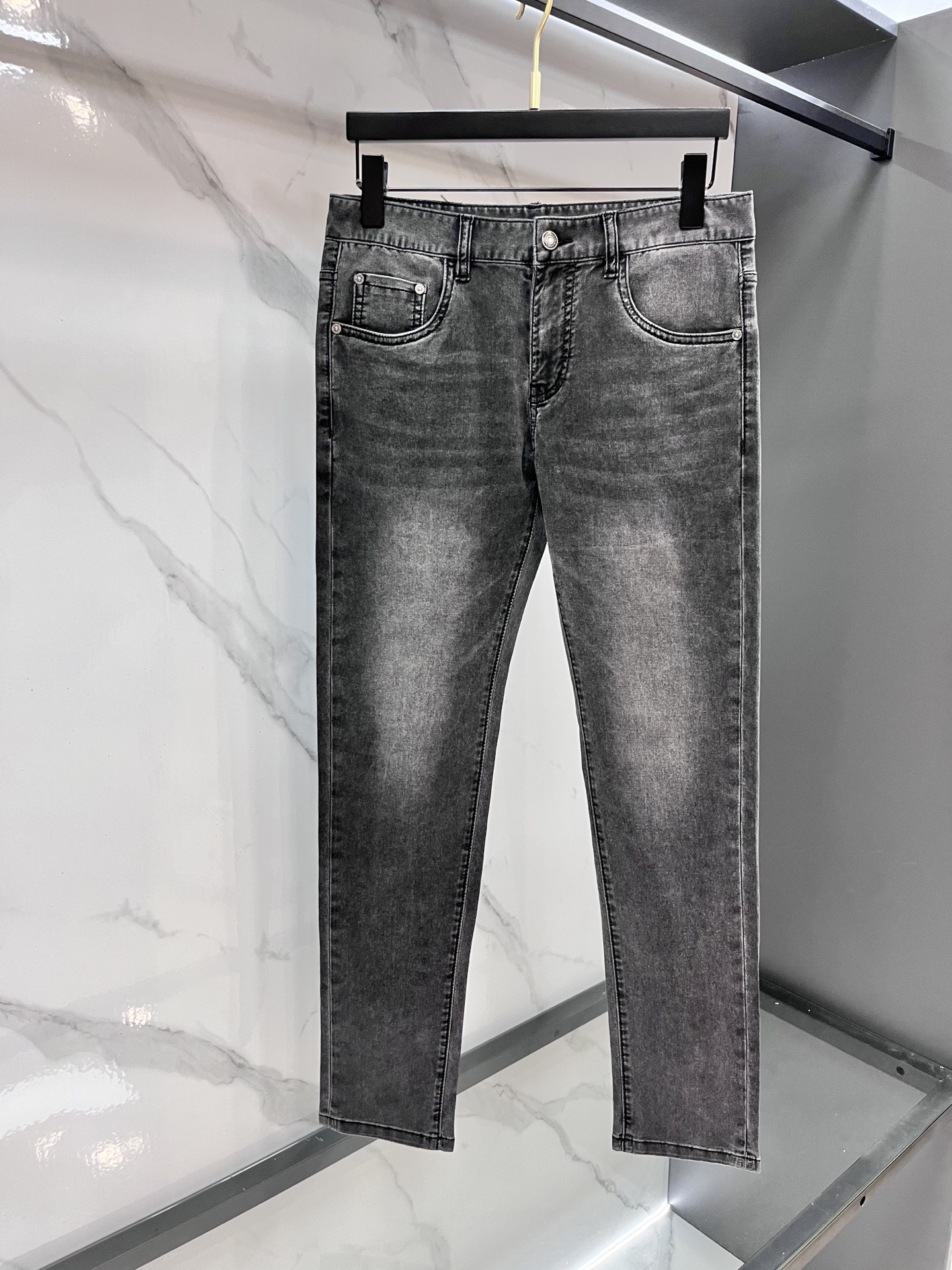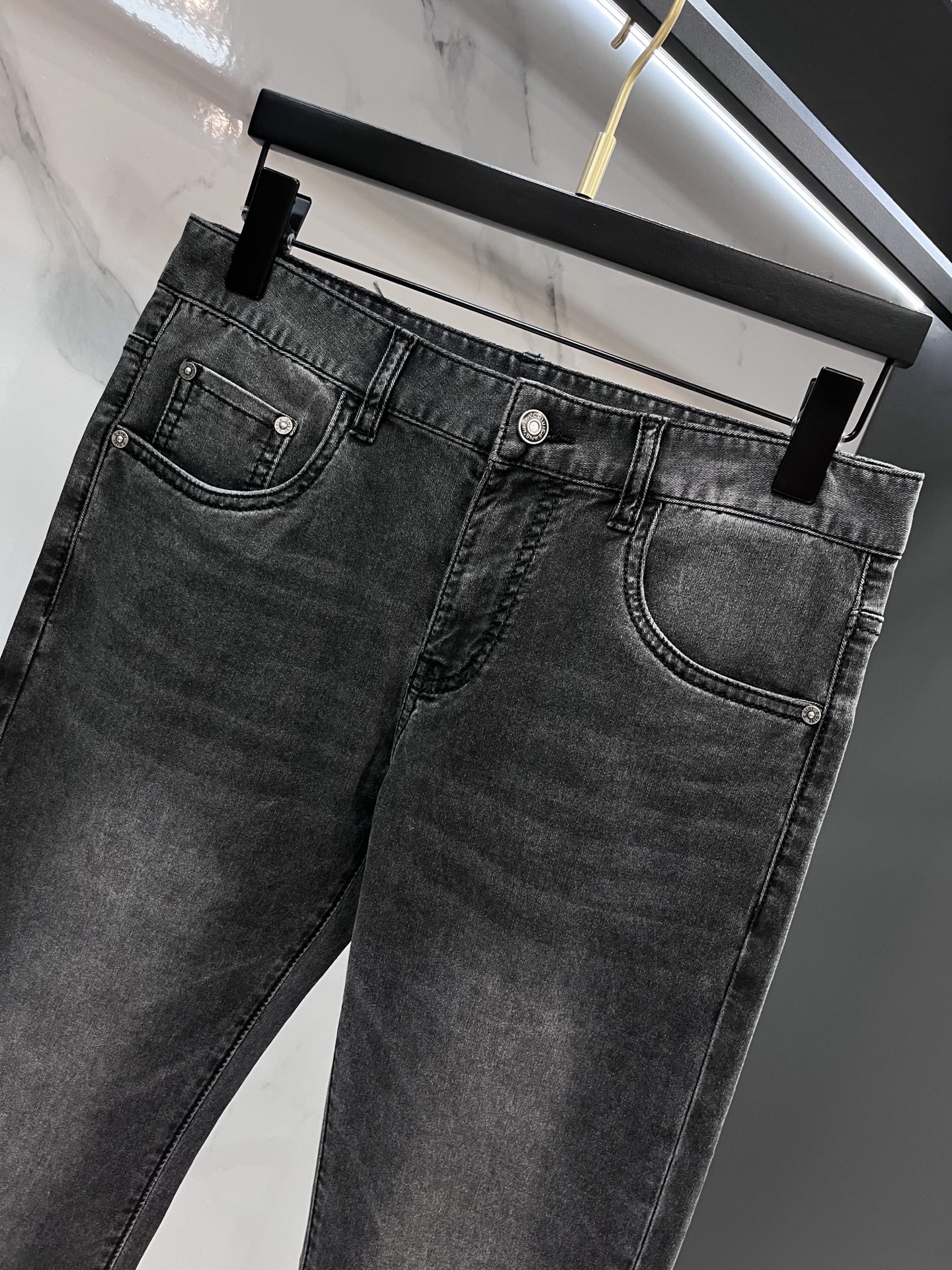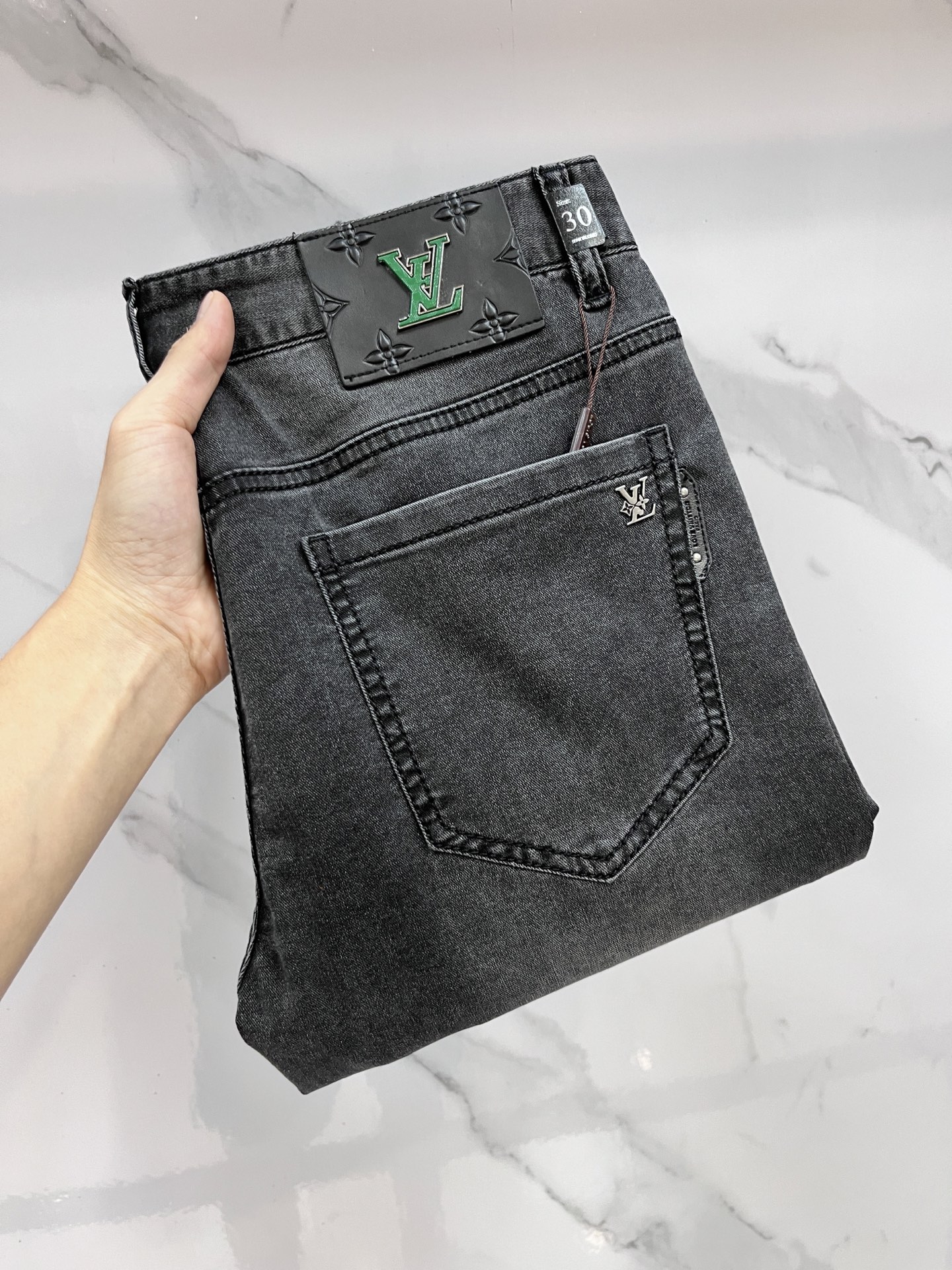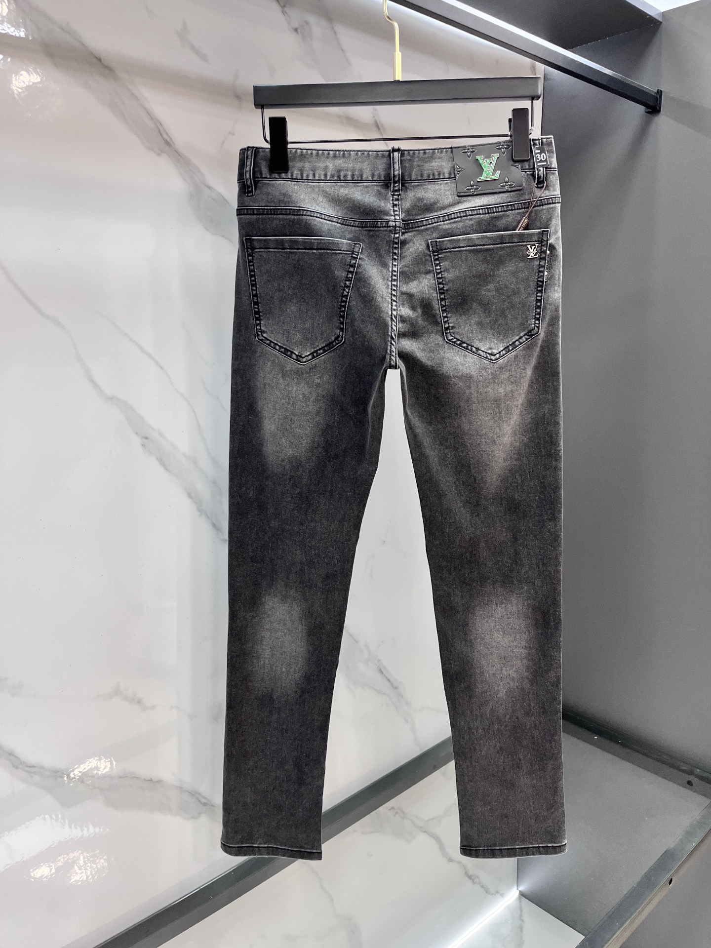 P205 Lv 2025SS spring/summer men's lightweight jeans. Imported denim, eco-wash, soft, durable. Slim straight cut, stretch, slim fit. High-quality hardware, fine workmanship. Sizes 29-38.