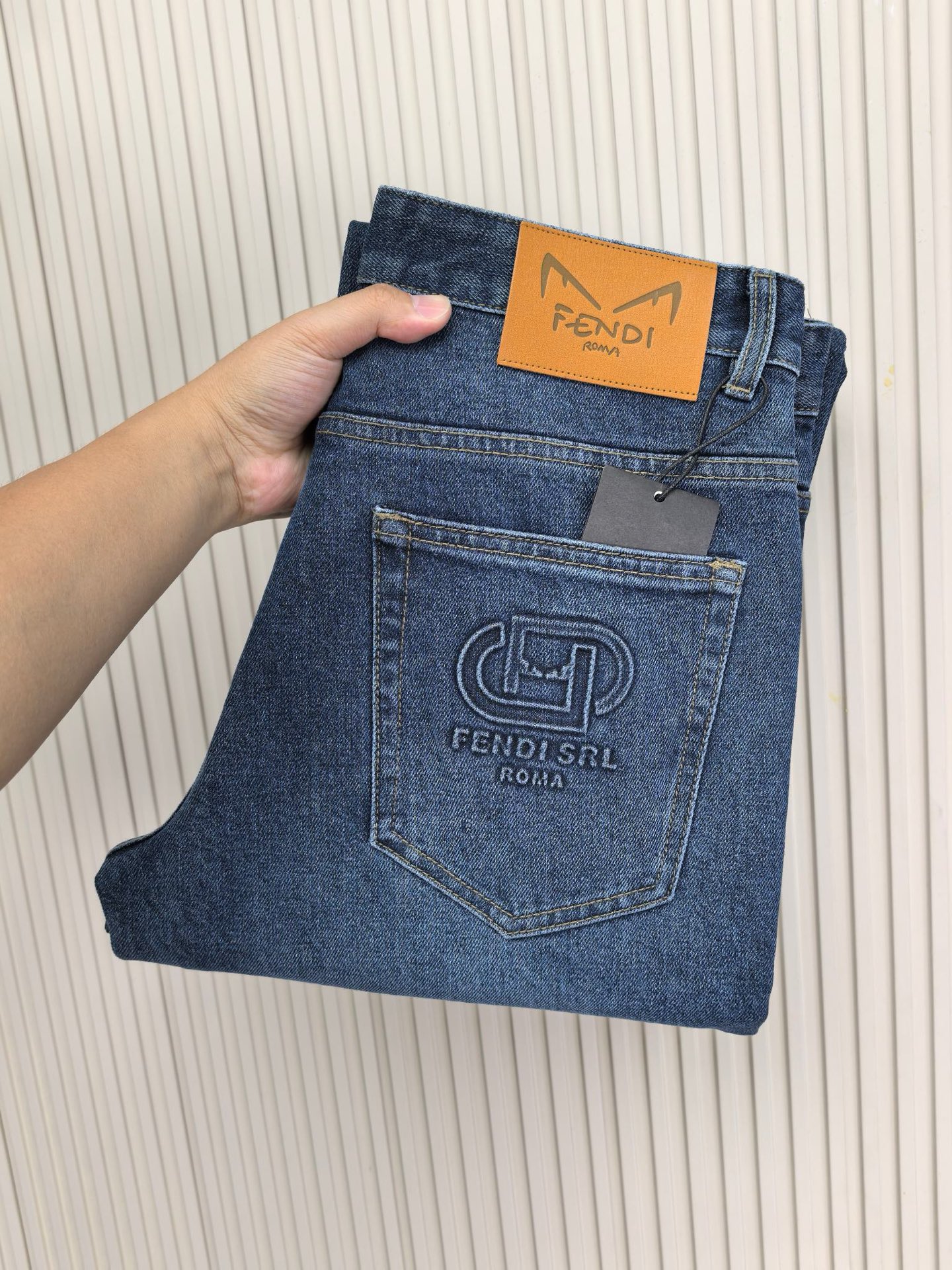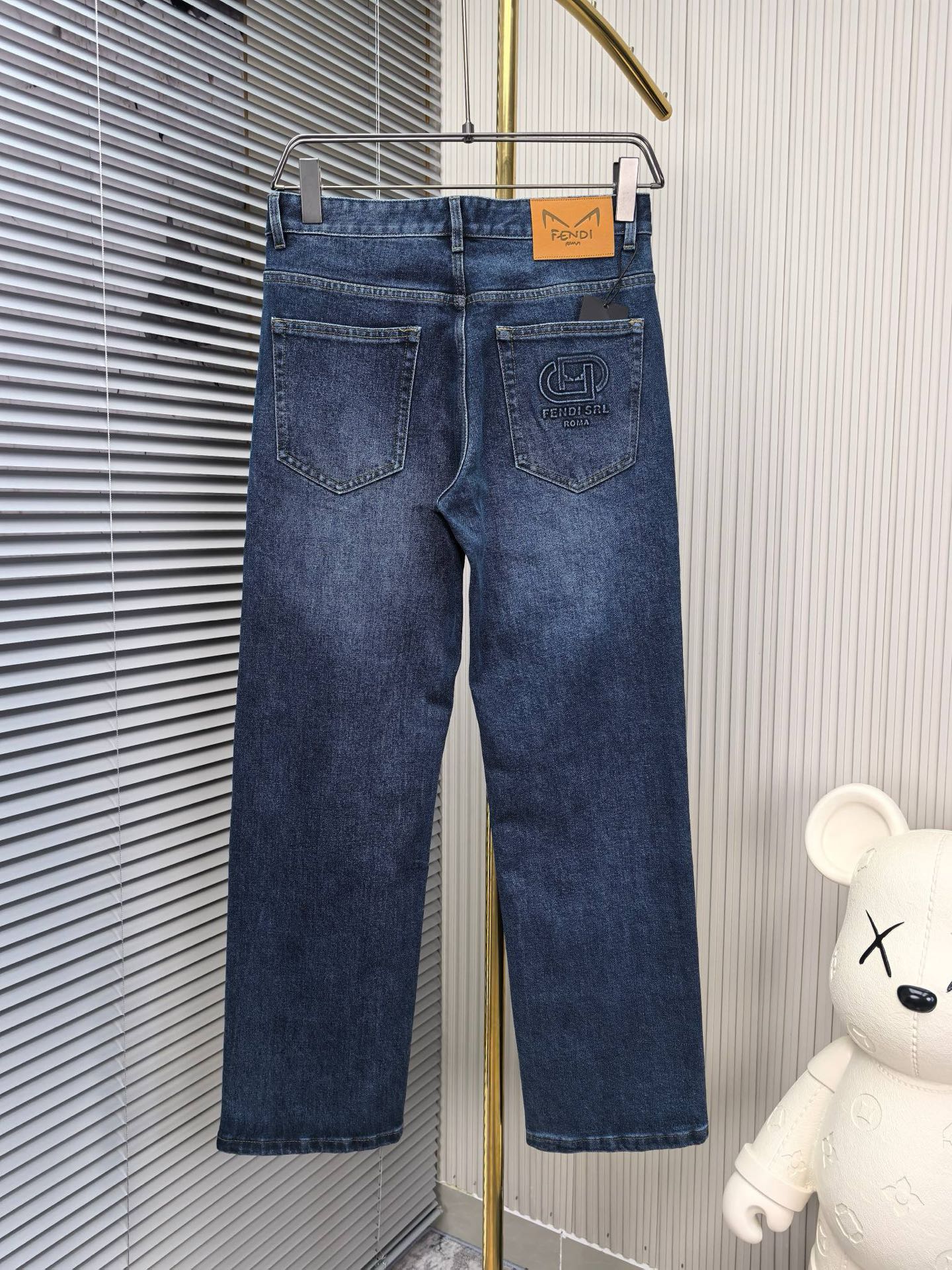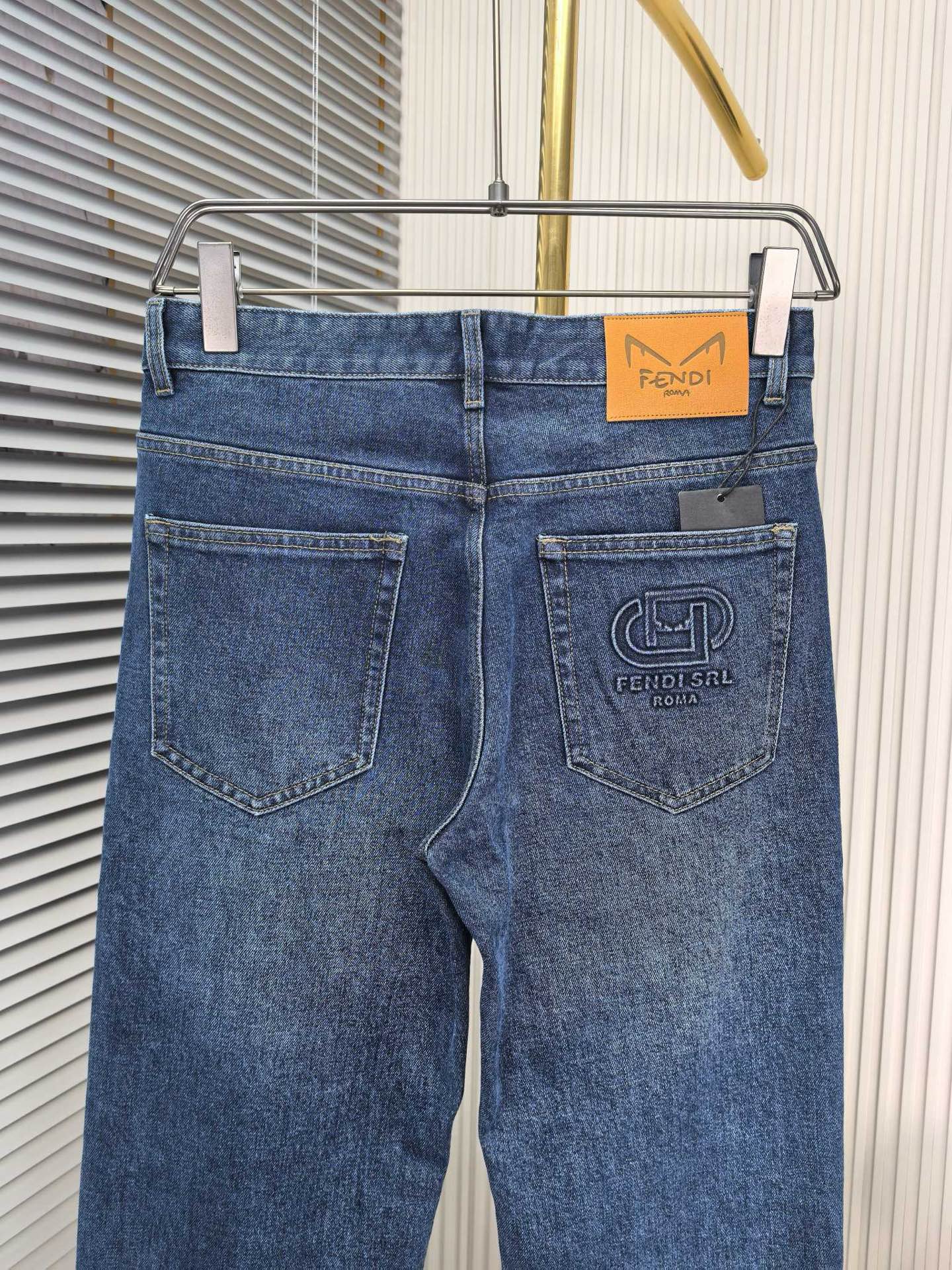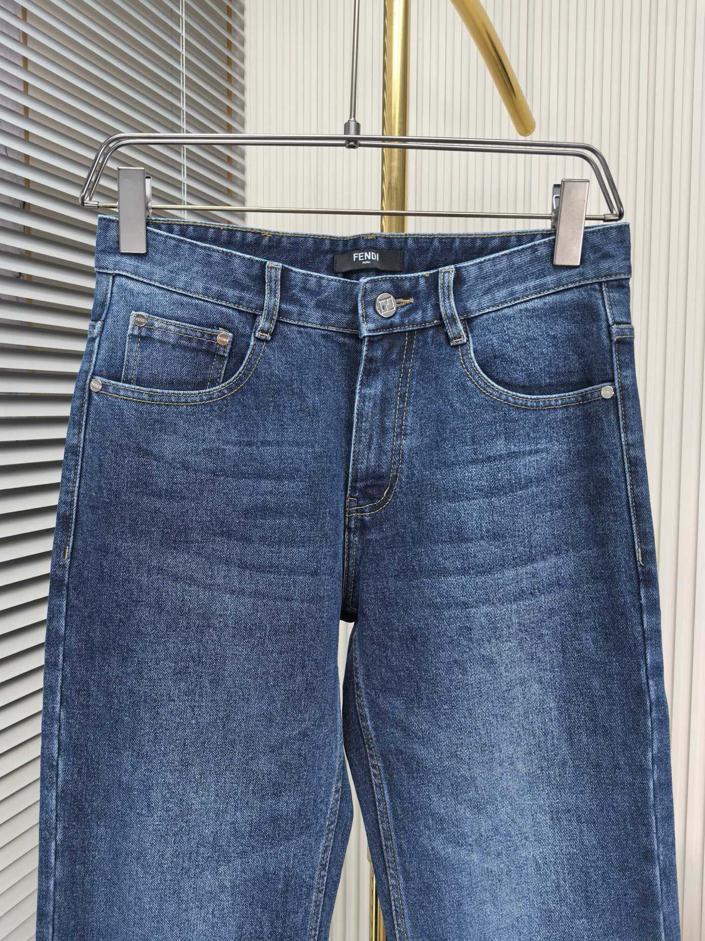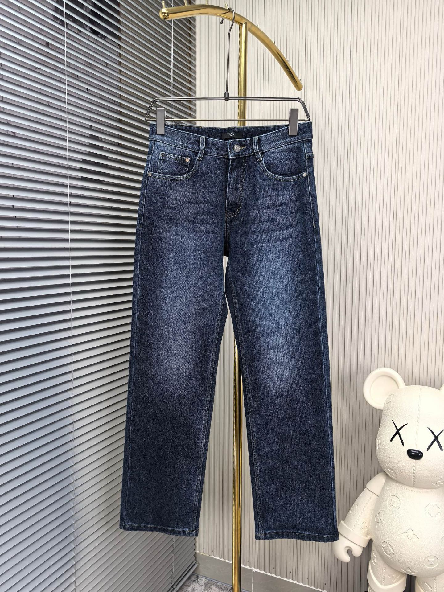 Fendi wide-leg jeans, 1975 autumn-winter new men's denim. Heavy wash, custom soft fabric, comfortable, top breathability. Custom logo hardware. Sizes 29-38.
