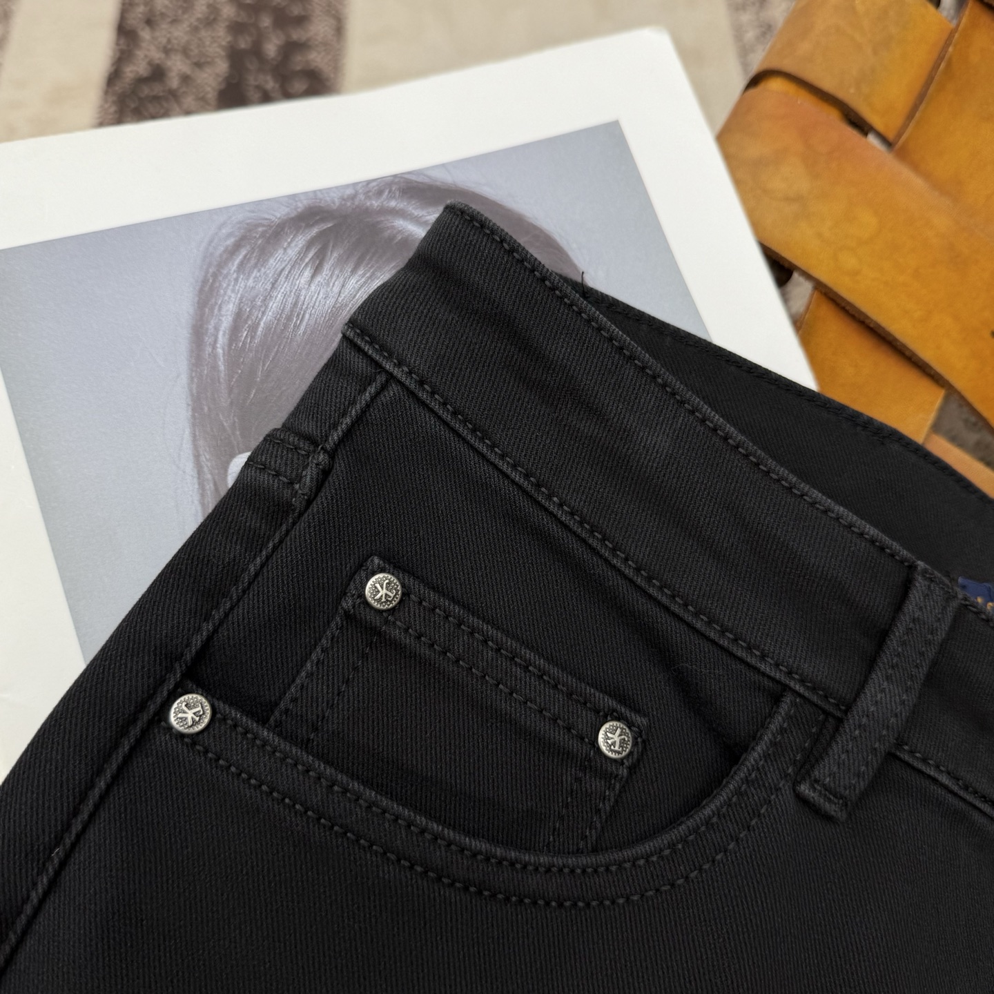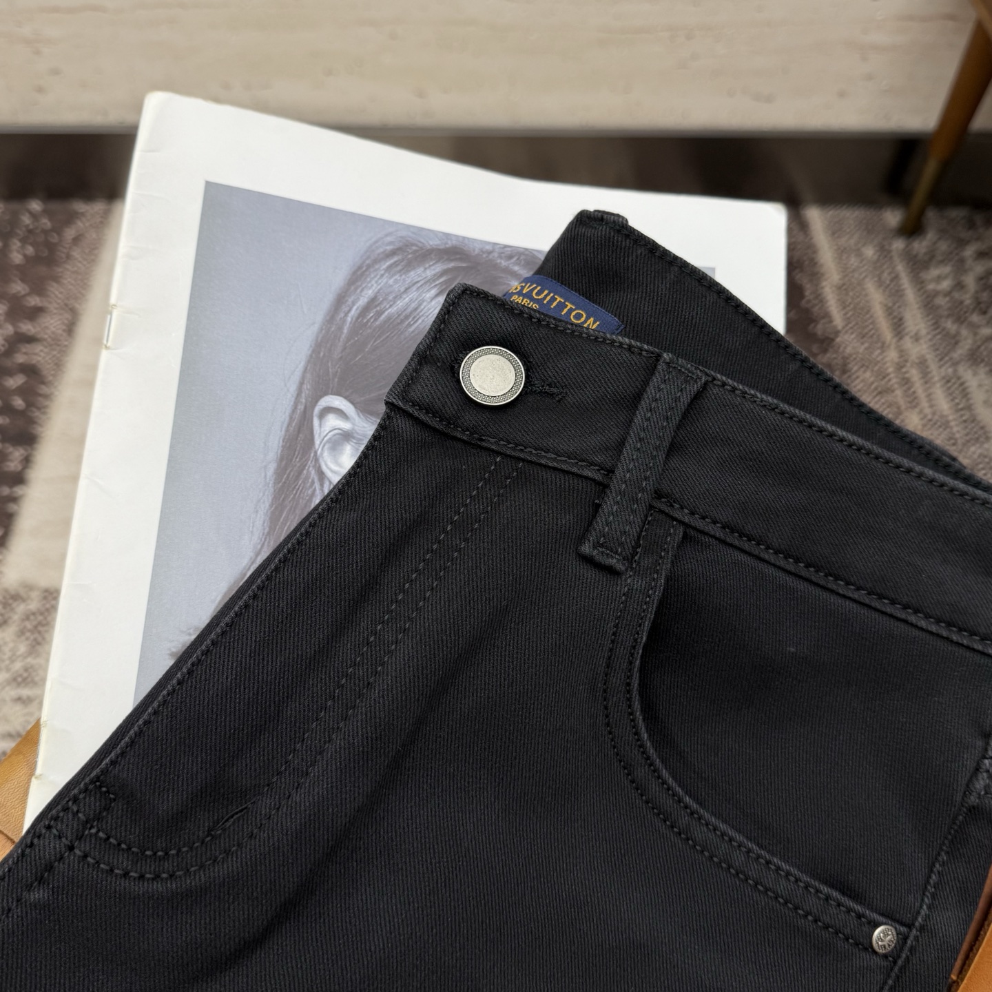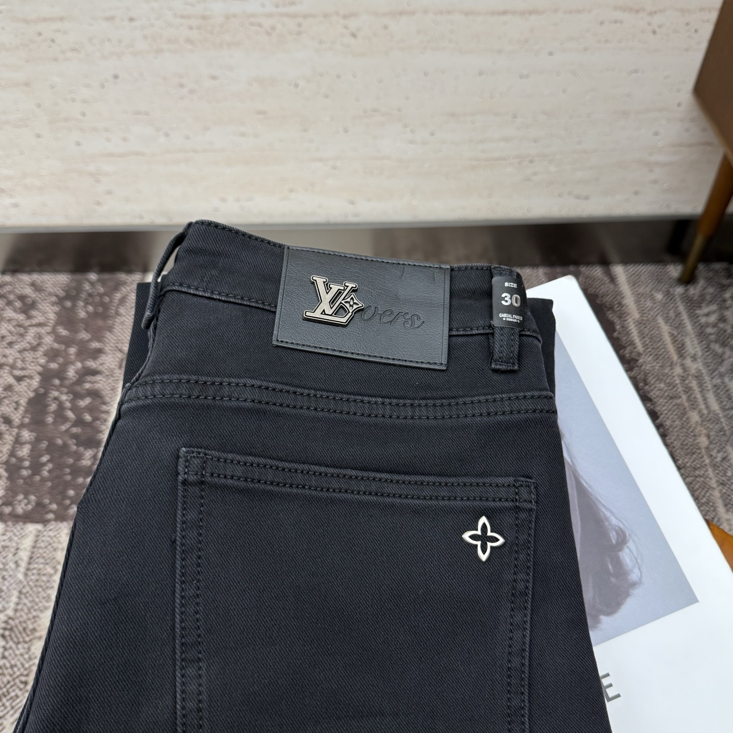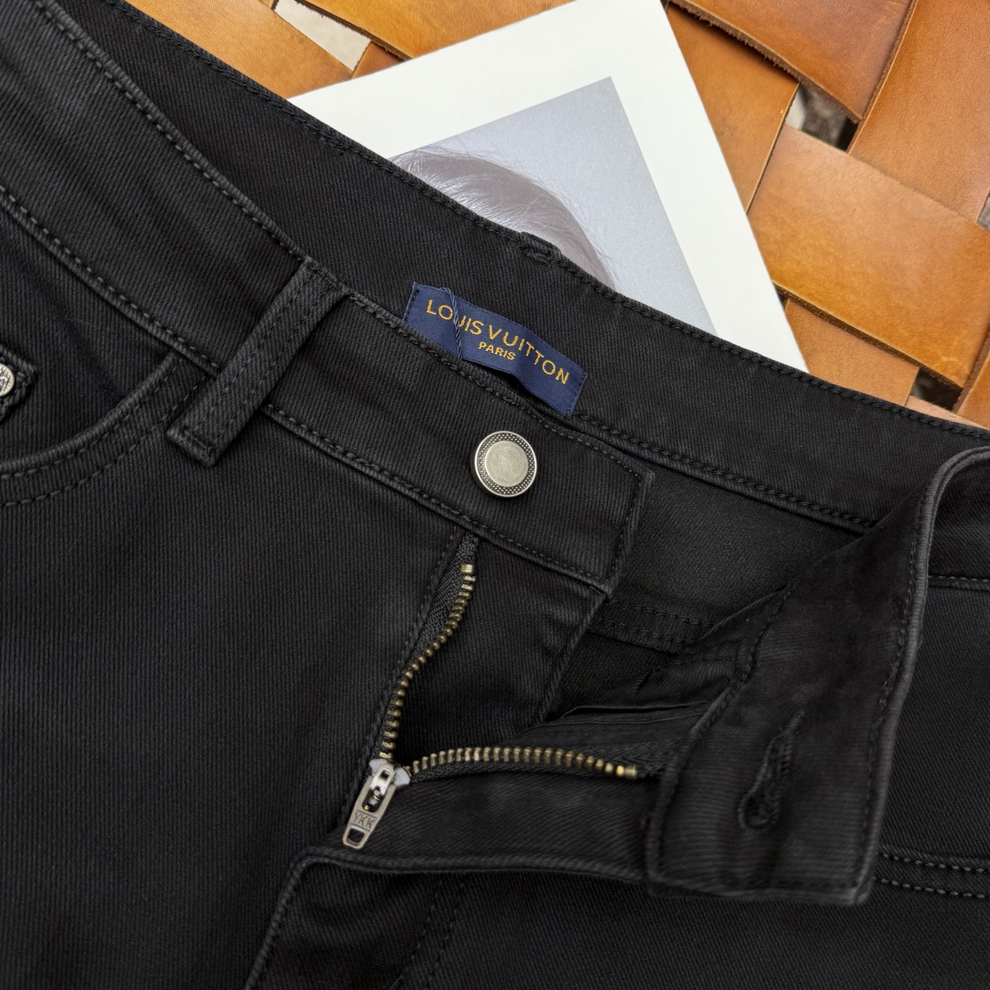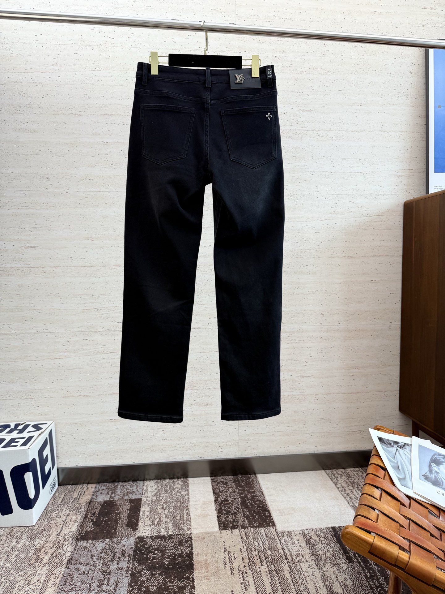 LV25S Men's Straight Leg Jeans for Autumn/Winter. Made of soft, resilient cotton denim with classic embossed logo. Sizes 29-38.
