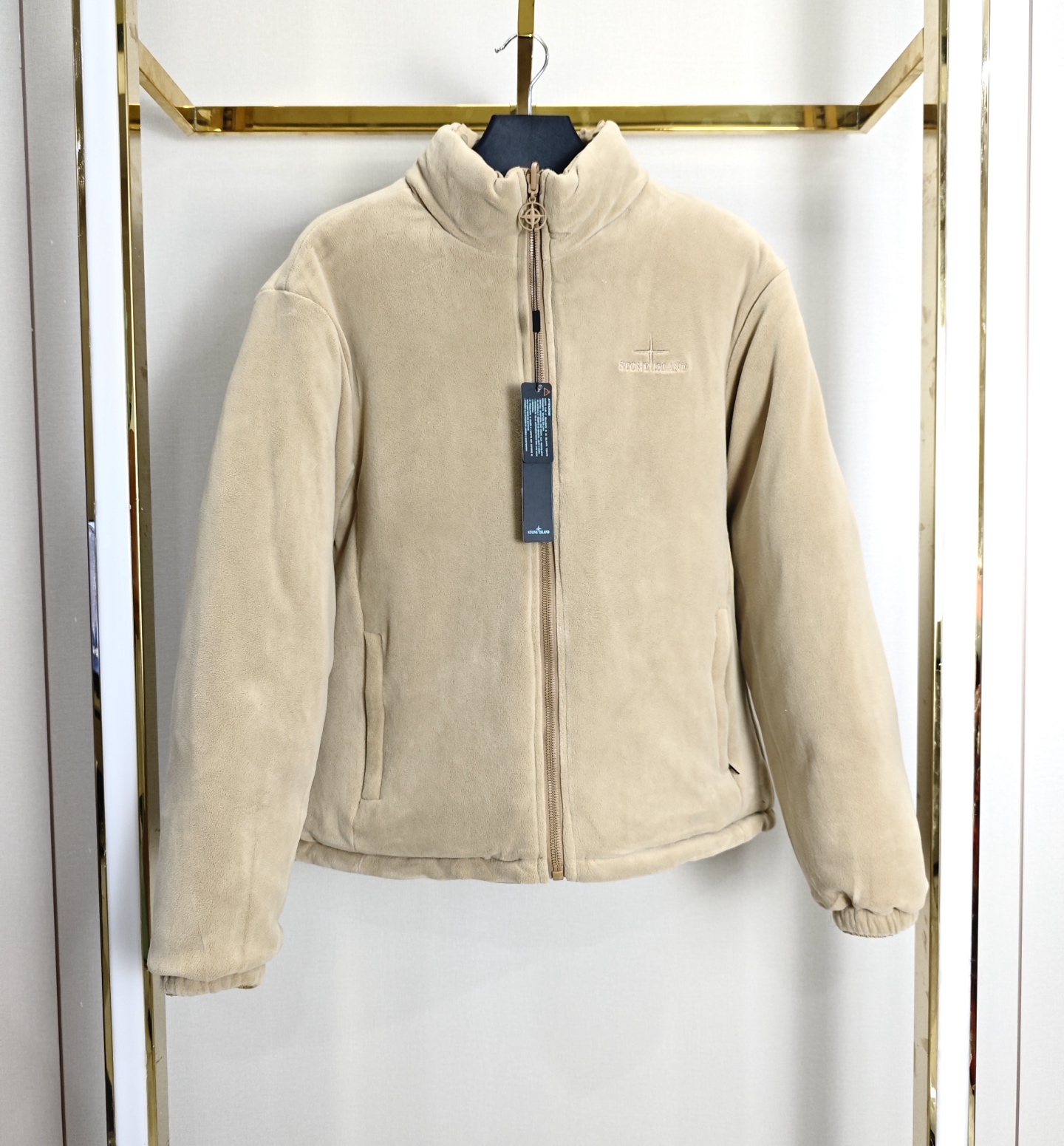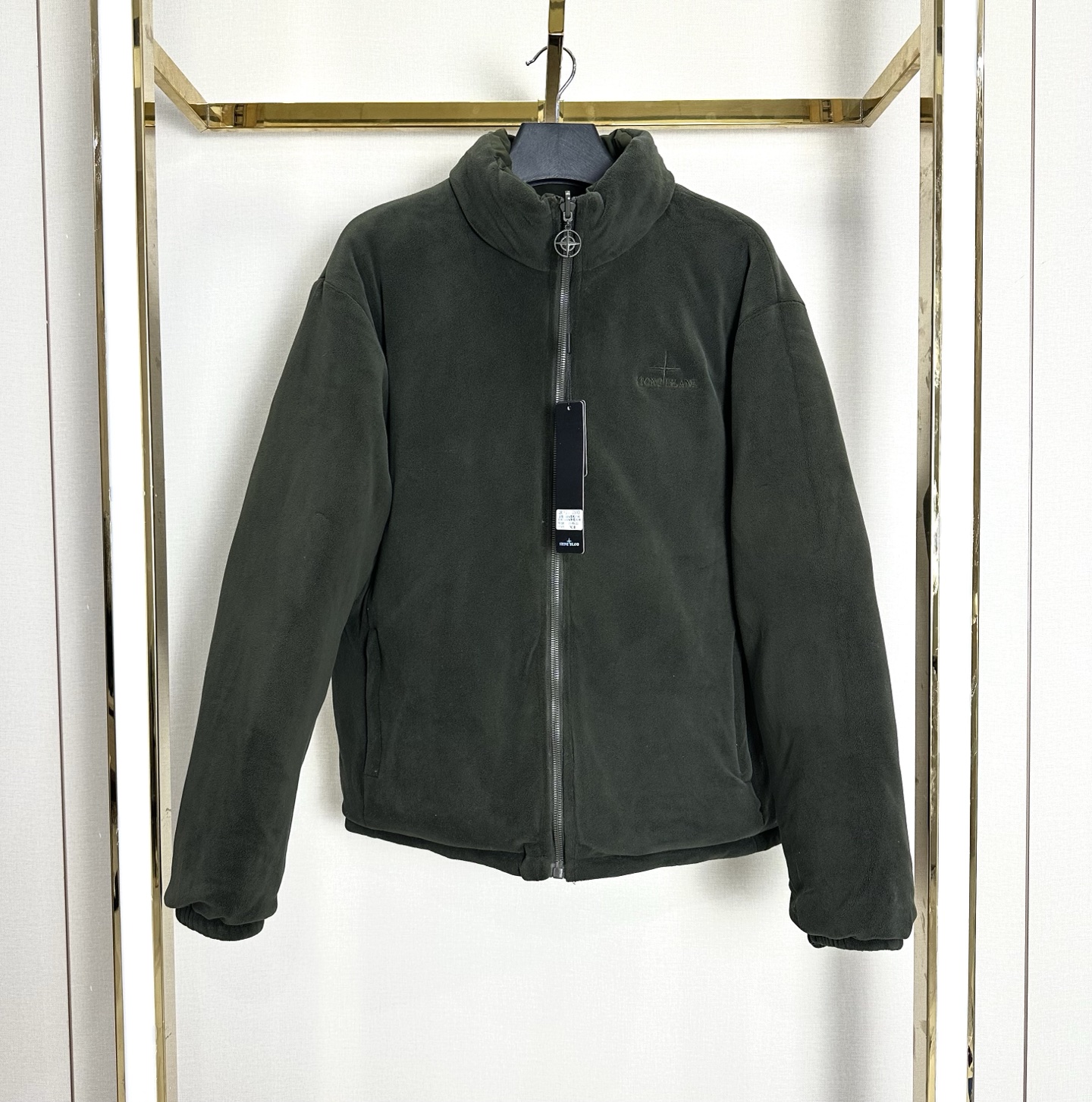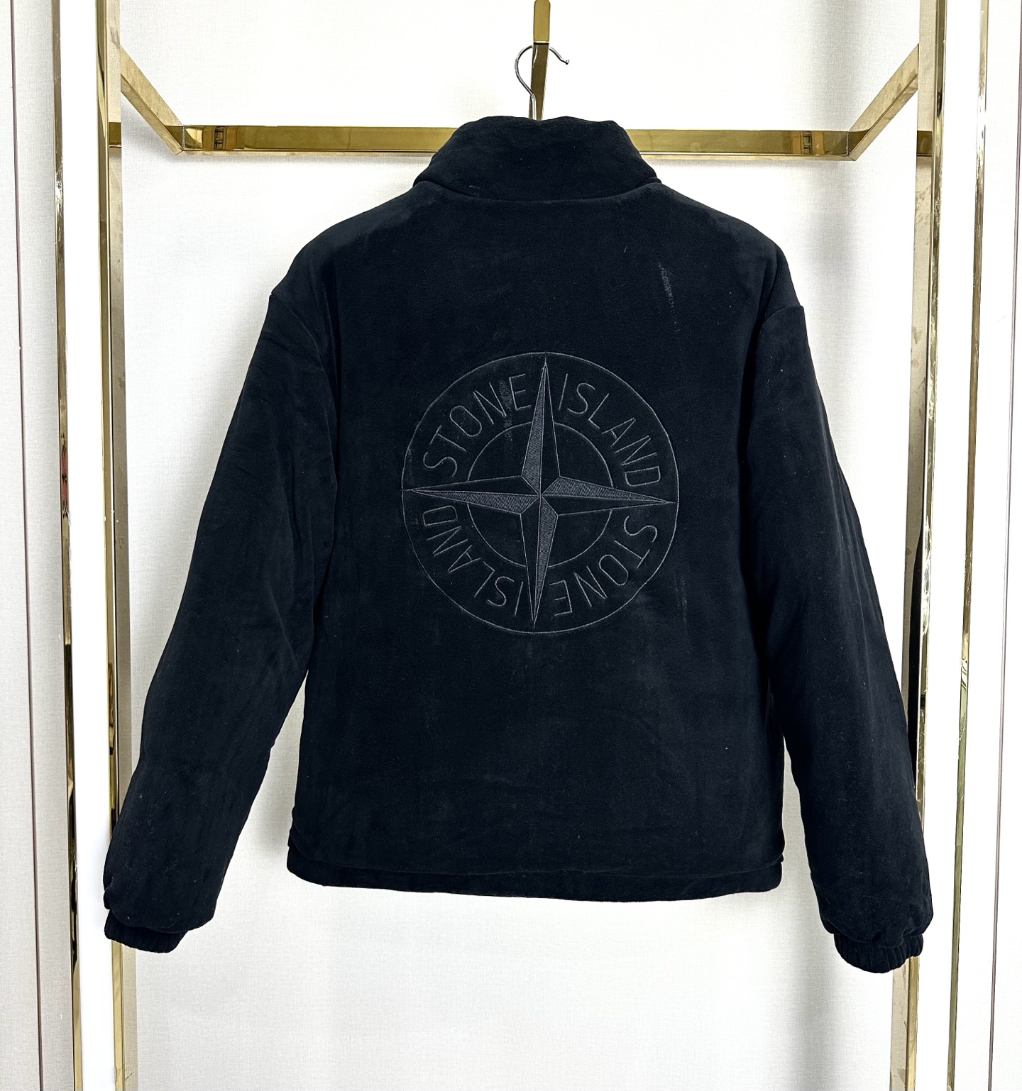 Stone Island reversible thick cotton jacket. Colors: black, army green, khaki, navy. Double-sided design, thicker than most. Anti-static, non-shedding. Stand collar, embroidered chest. Durable, well-tailored, slimming. Versatile styling.