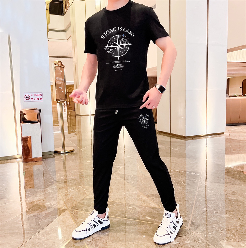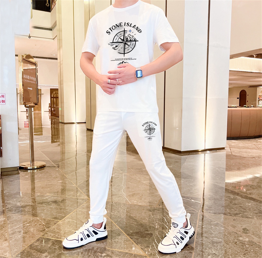 Home • Apparel • Stone Island 2025 summer men's double mercerized high-quality set. Imported original fabric, fashionable style, precise tailoring. Sizes: M-5XL.