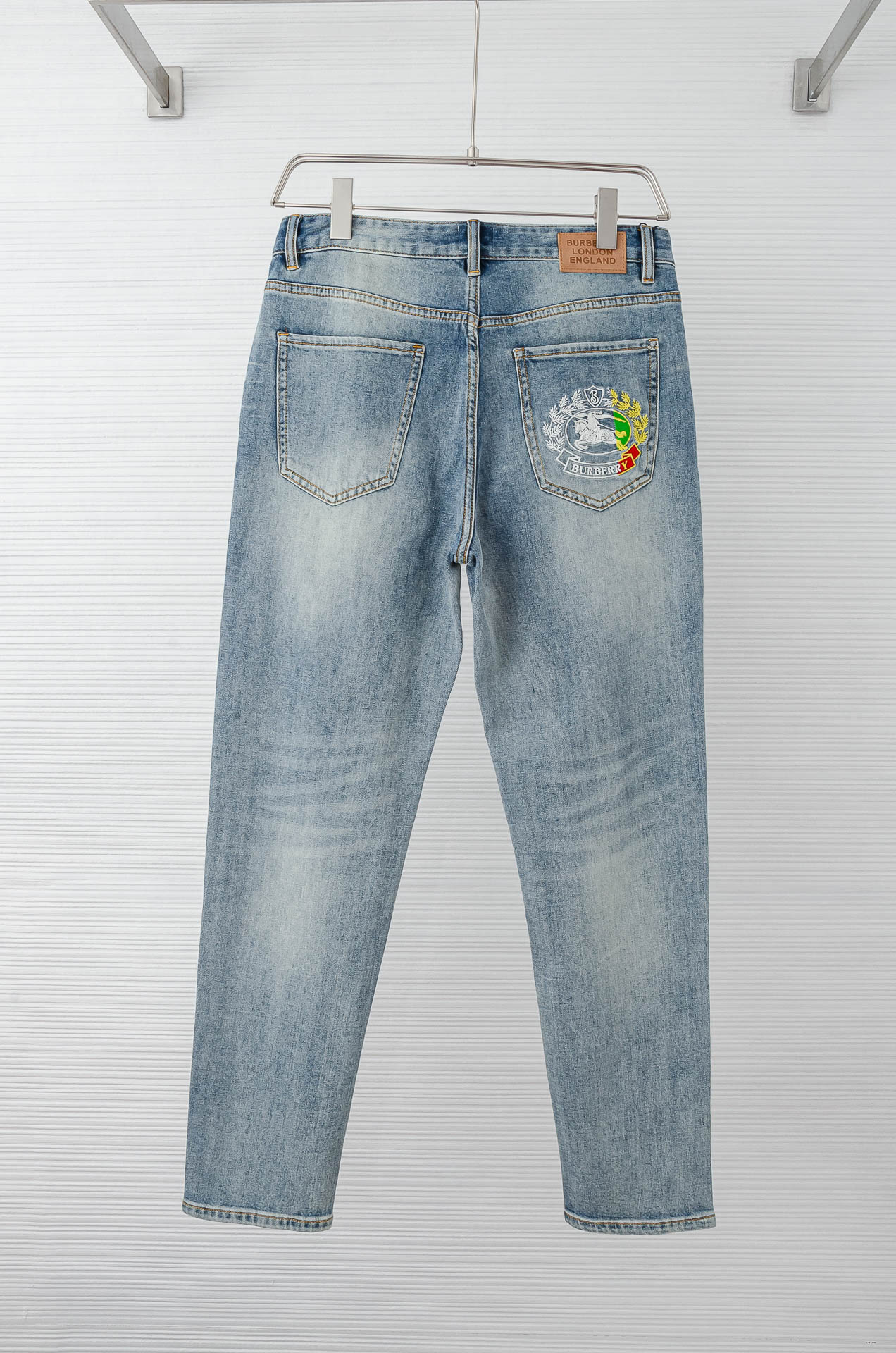 Burberry 2025SS men's straight-leg jeans. Imported denim, comfortable fit. YKK zipper, leather logo tag. Sizes 30-38 (no 35,37). Stylish and versatile.
