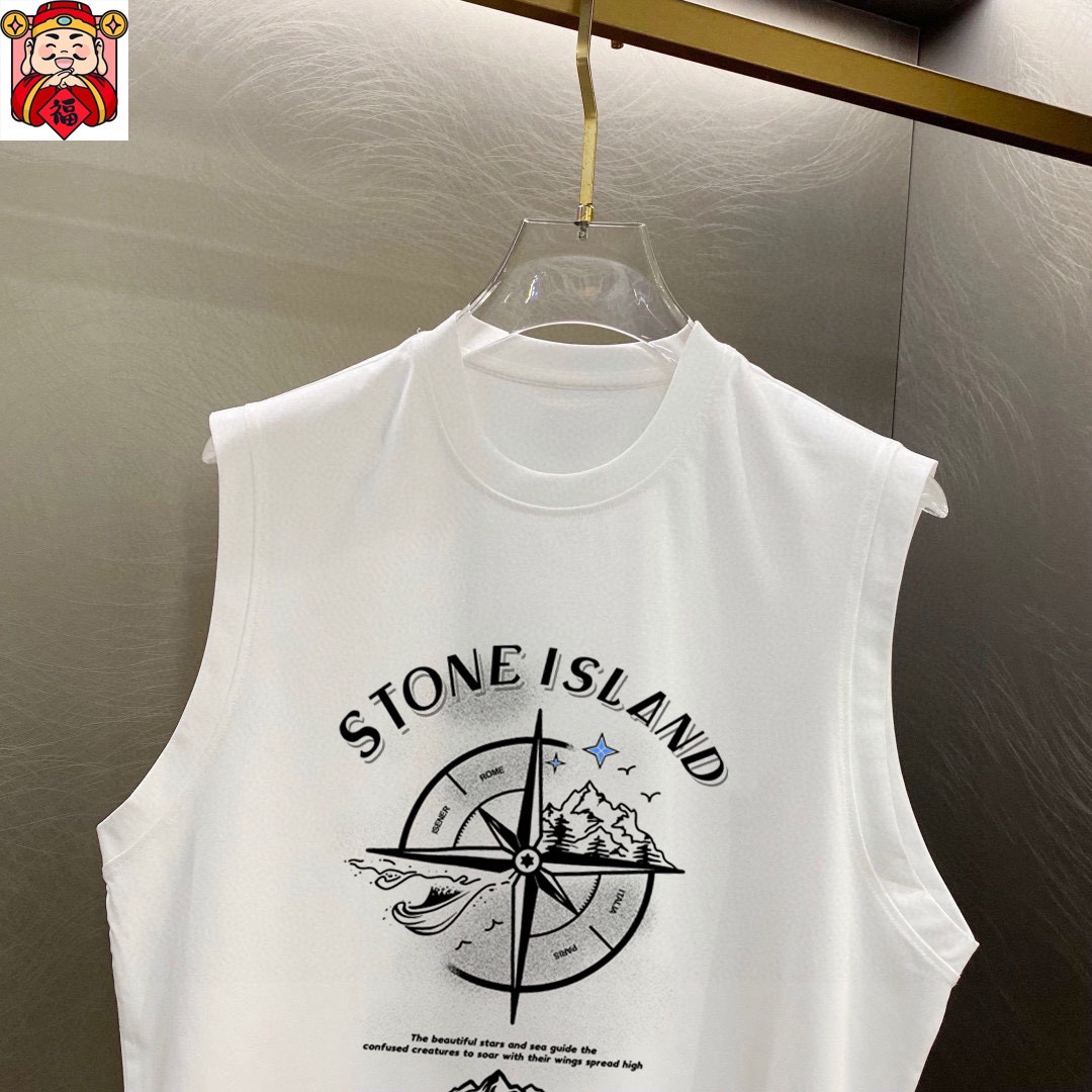 Stone Island 2025 summer vest T-shirt. Classic minimalist design. Imported custom mercerized cotton, soft & breathable. Chest logo. Sizes M-3XL.
