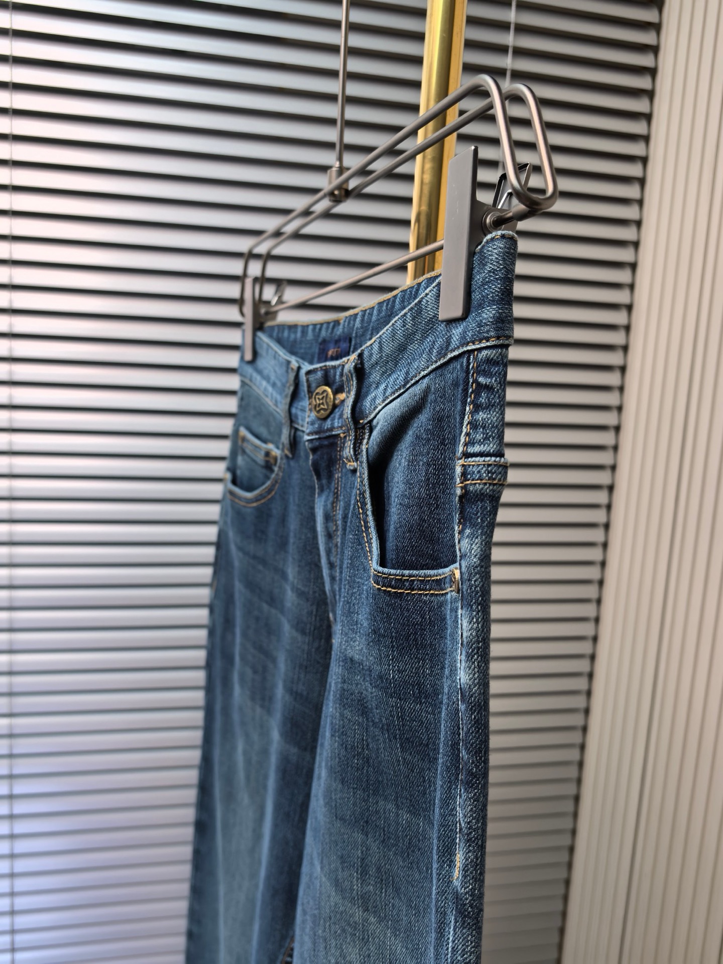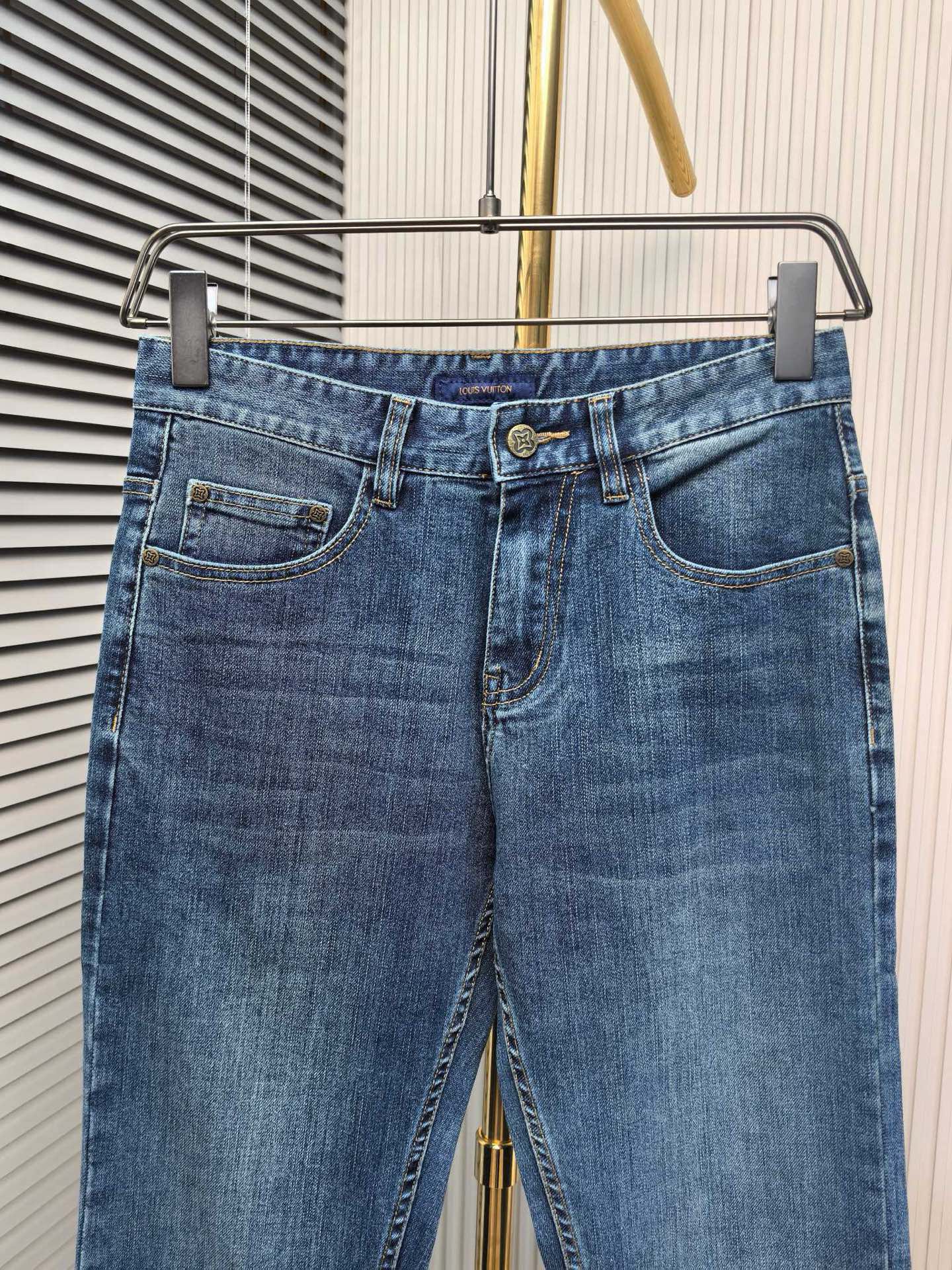 LV 2025 early autumn men's jeans. Heavy wash denim, custom fabric, soft & comfortable. Double washing process, top-notch feel & breathability. Custom hardware logo. Elastic fabric, low-key design. Sizes: 29-40.