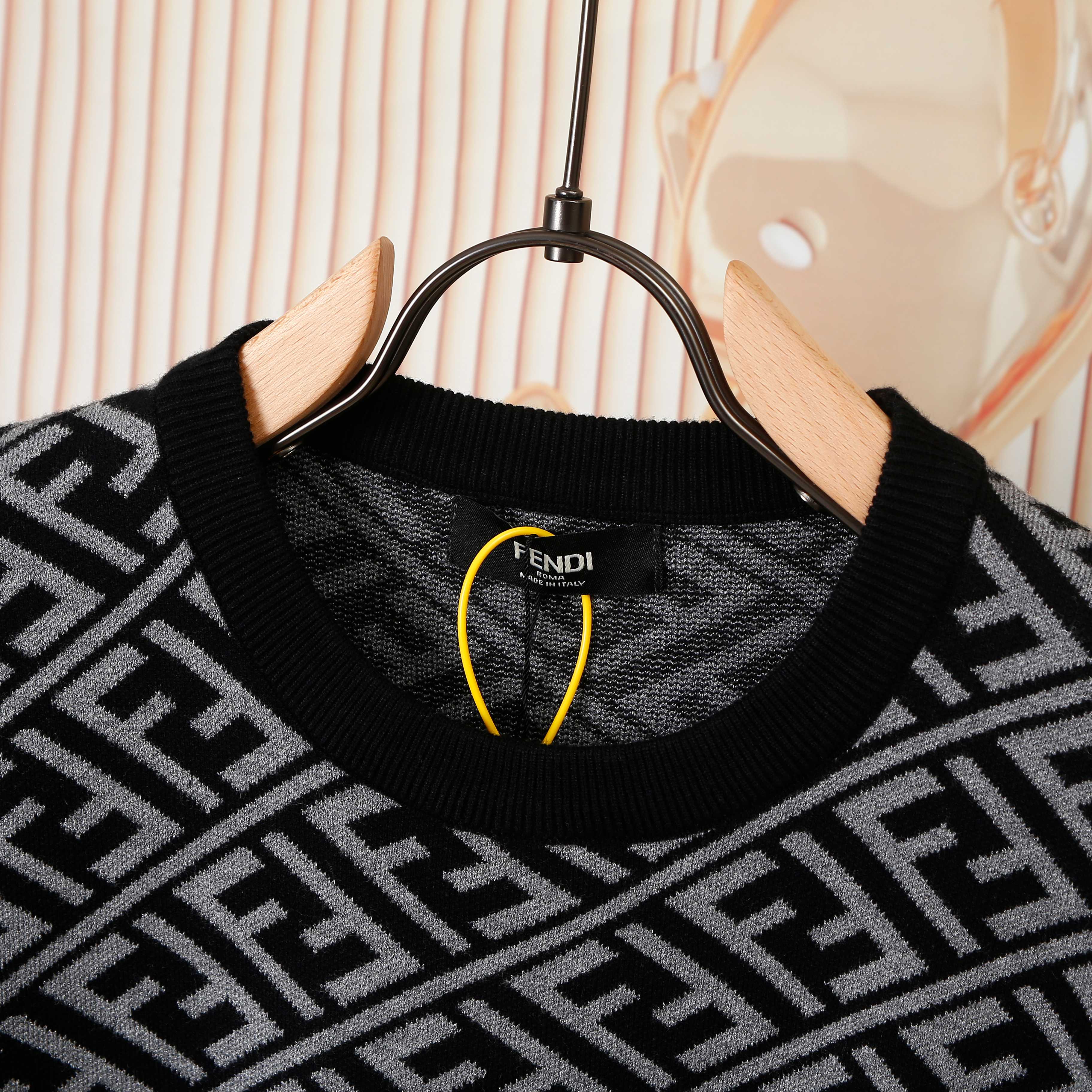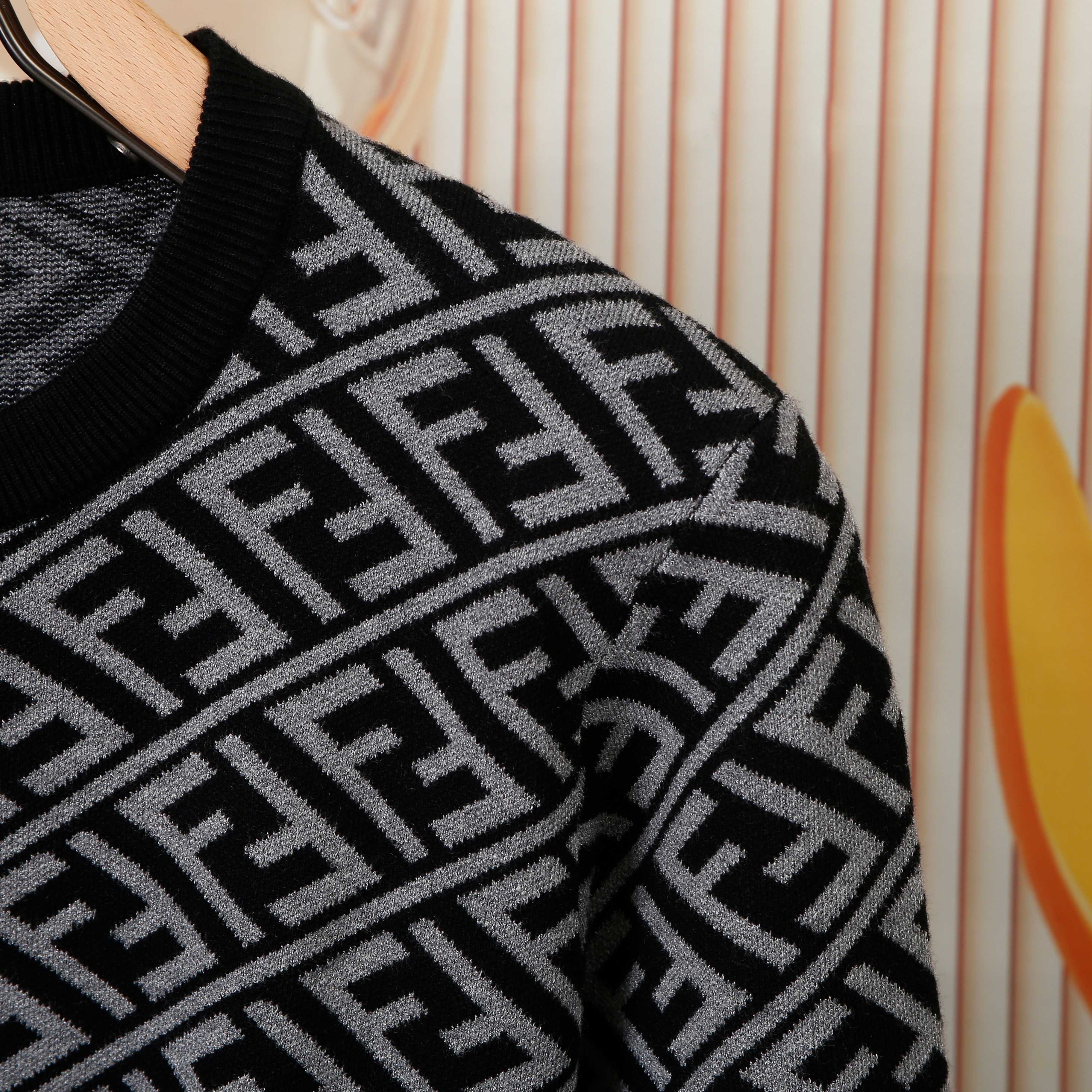 New hit Fendi item, full-body double F round neck knitted sweater. Made with high-end core-spun yarn fabric, really great. Easy to pair with anything, very fashionable. Workmanship and details are 1:1 synchronized with the official website. Absolutely does not pill, not itchy to the skin, feels super comfortable to the touch. The cut is very comfortable, appearance is super high, color matching is extremely beautiful, workmanship is very detailed. Highly recommended. Quality can be compared to the market, not afraid to compare with other products.