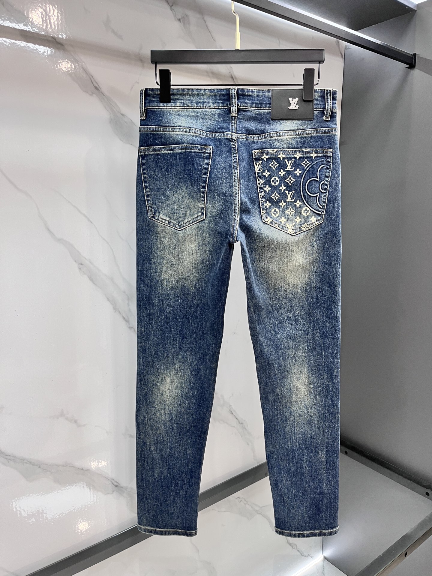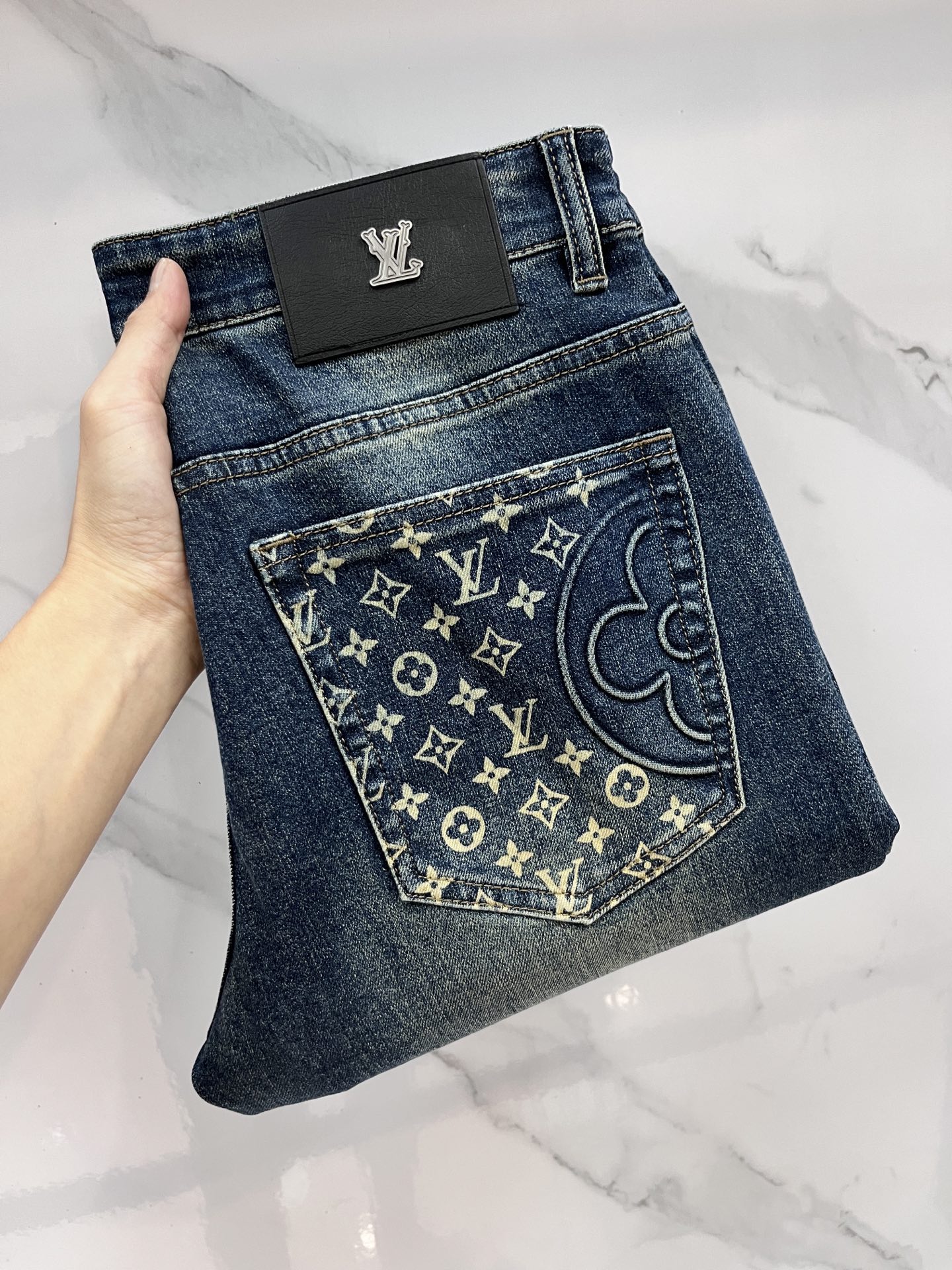 Louis Vuitton 2025 new men's jeans. Stretchy denim, exclusive release, elegant design with fine craftsmanship. Sizes 28-38, ships next day.