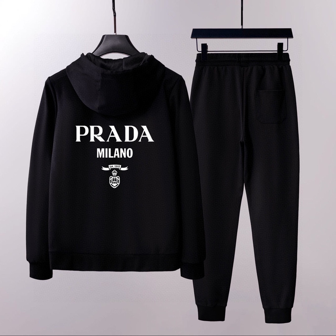 PRADA 2025 new hoodie set, premium Roman cotton, elegant fit. Sizes M-5XL, up to 220斤.