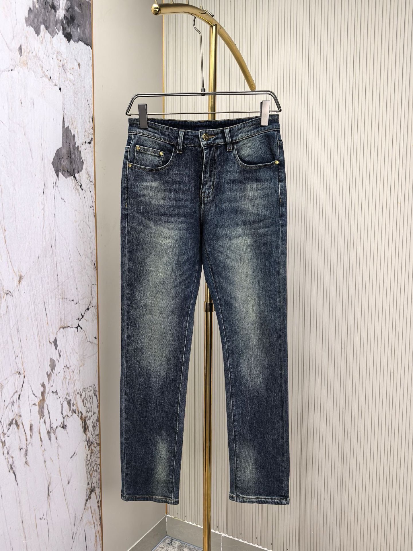 LV 2025 early fall new men's jeans. Heavy wash denim, custom fabric, softer and more comfortable. Double washing process, top-notch hand feel and breathability. Custom hardware logos, best materials. Great elasticity, comfortable. Low-key design. Sizes 29-40.