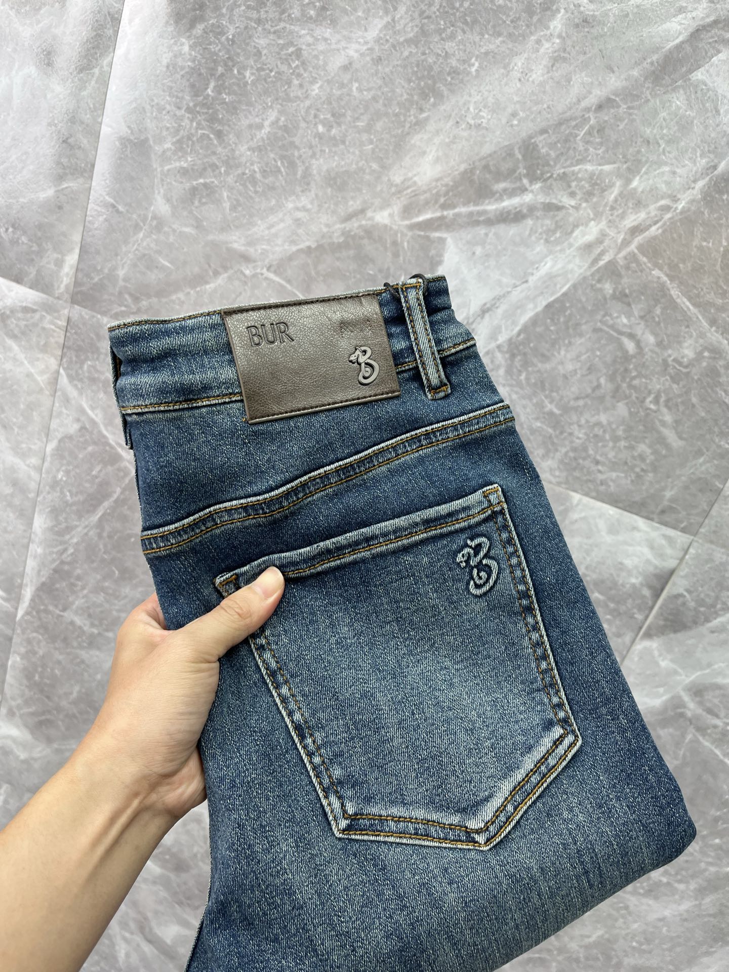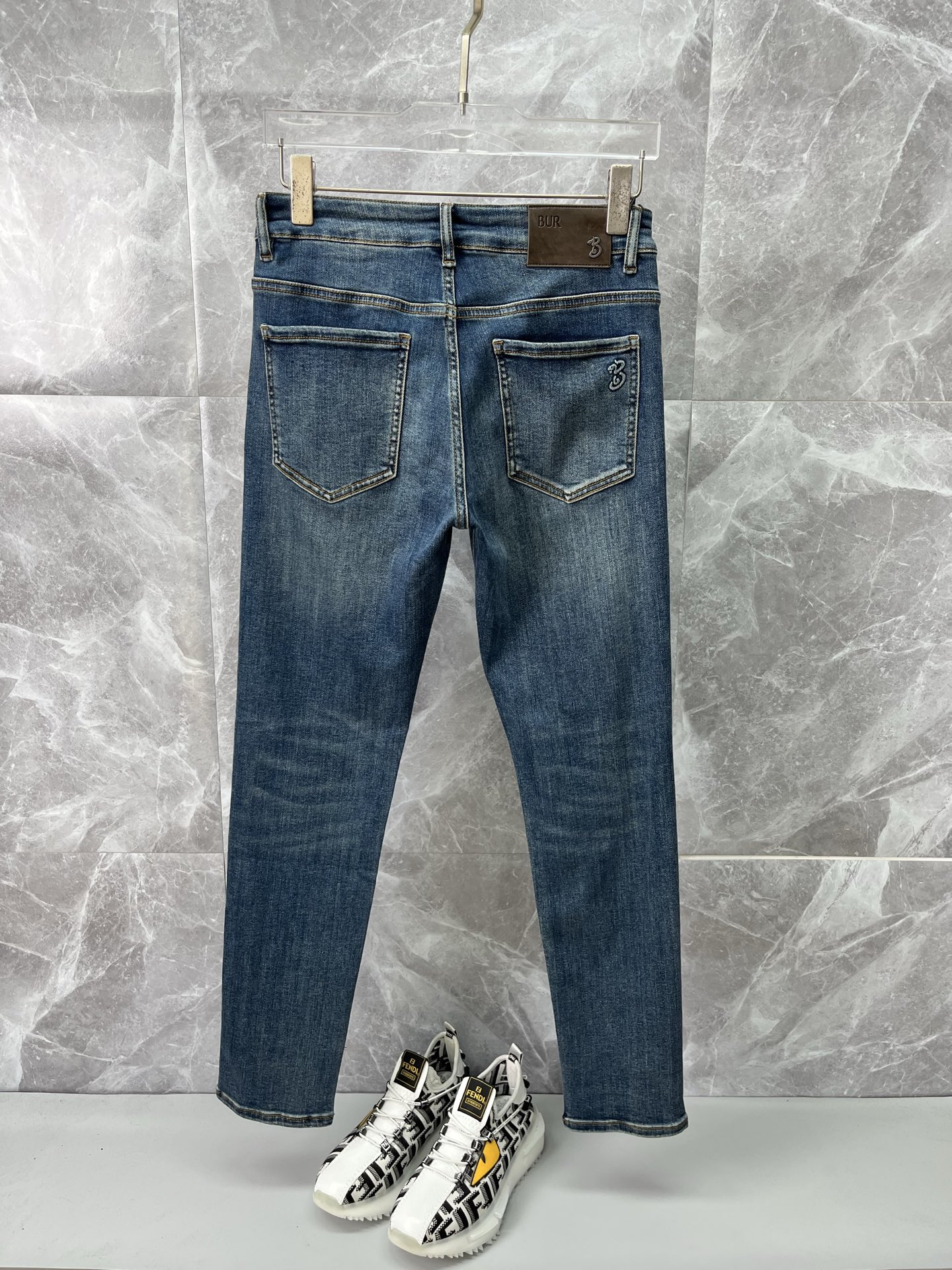 BURBERRY men's autumn jeans. Imported denim, eco-wash, soft, durable. Slim straight cut, stretchy. Sizes 28-38. Next-day shipping.