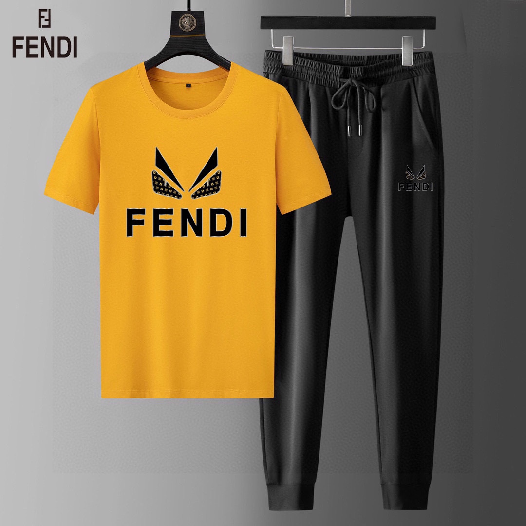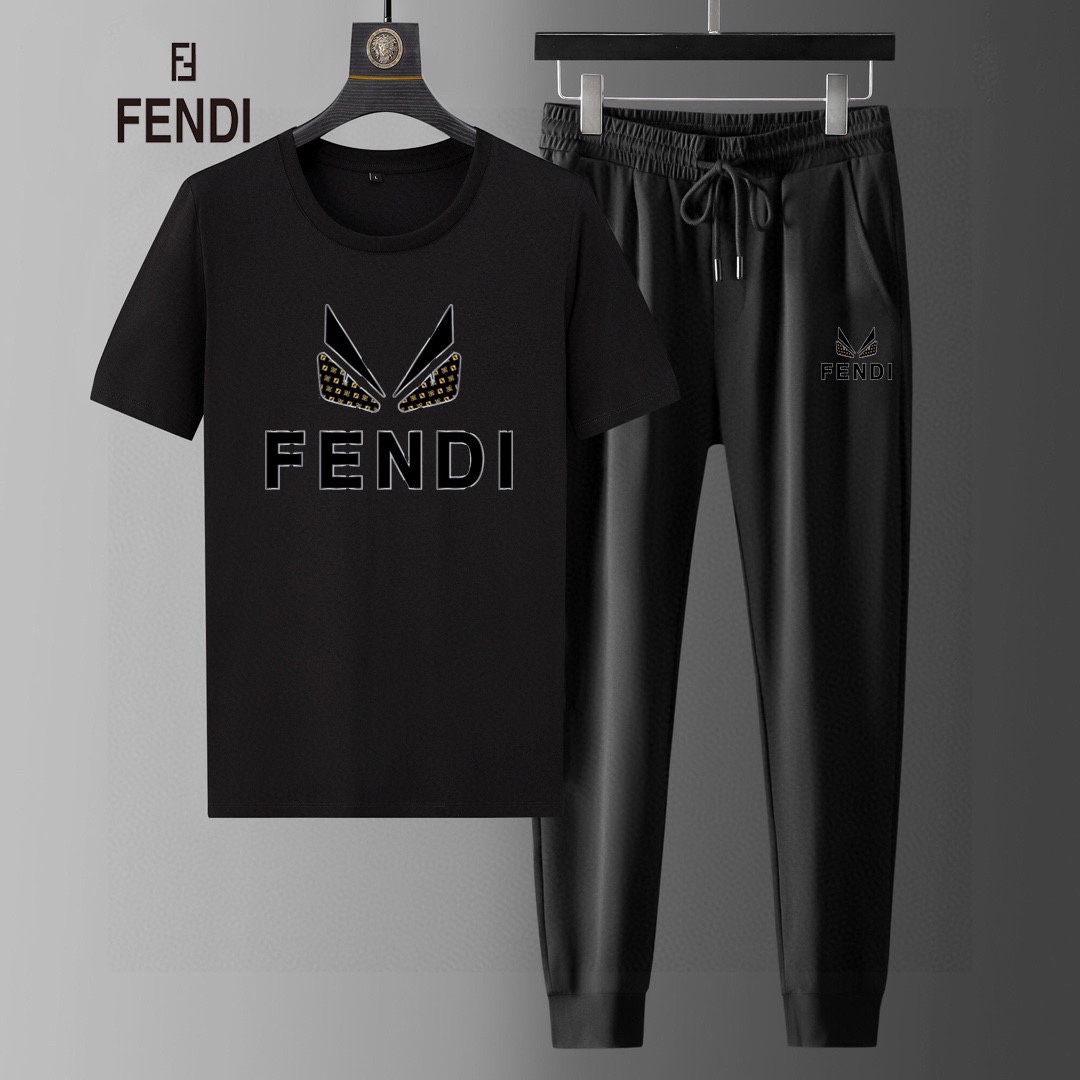 FENDI men's summer dual-gloss luxury set. Imported fabric, trendy & versatile. Sizes M-5XL (up to 220斤).