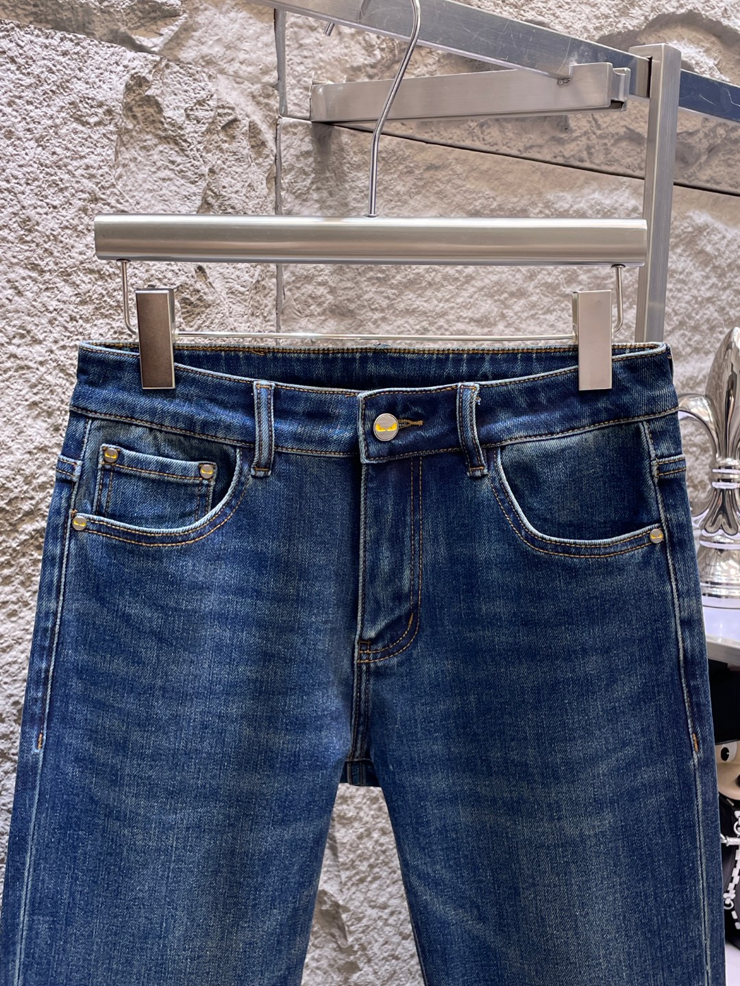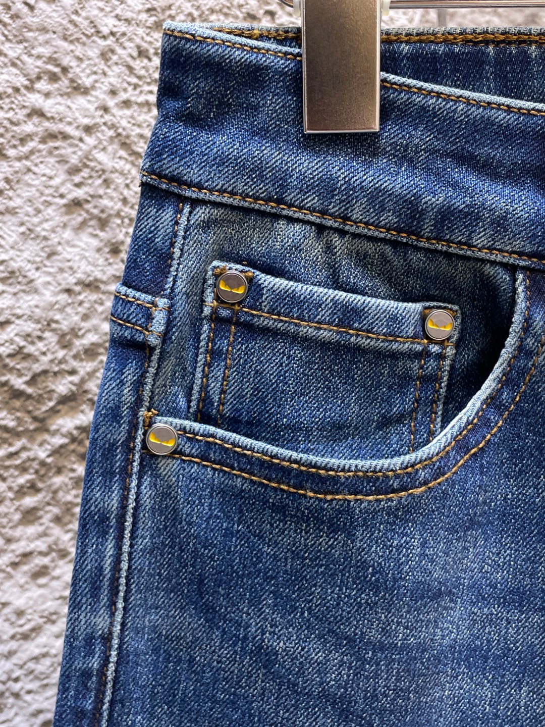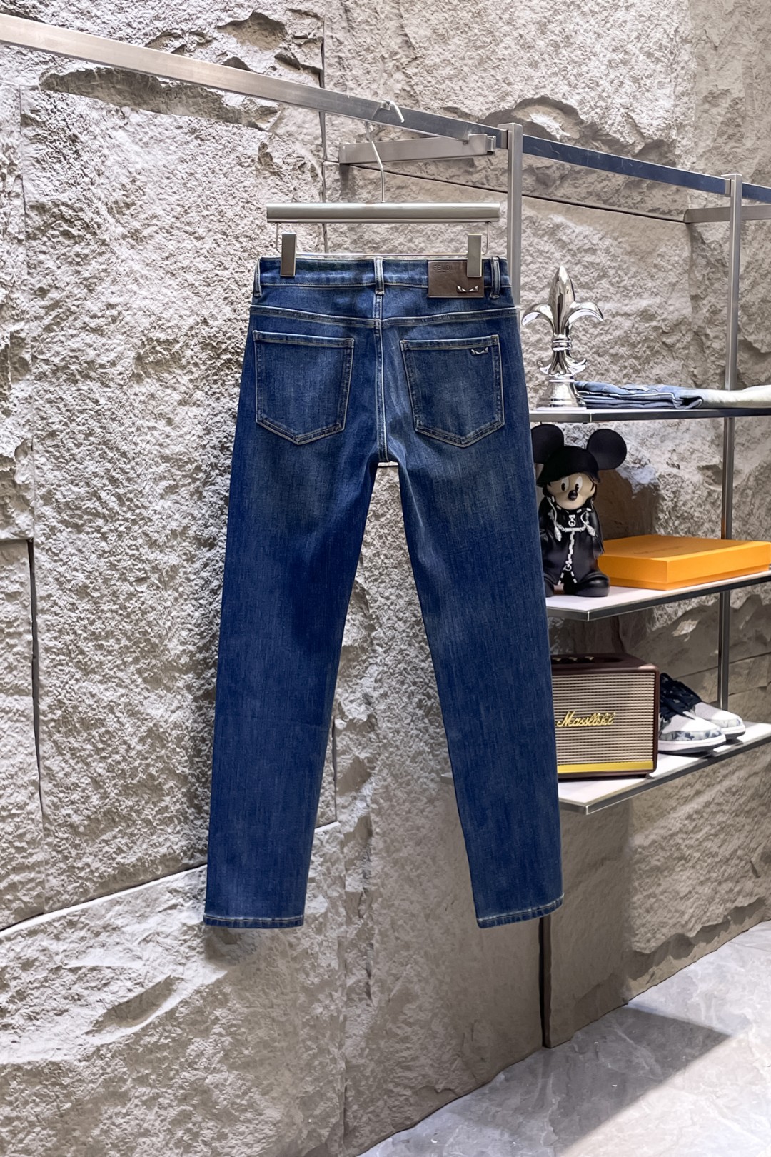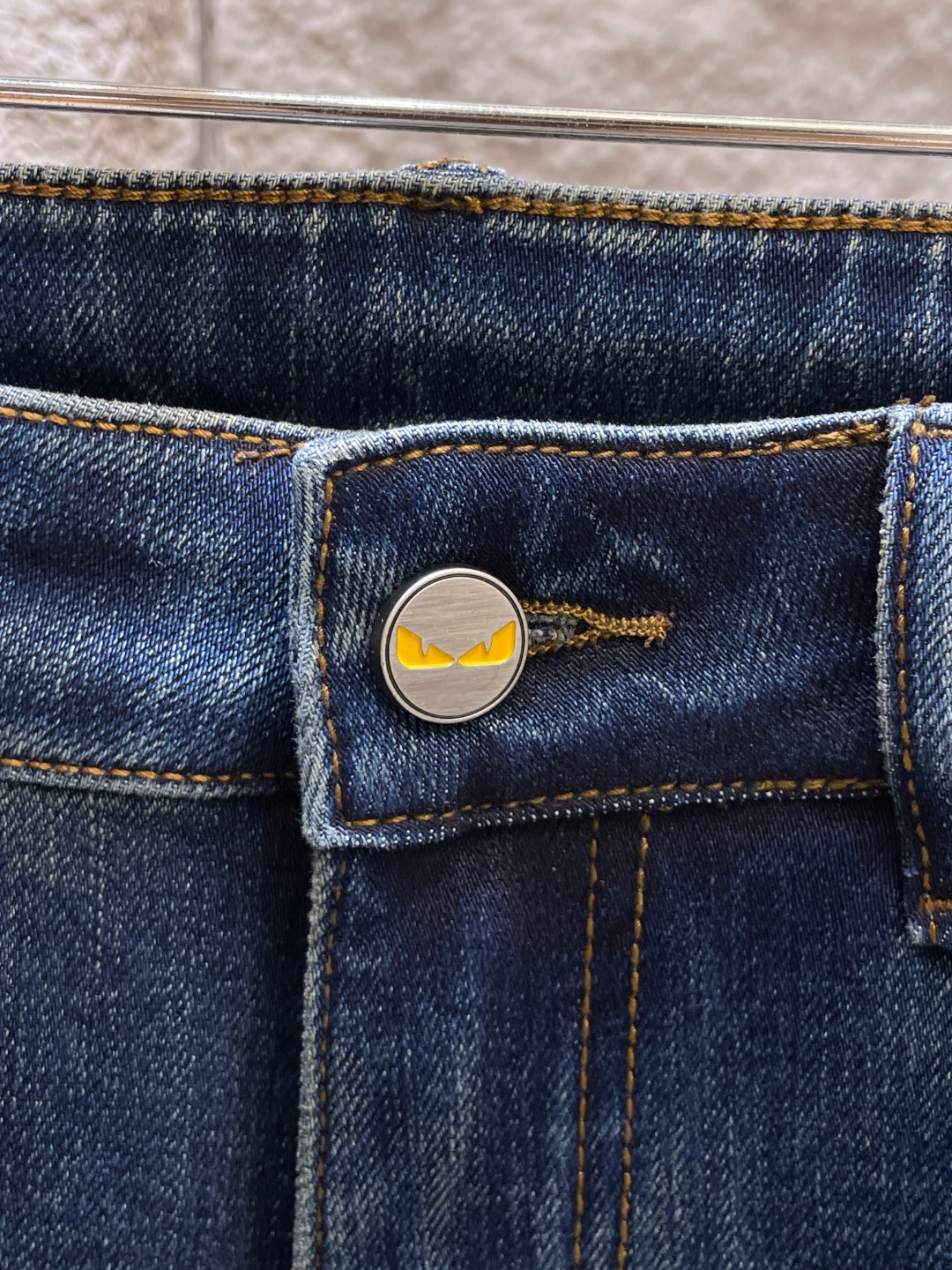 FENDI men's autumn/winter jeans. Imported denim, eco-wash, soft, durable. Slim straight cut, stretchy. Sizes 28-38. Next-day shipping.