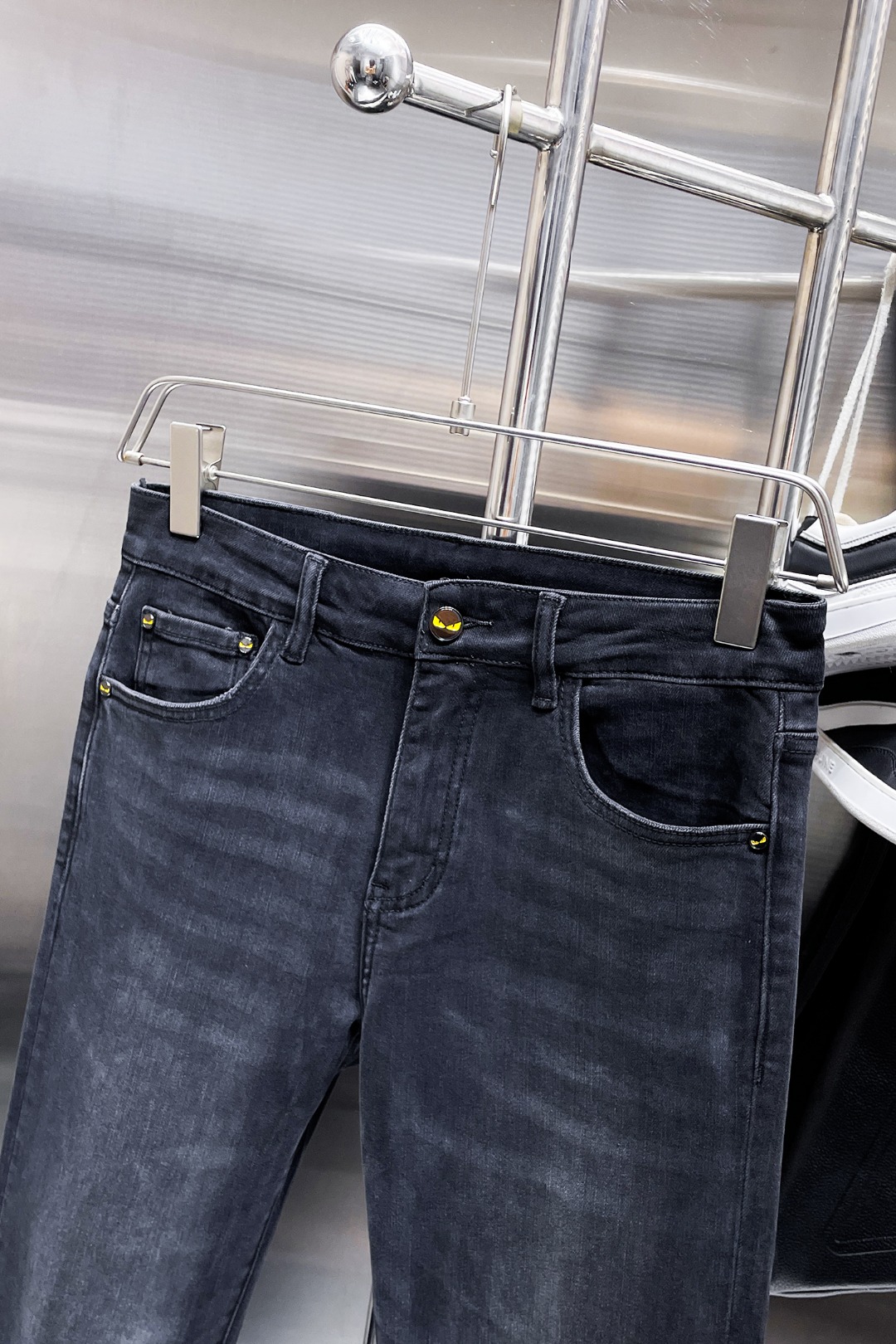 FENDI men's autumn winter jeans. Imported denim, eco-wash, soft, durable. Slim straight fit, stretch. Sizes 28-38. Next-day shipping.