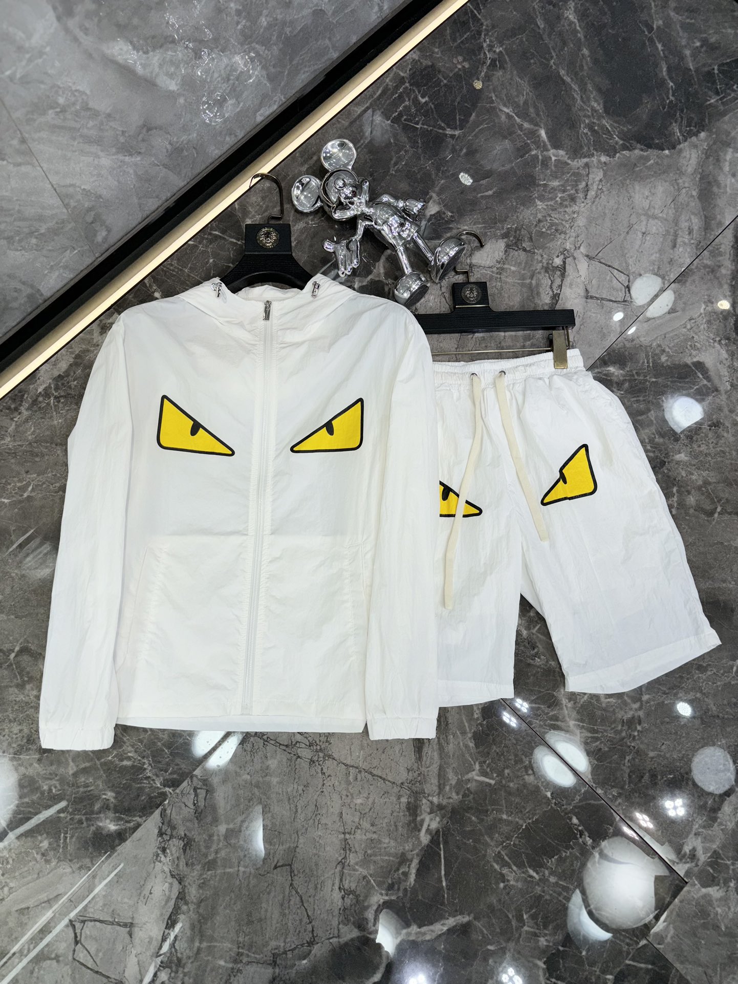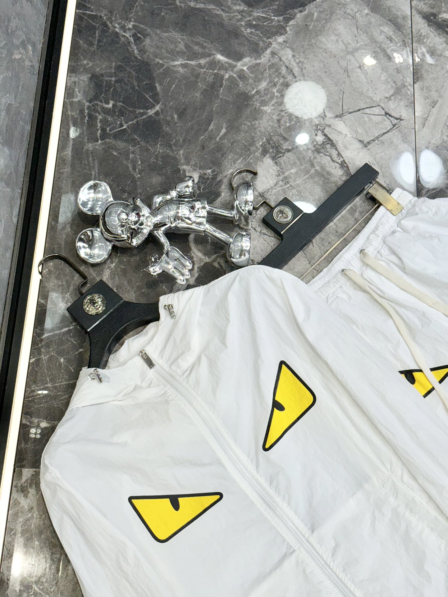 Fendi 2025 Spring/Summer Windbreaker & Shorts Set. High-quality, original fabric, complete with labels and logo hardware. Colors: as shown. Sizes: M-3XL.