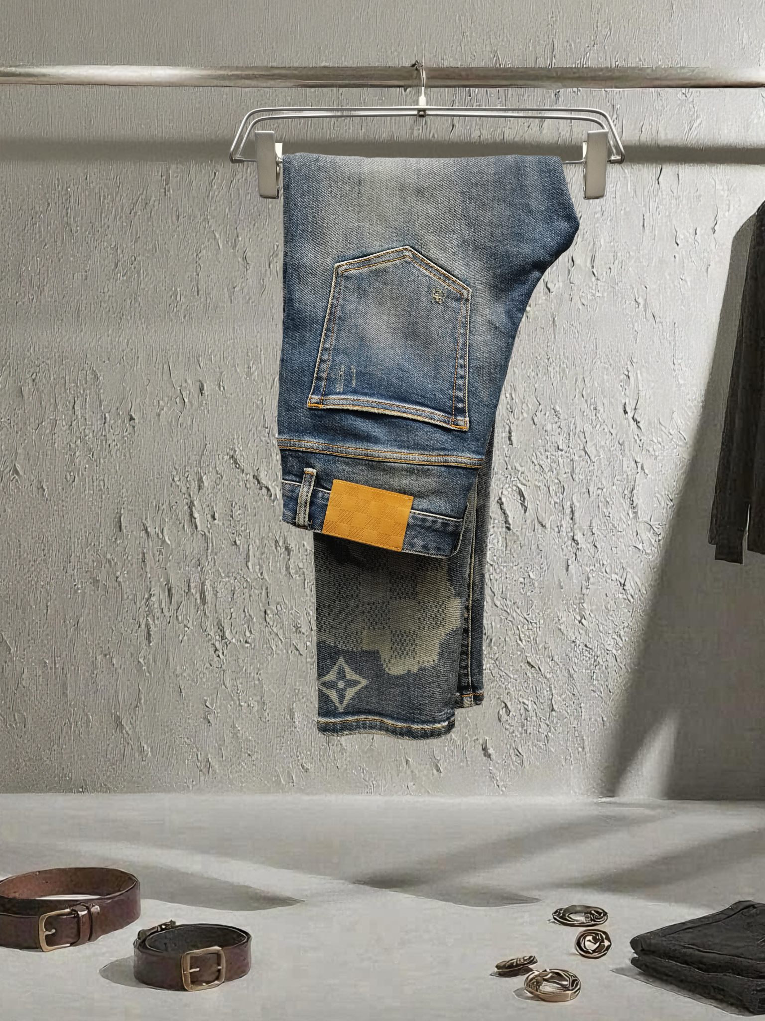 LV Clover Embroidered Jeans: Autumn/Winter new style. Full floral pattern, custom stretch fabric, slim fit. Sizes 29-38.