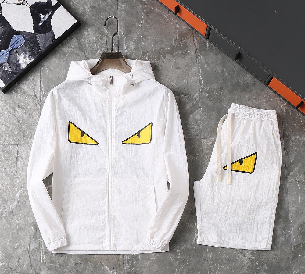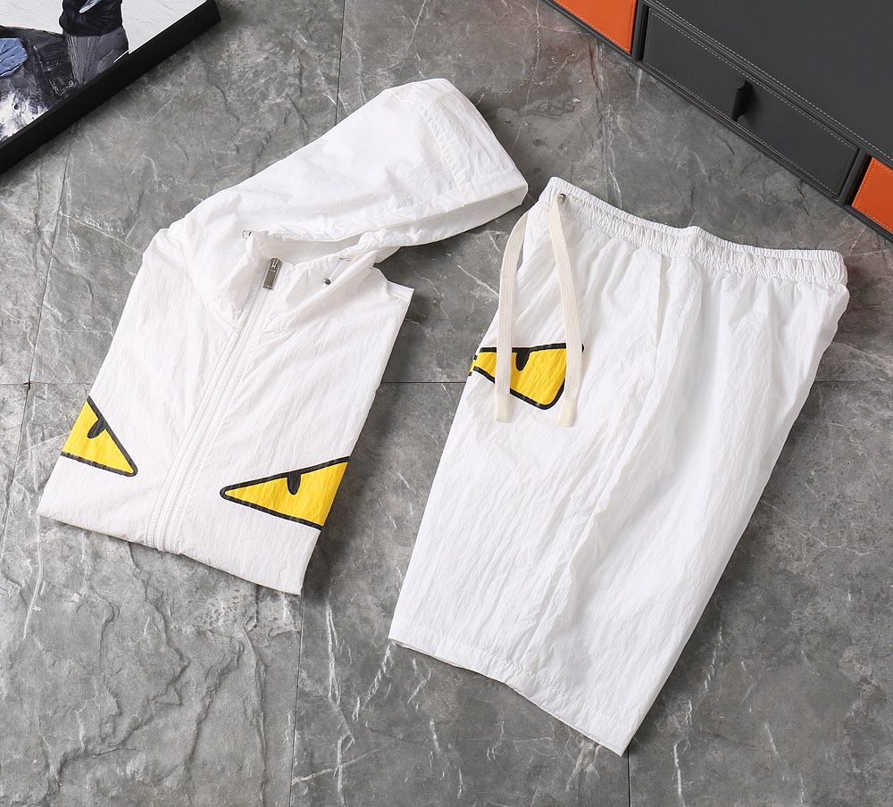 Fendi 2025 Spring/Summer windbreaker & shorts set. High-quality, original fabric, complete labels. Comfortable, versatile. Colors: as shown. Sizes: M-3XL.
