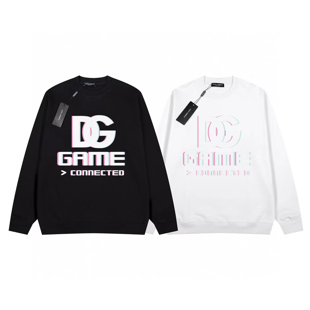 Dolce & Gabbana D&G printed round neck sweatshirt. The most anticipated sweatshirt for the 2024 spring and autumn season. High-end custom premium series, belongs to the brand's high-end main line. Patented top-tier cotton fabric, interprets conventional styles with innovation. The fabric configuration is颠覆常规, with noteworthy details.