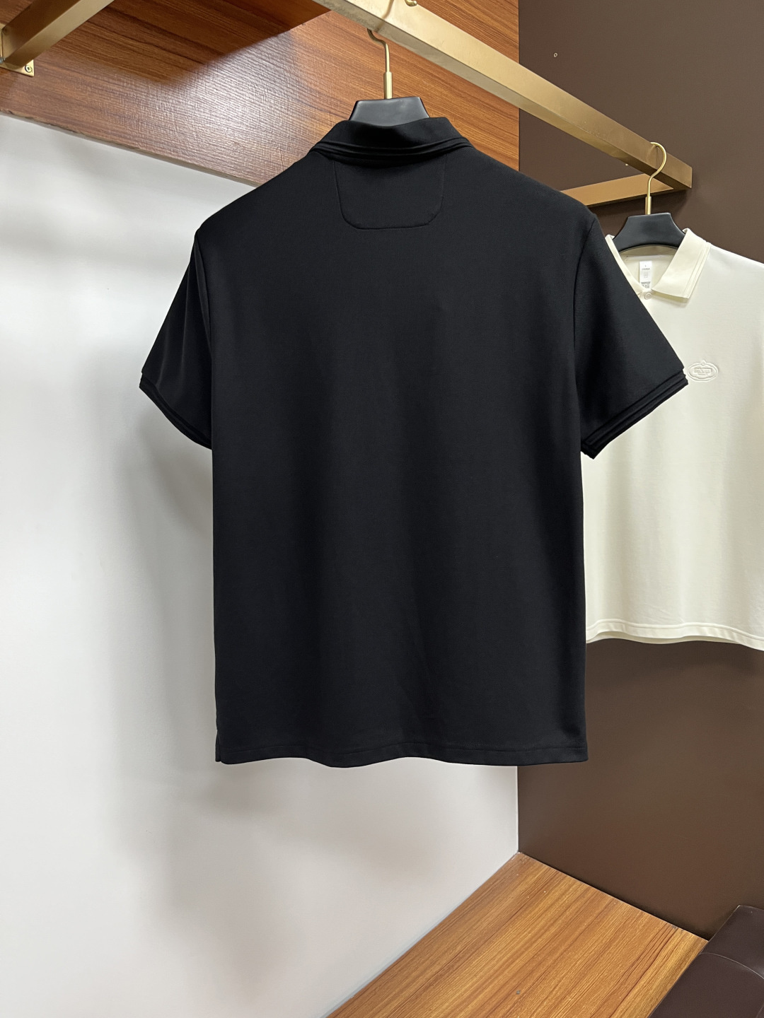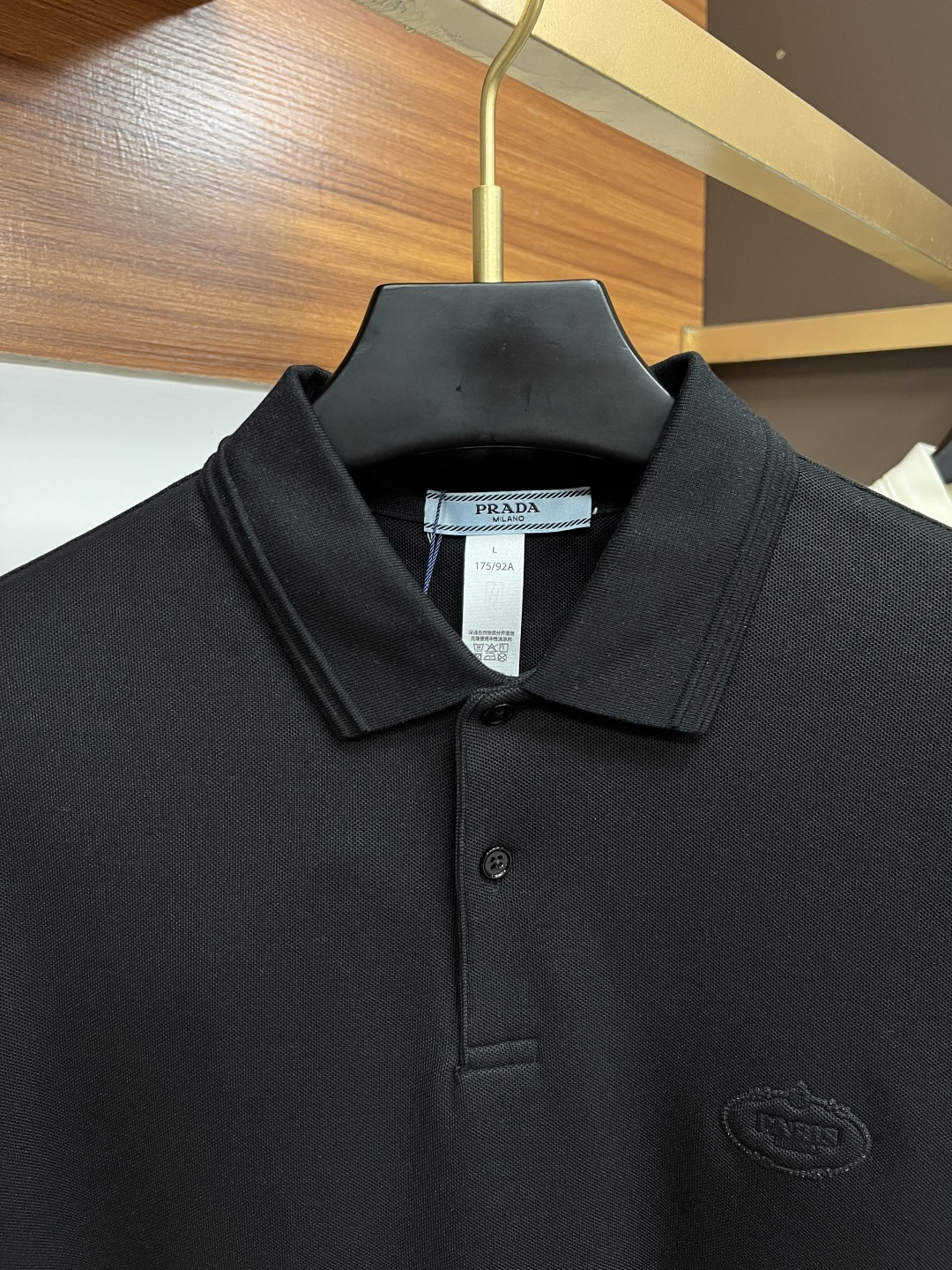 Prada 2025 spring/summer polo collar design, single-breasted, clean lines. Soft, breathable fabric. Versatile for business or casual wear. Sizes M-3XL.