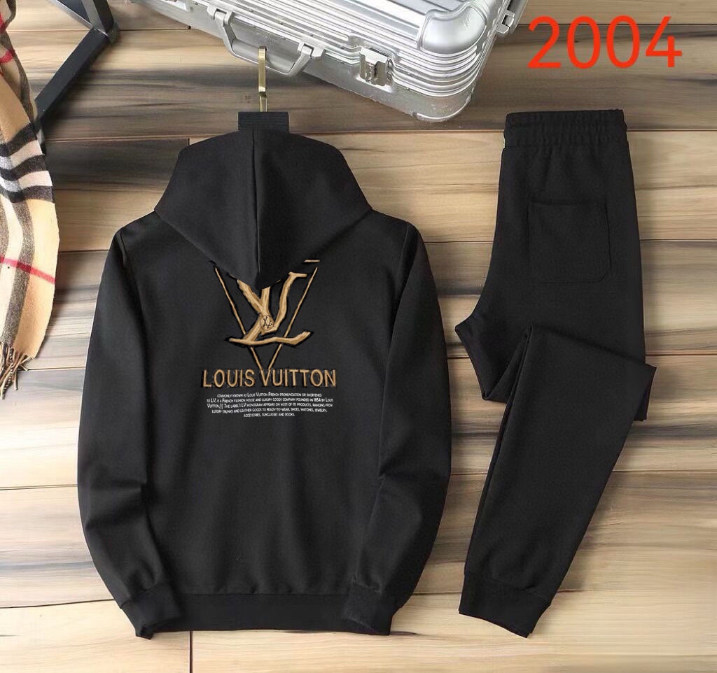 LV Louis Vuitton plus-size hoodie set. New 2025 design, premium Roman cotton, comfortable fit. Sizes M-5XL.